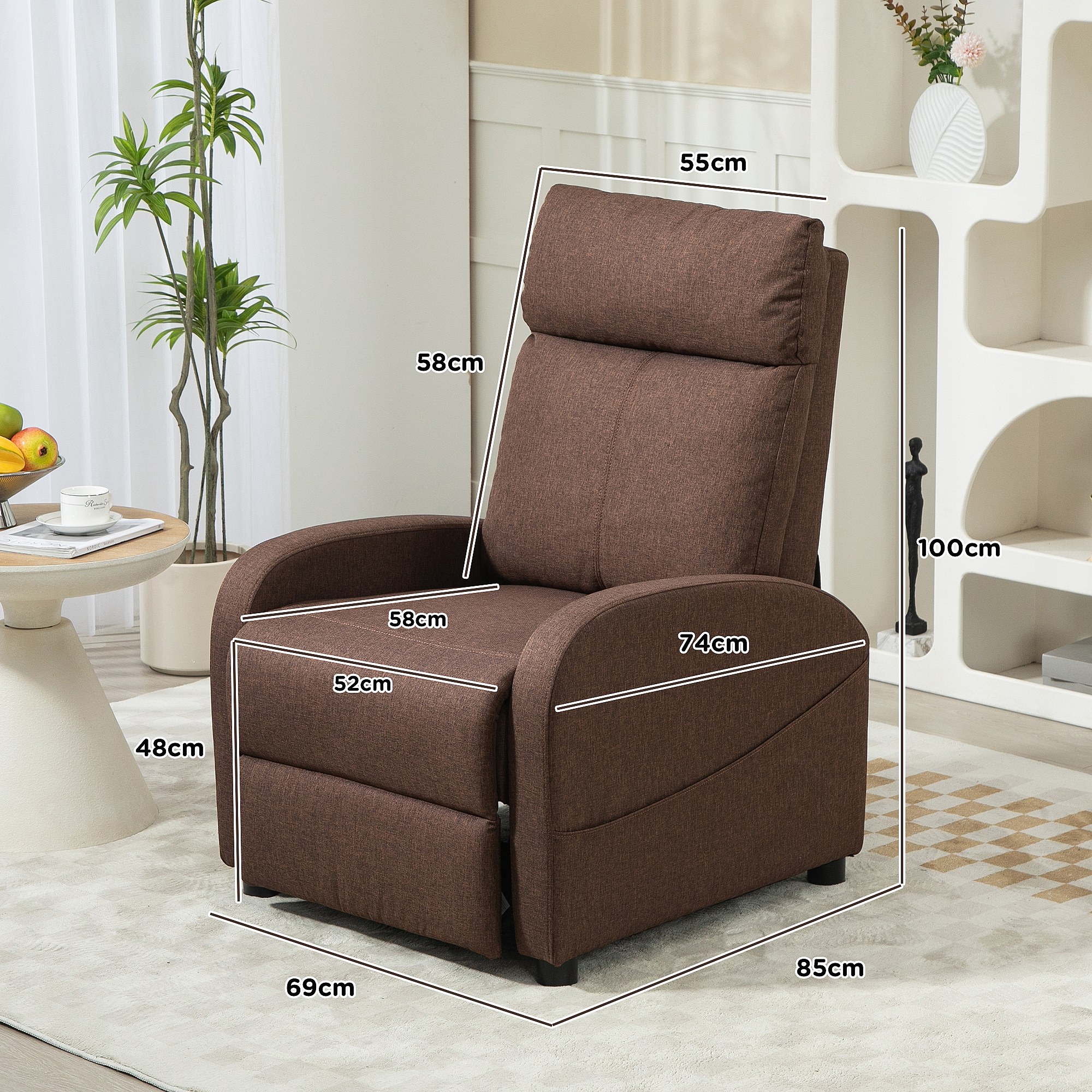 Poltrona relax reclinabile con poggiapiedi in tessuto marrone