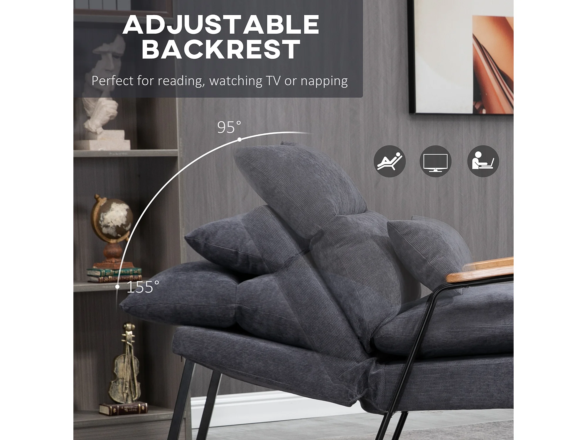 Poltrona relax reclinabile con pouf poggiapiedi in velluto