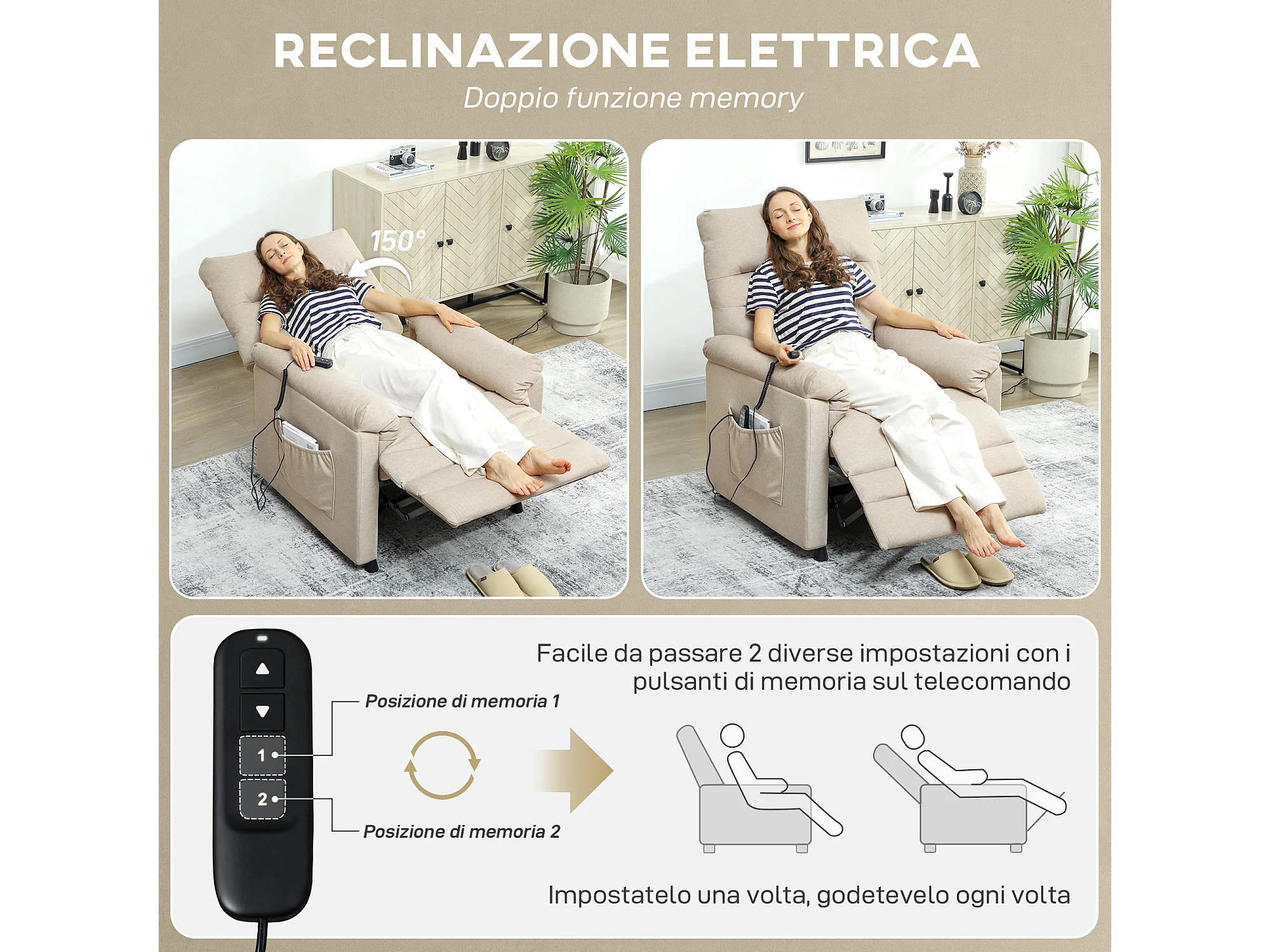 Poltrona relax reclinabile con riscaldamento e massaggio beige