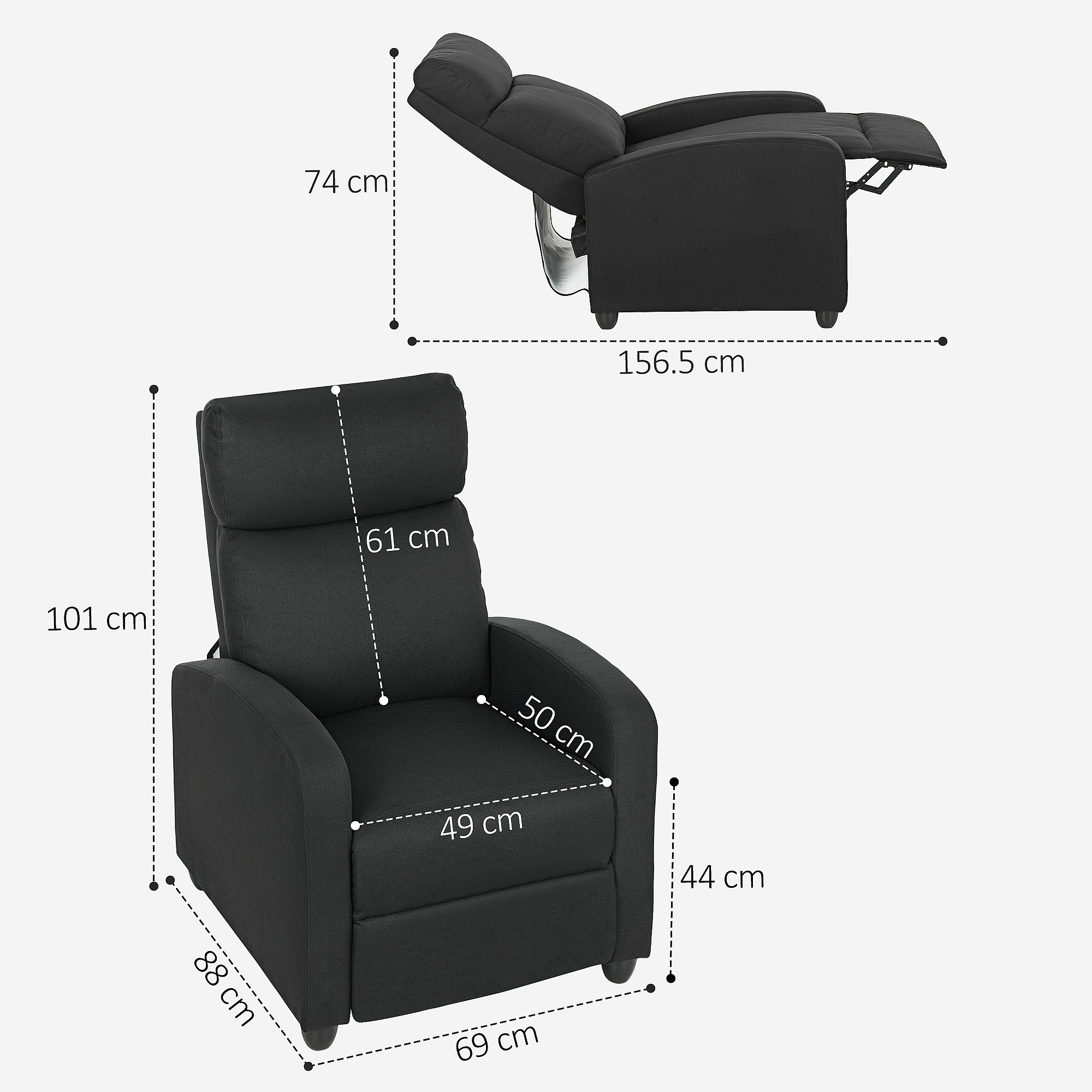 Poltrona relax reclinabile manualmente con poggiapiedi in tessuto nero