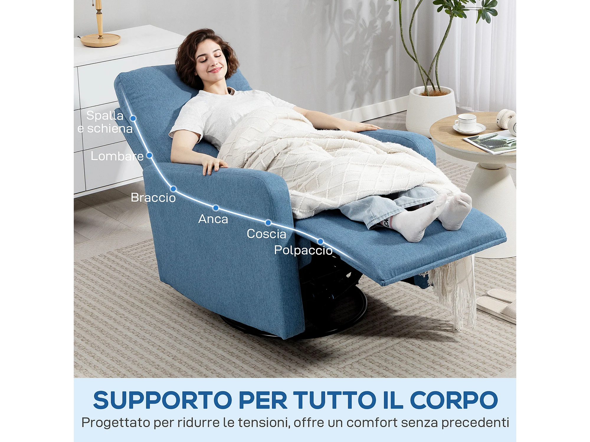 Poltrona relax reclinabile manualmente girevole e funzione dondolo blu