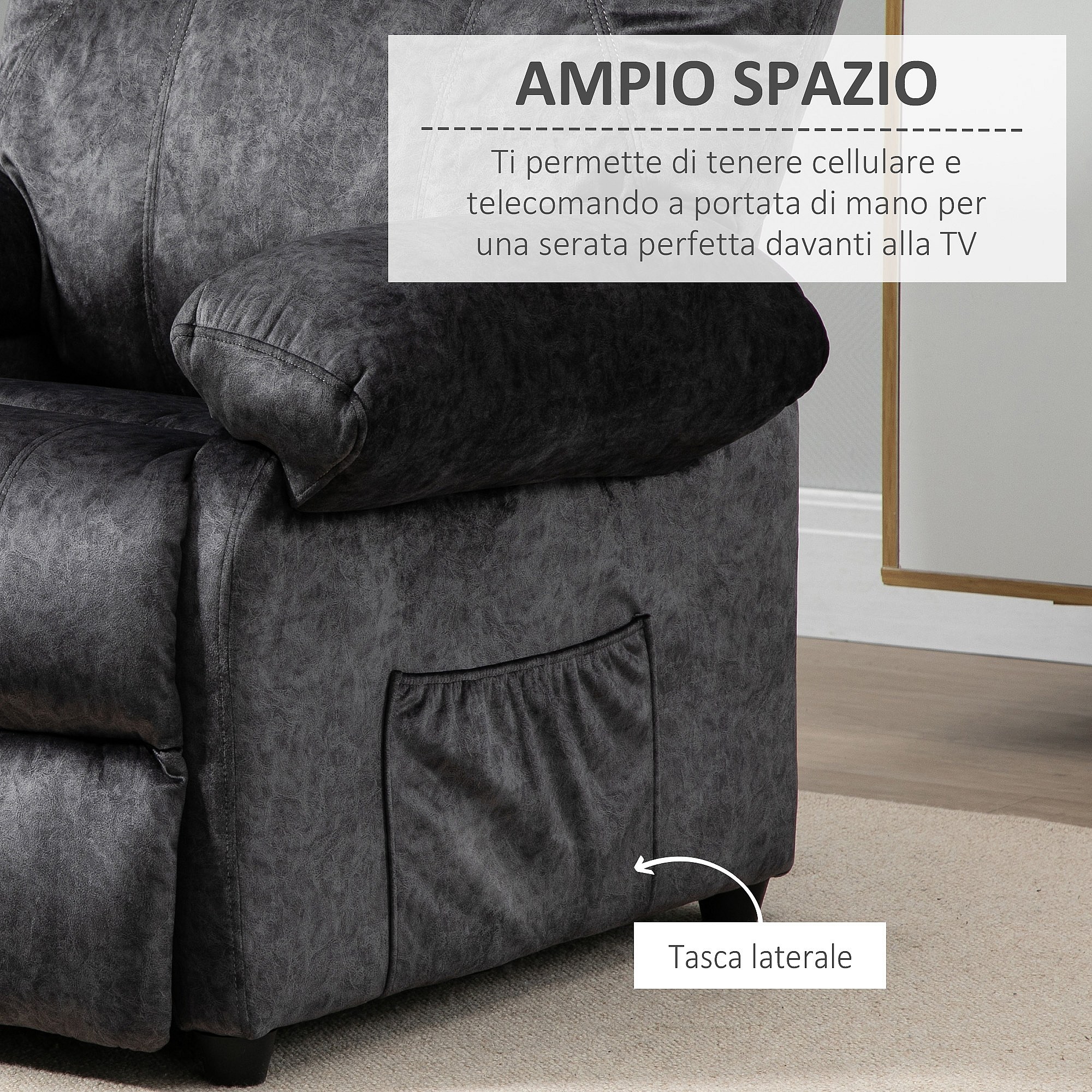 Poltrona relax reclinabile manualmente in tessuto con poggiapiedi nero