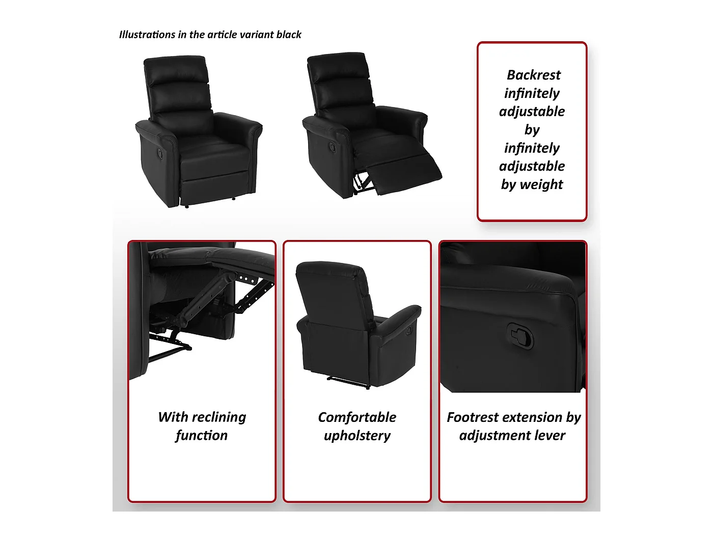 Poltrona relax reclinabile MCW-J96 ecopelle 104x84x90cm nero