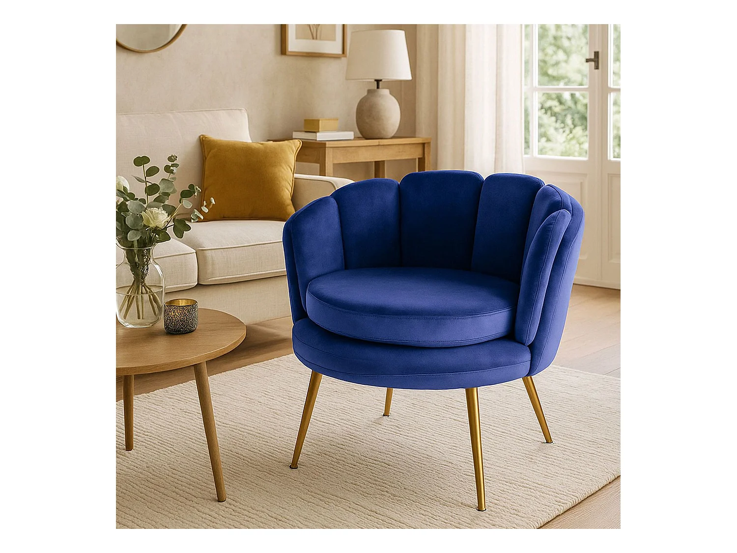 Poltrona rotonda in velluto blu Brenda