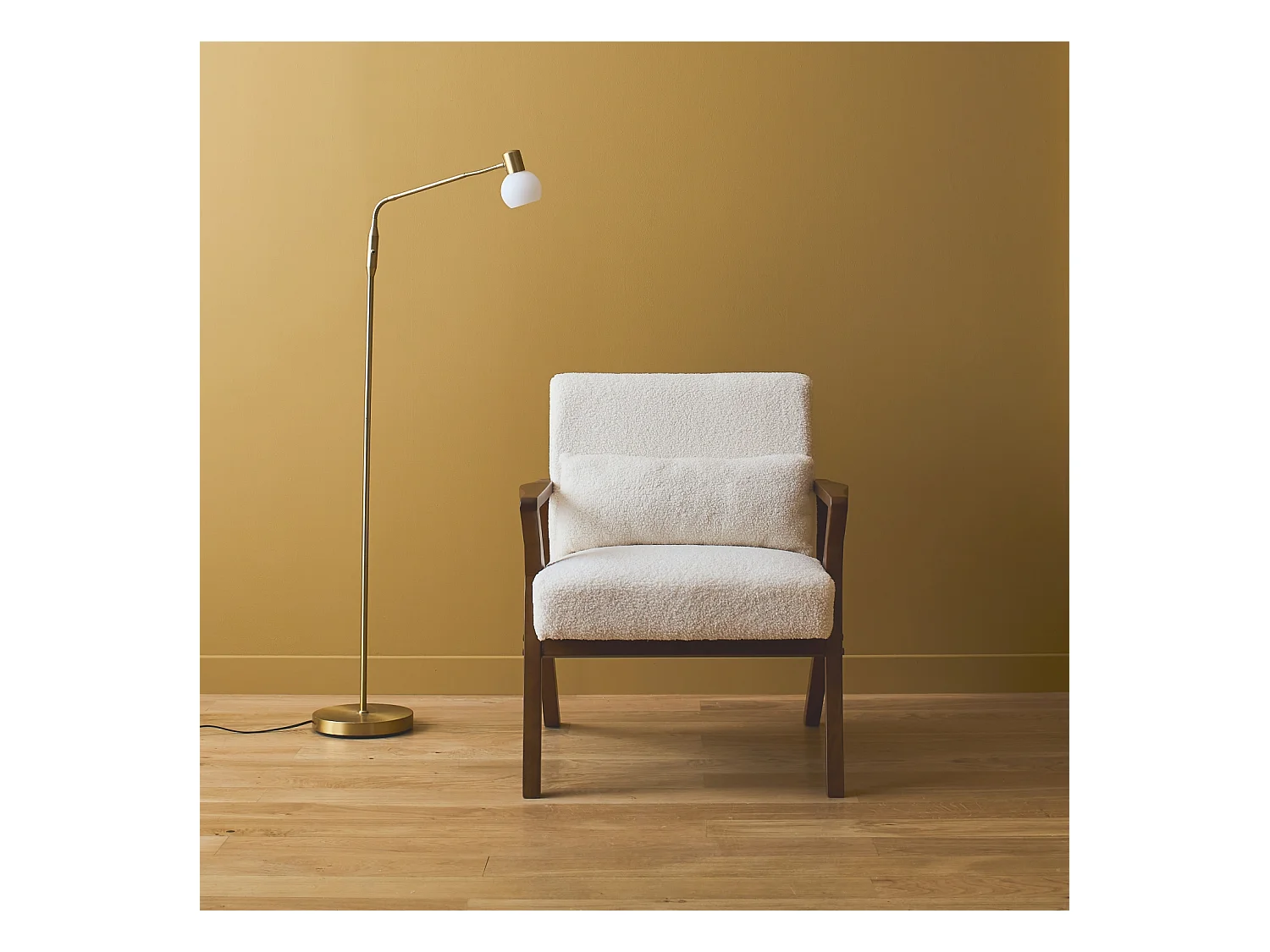 Poltrona scandinava in legno e tessuto bouclé, bianco