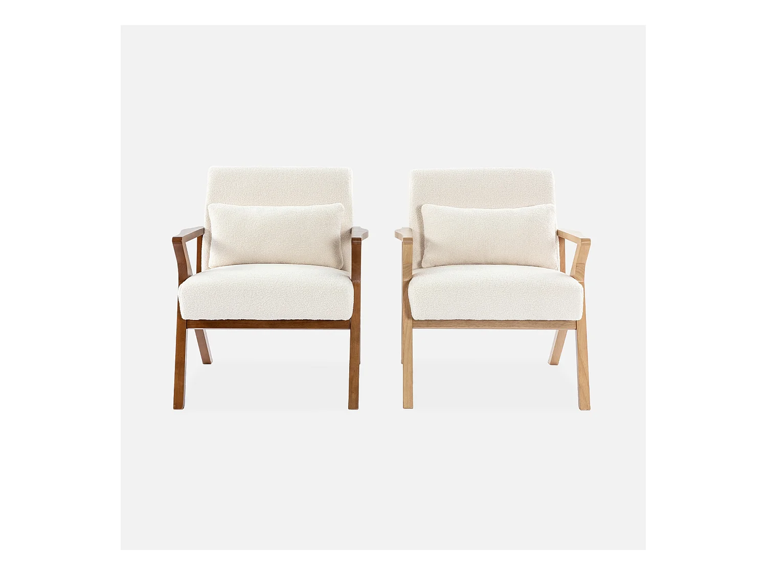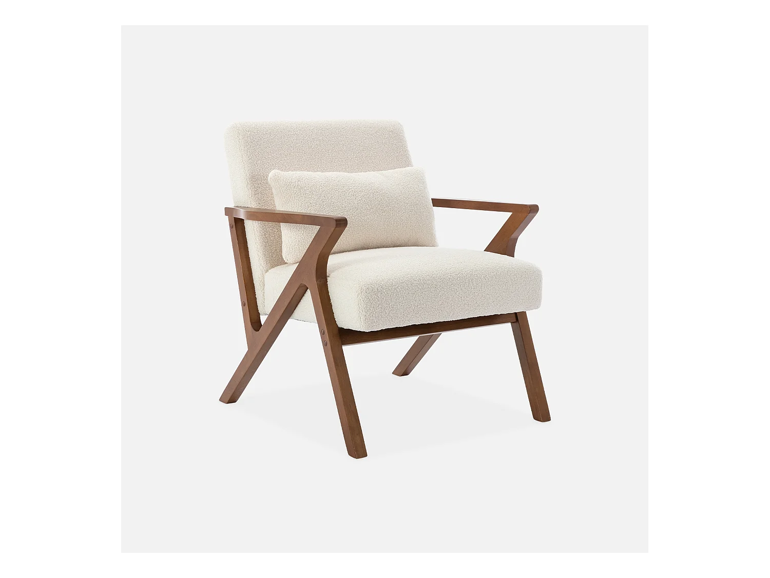 Poltrona scandinava in legno e tessuto bouclè, bianco
