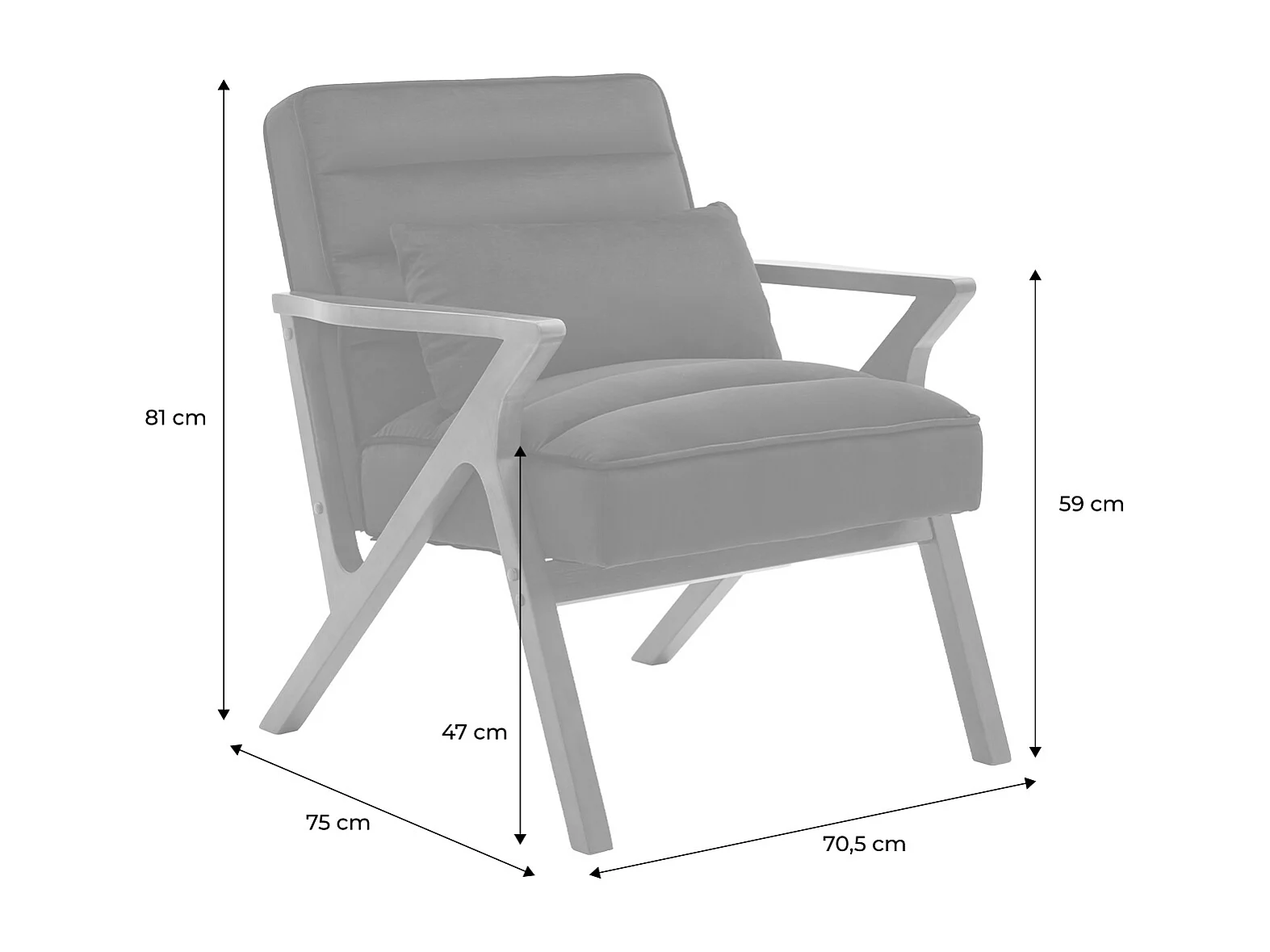 Poltrona scandinava in legno di hevea e velluto, terracotta