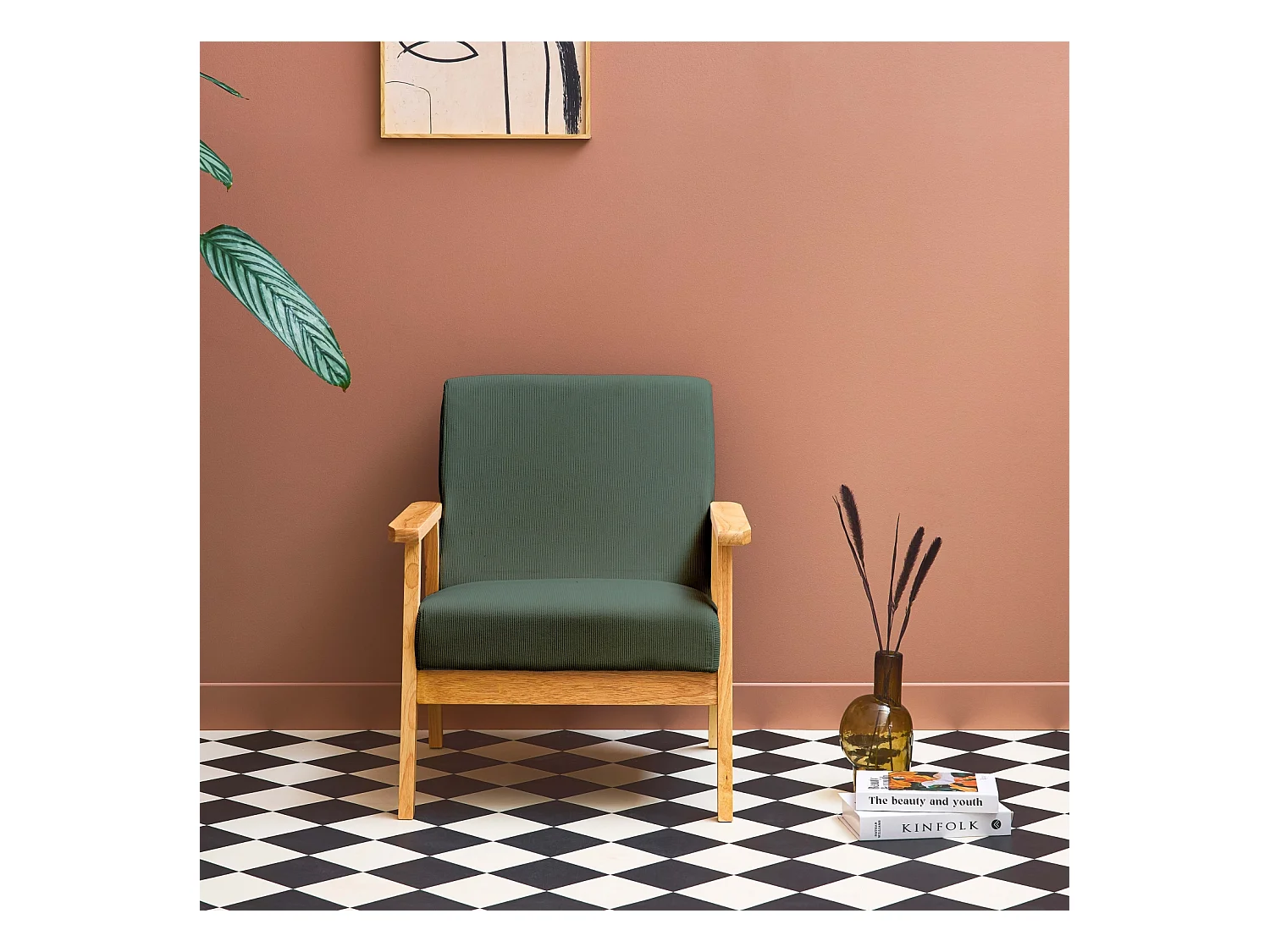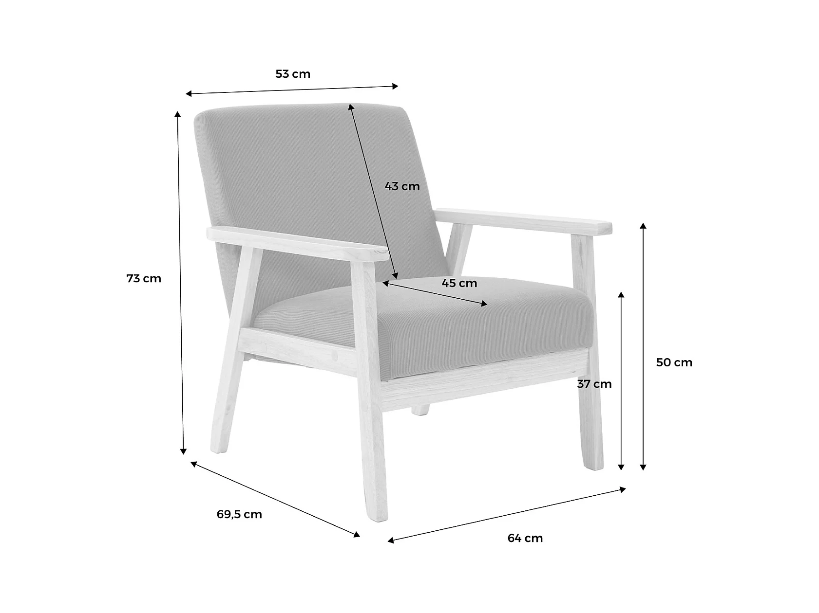 Poltrona scandinava per bambini in velluto a coste e legno di gomma,
