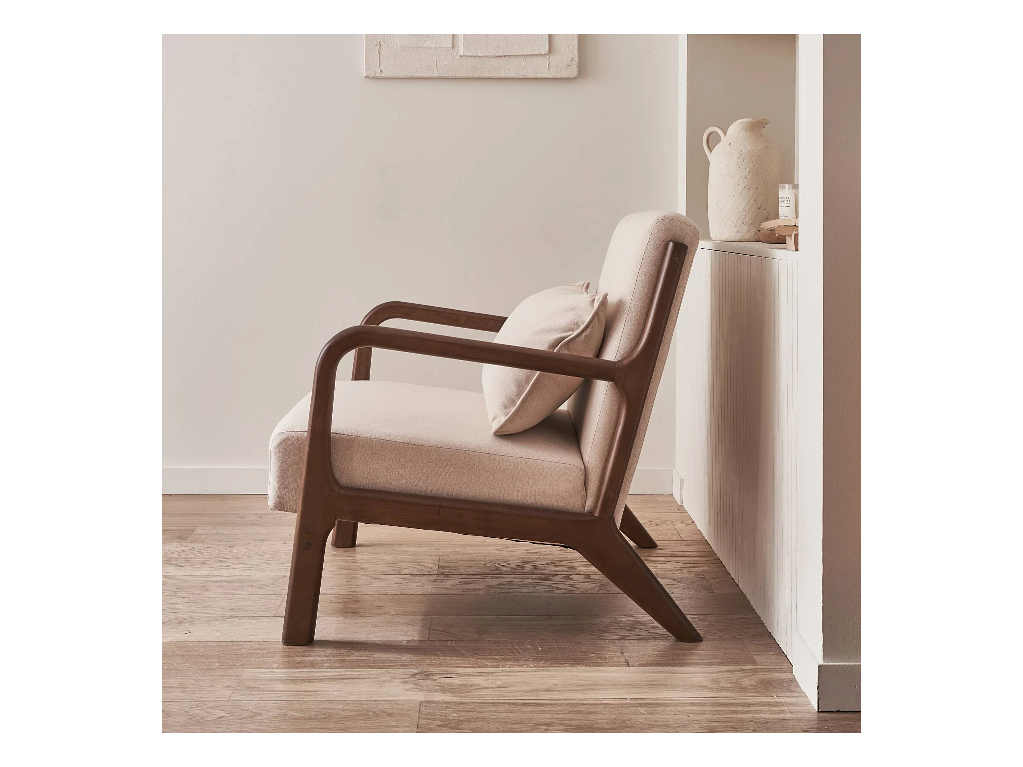 Poltrona scandinava in tessuto beige e legno di hevea , beige