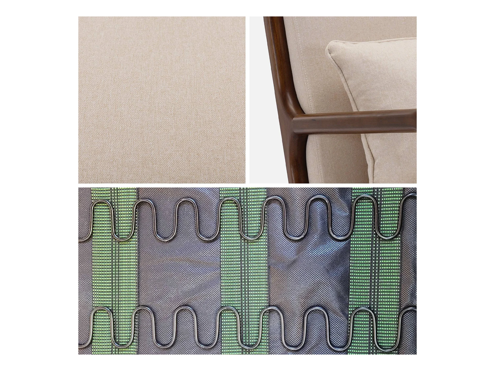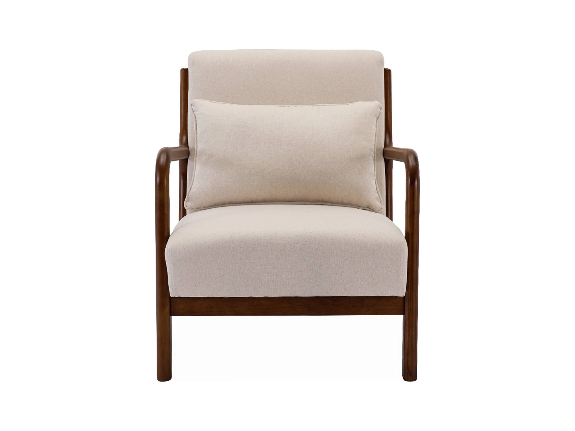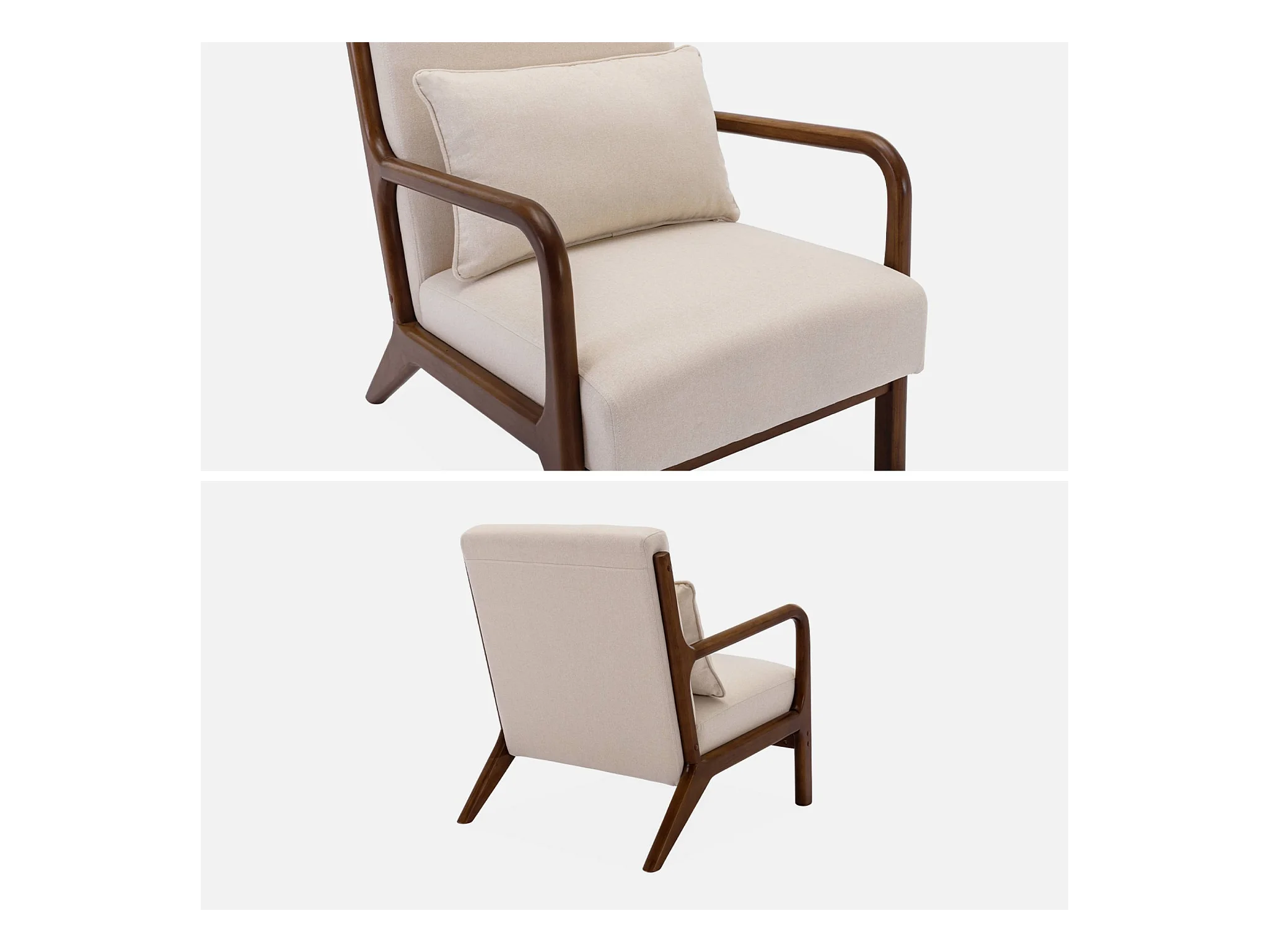 Poltrona scandinava in legno e tessuto con braccioli, beige
