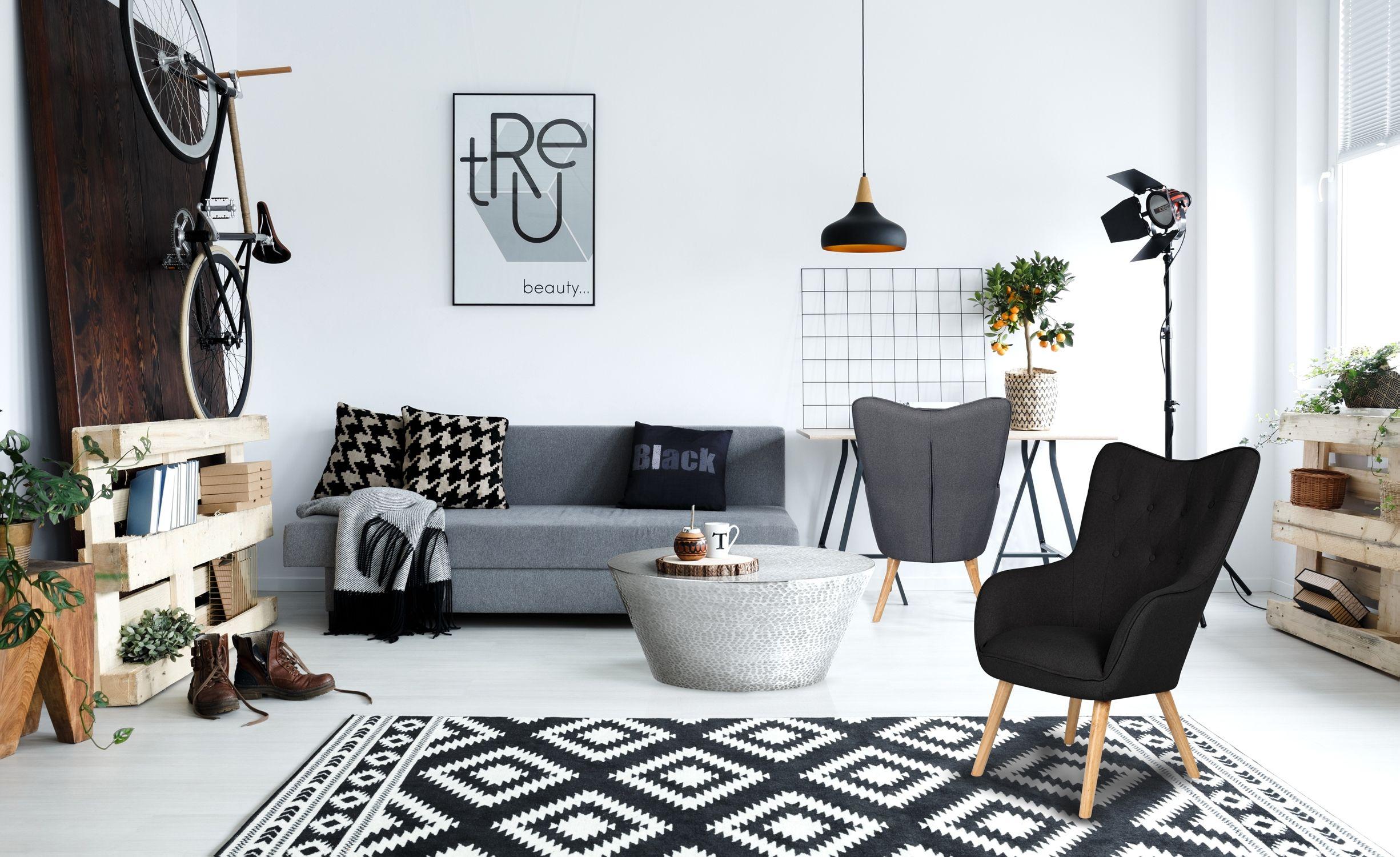 Poltrona scandinava Klarys in tessuto nero