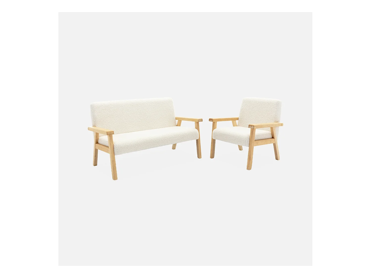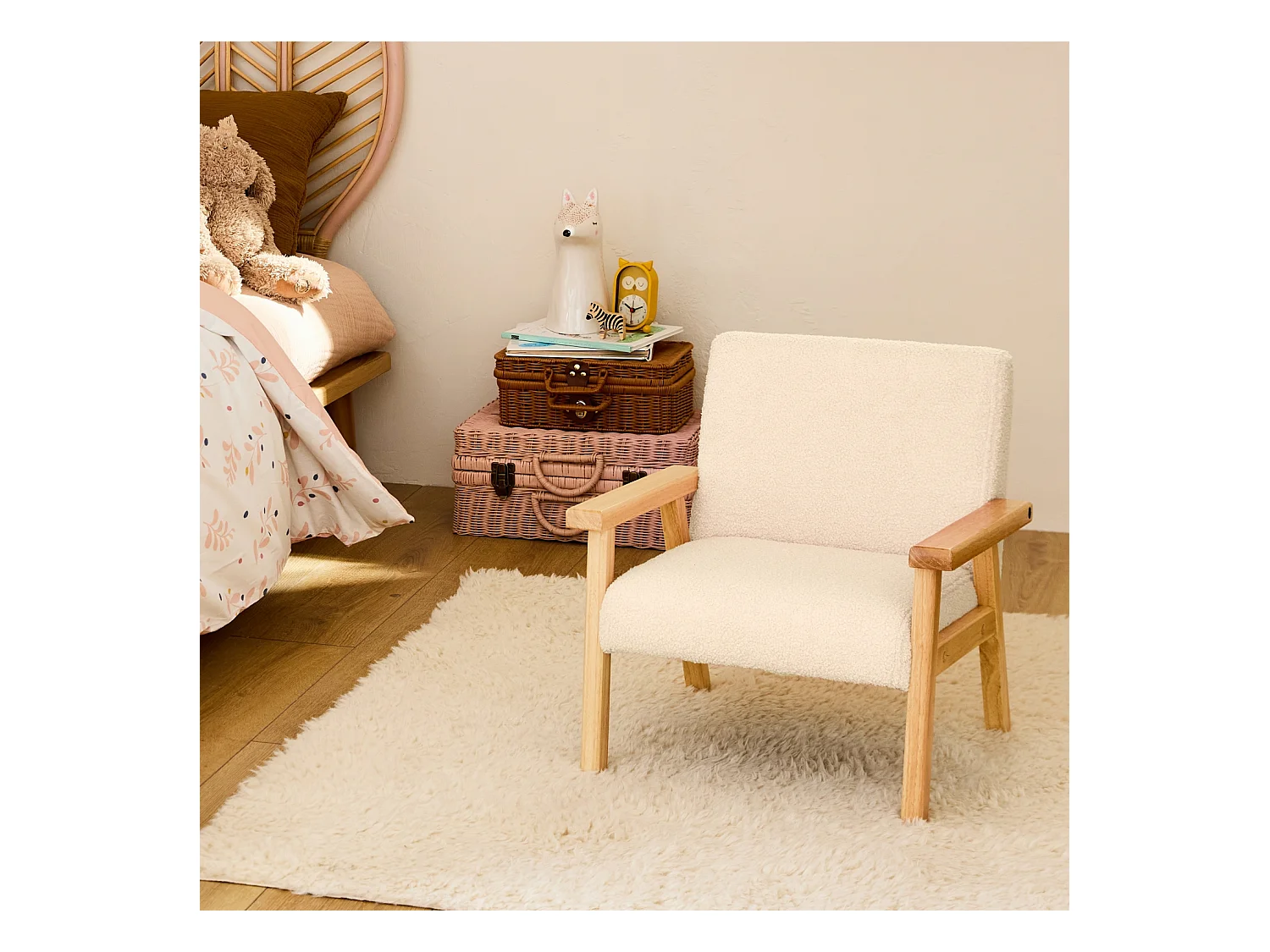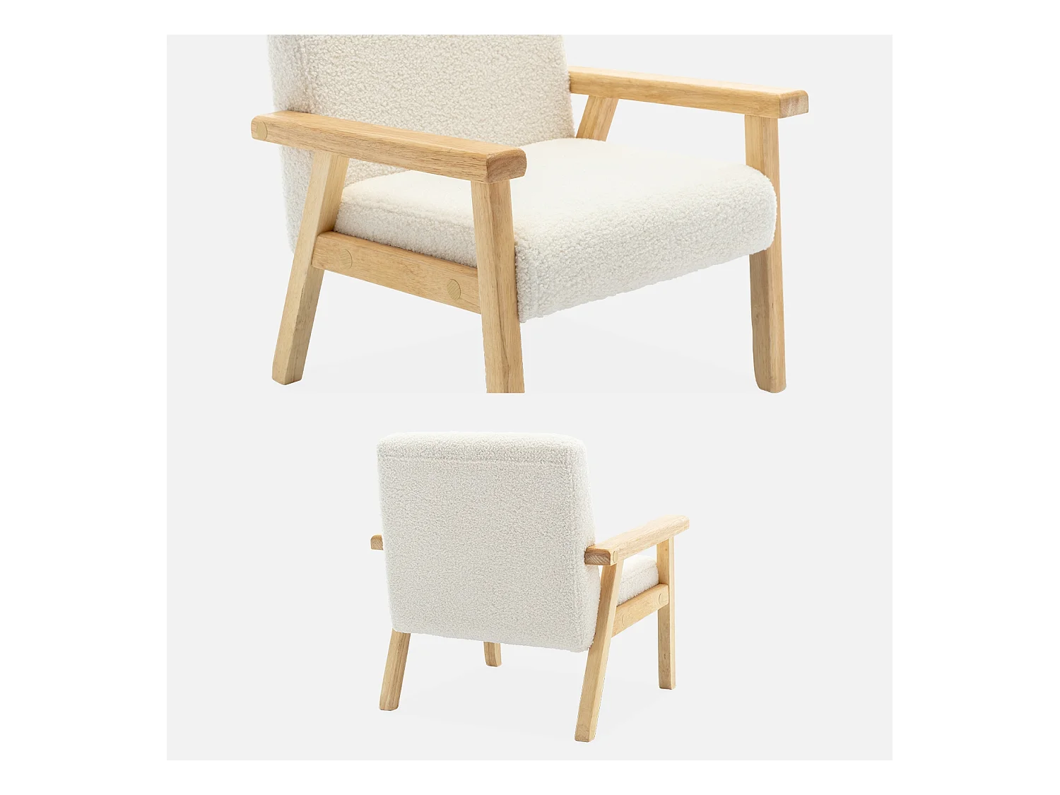 Poltrona scandinava per bambini in legno di hevea e tessuto bouclé,