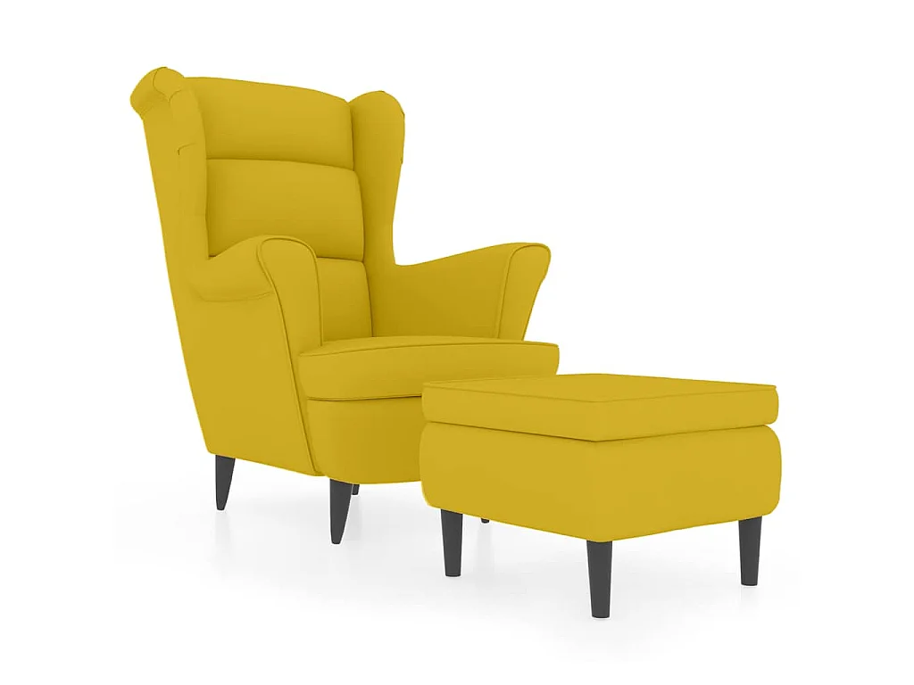 Poltrona Schienale ad Ala con Poggiapiedi Giallo Senape Velluto