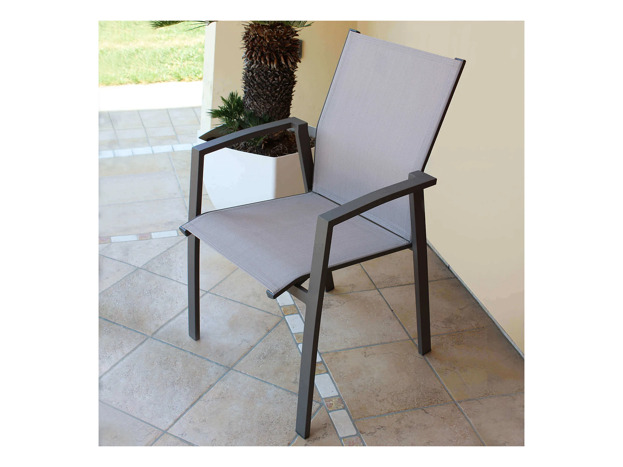 MilaniHome.it - Poltrona Impilabile Taupe In Alluminio E Textilene Da Esterno Giardino Per Bar Ristorante Agriturismo Pasticceria Albergo Hoteldi coloreTaupe