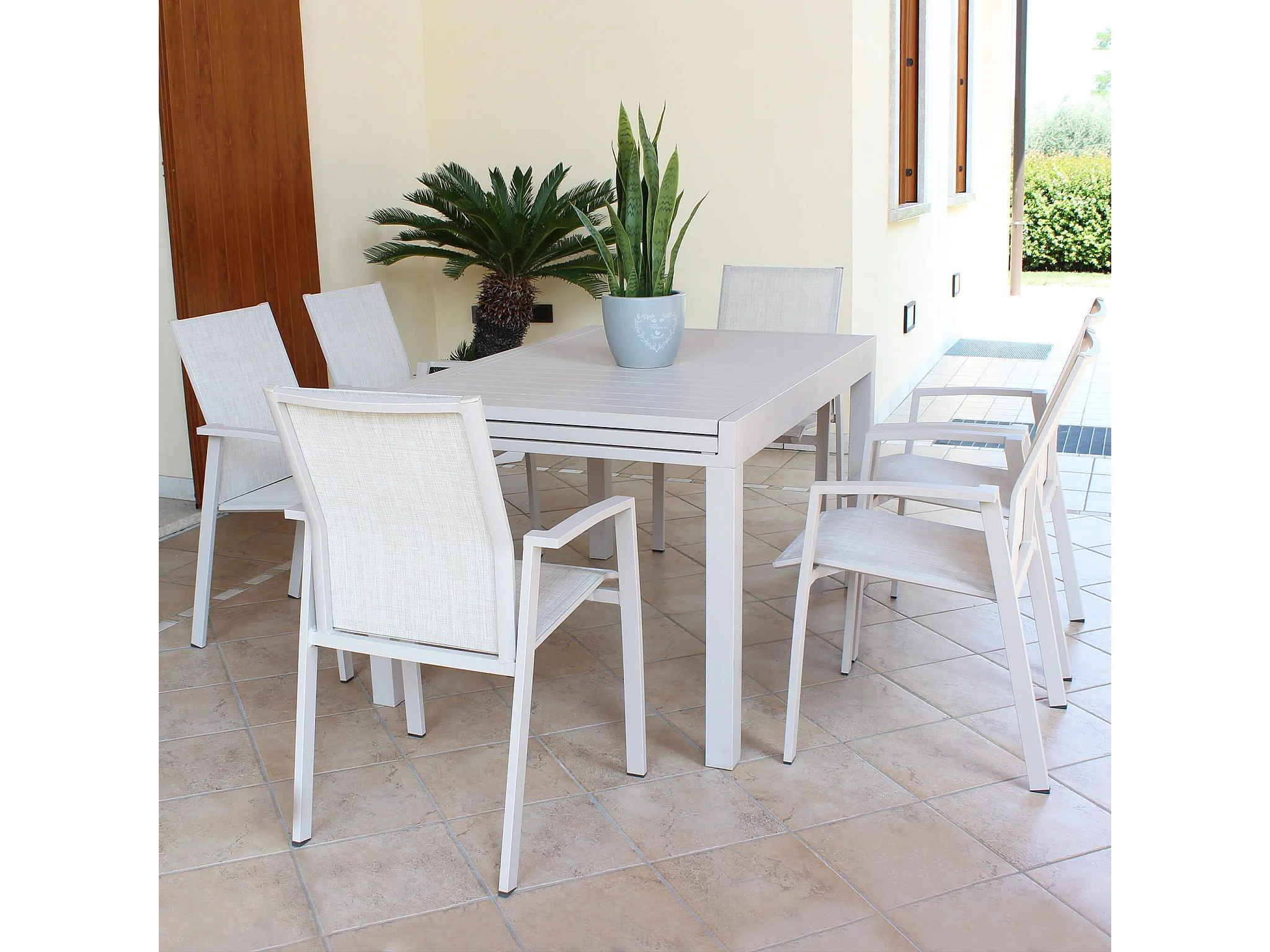 MilaniHome.it - Poltrona Sedia Impilabile In Alluminio Tortora E Textilene Beige Da Esterno Bar Pub Ristorante Agriturismo Pasticceria Albergo Hoteldi coloreTortora