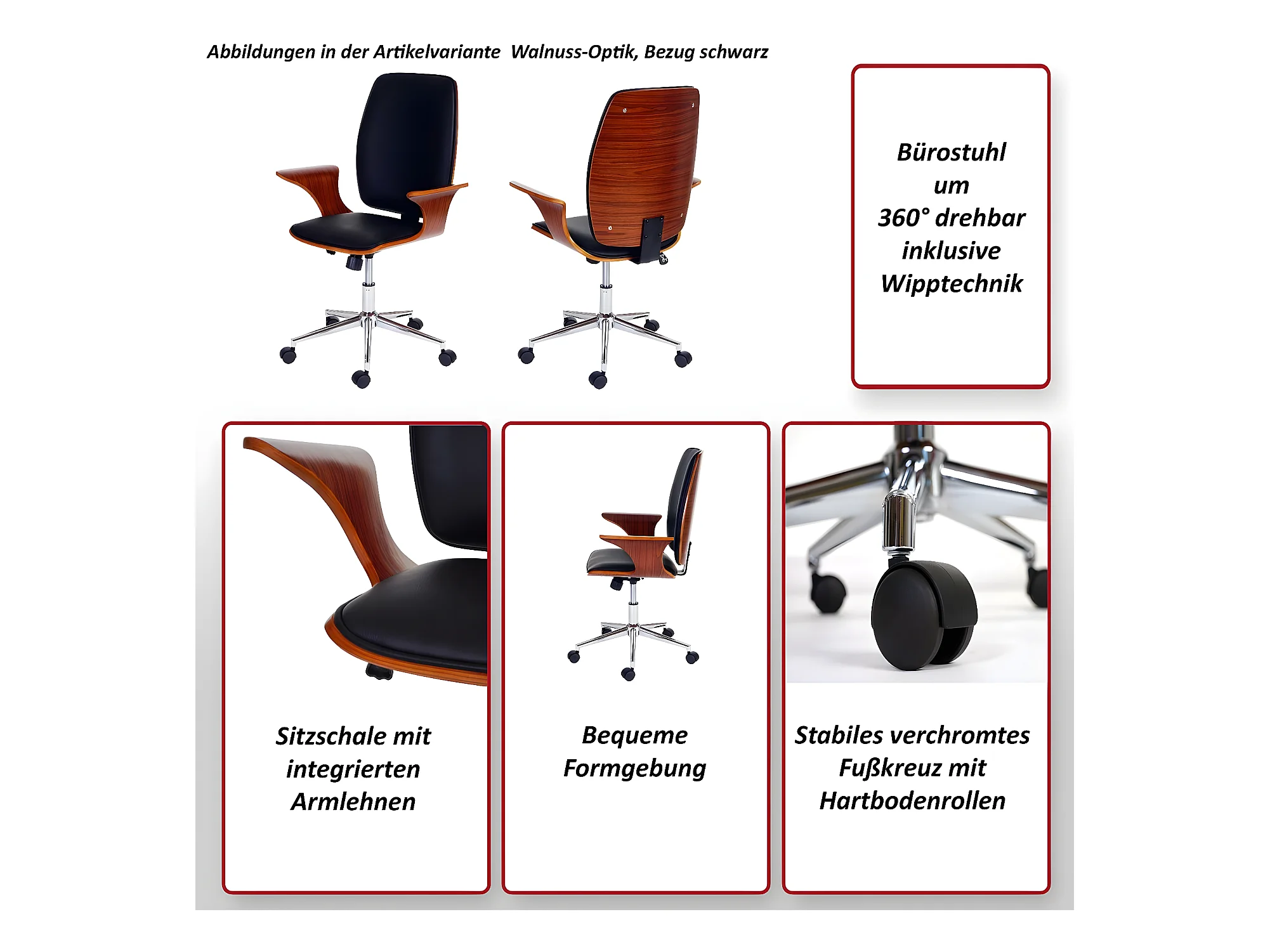 Poltrona sedia ufficio girevole regolabile MCW-C54a elegante legno colore noce ecopelle grigia