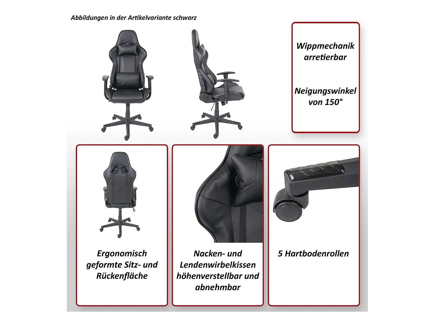 Sedia da gaming regolabile in altezza - similpelle - nero e blu - LINE