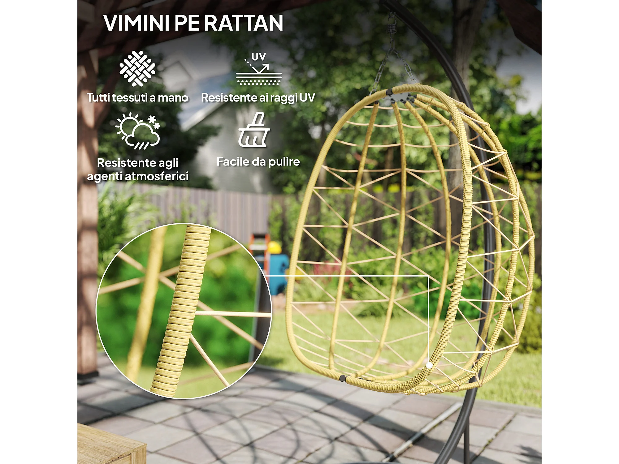 Poltrona sospesa 150kg max in acciaio e rattan pe nero grigio beige