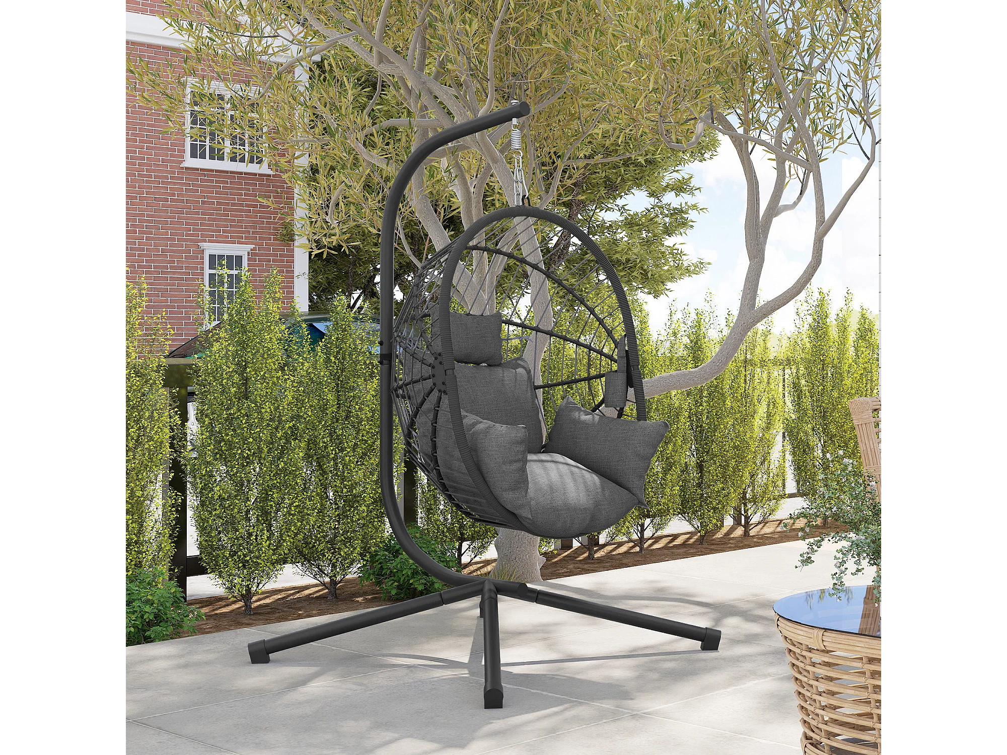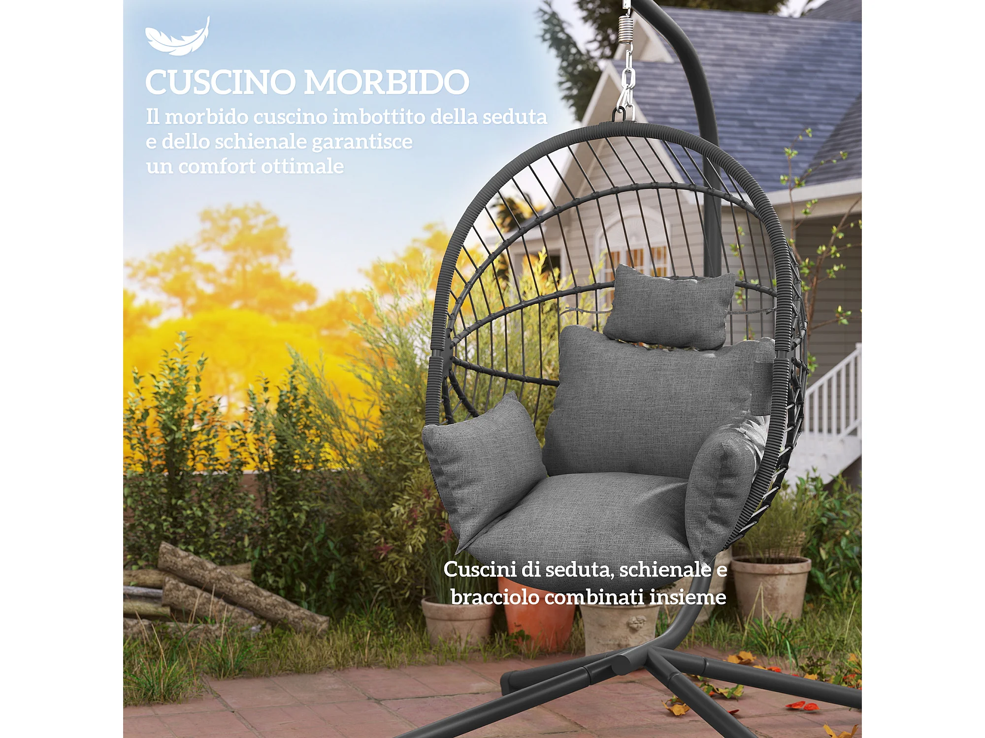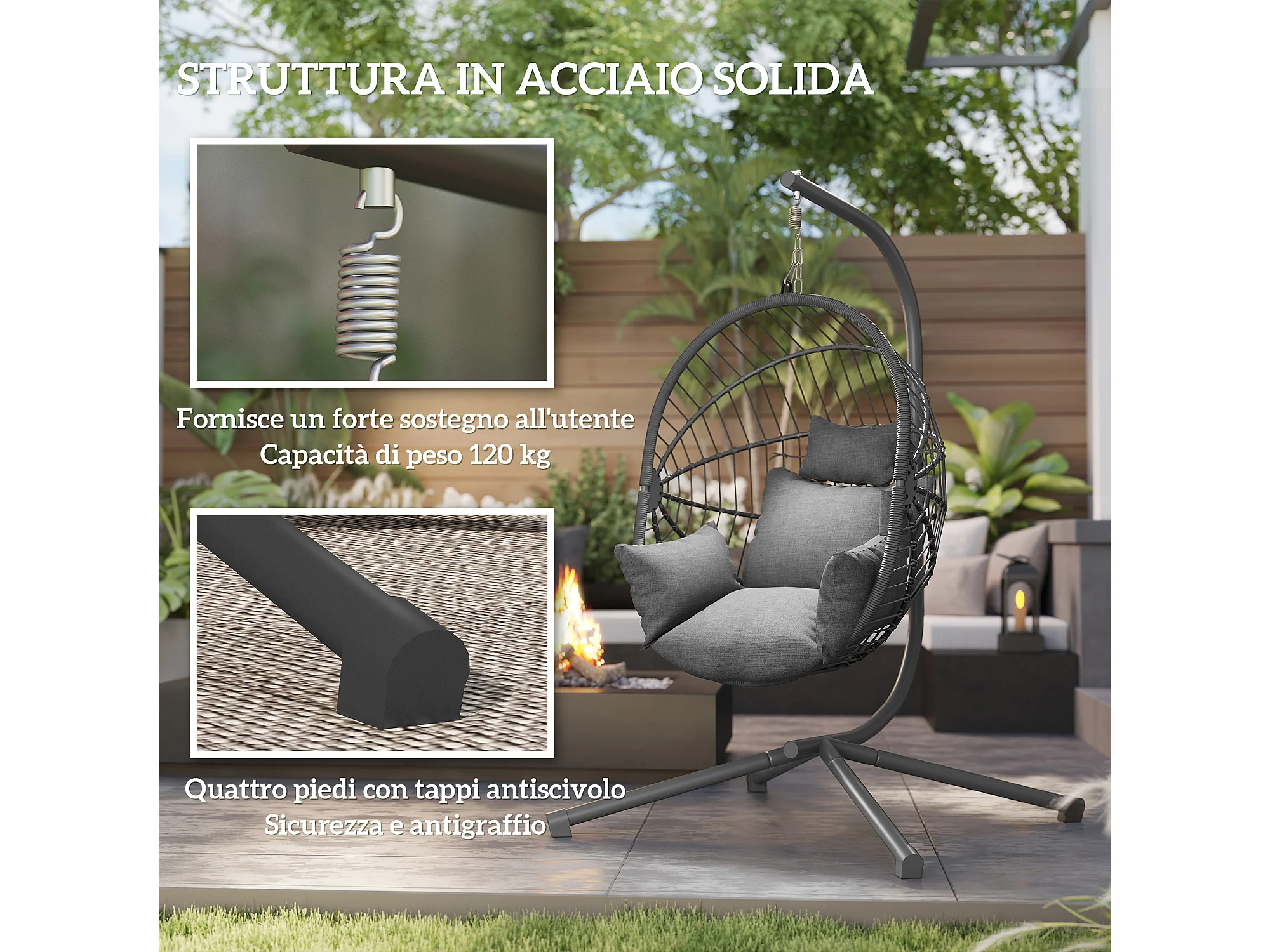 Poltrona sospesa a uovo con cuscino imbottito grigio