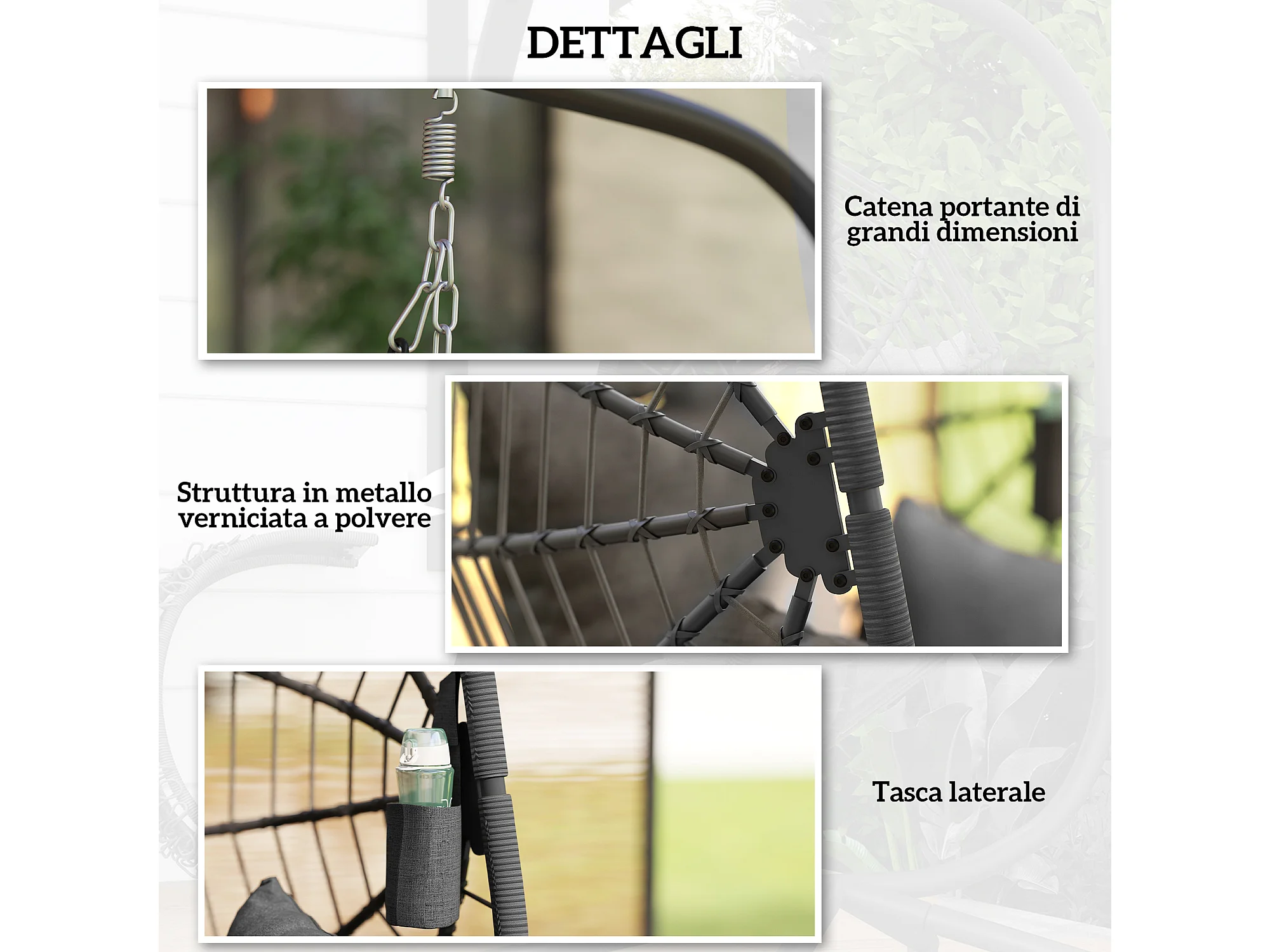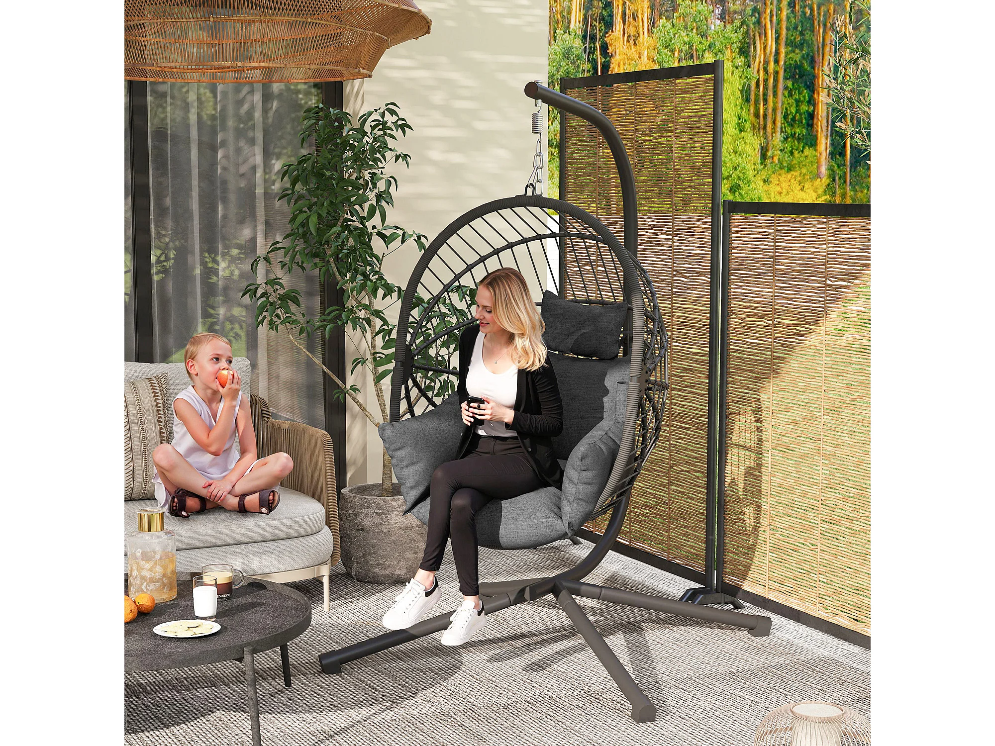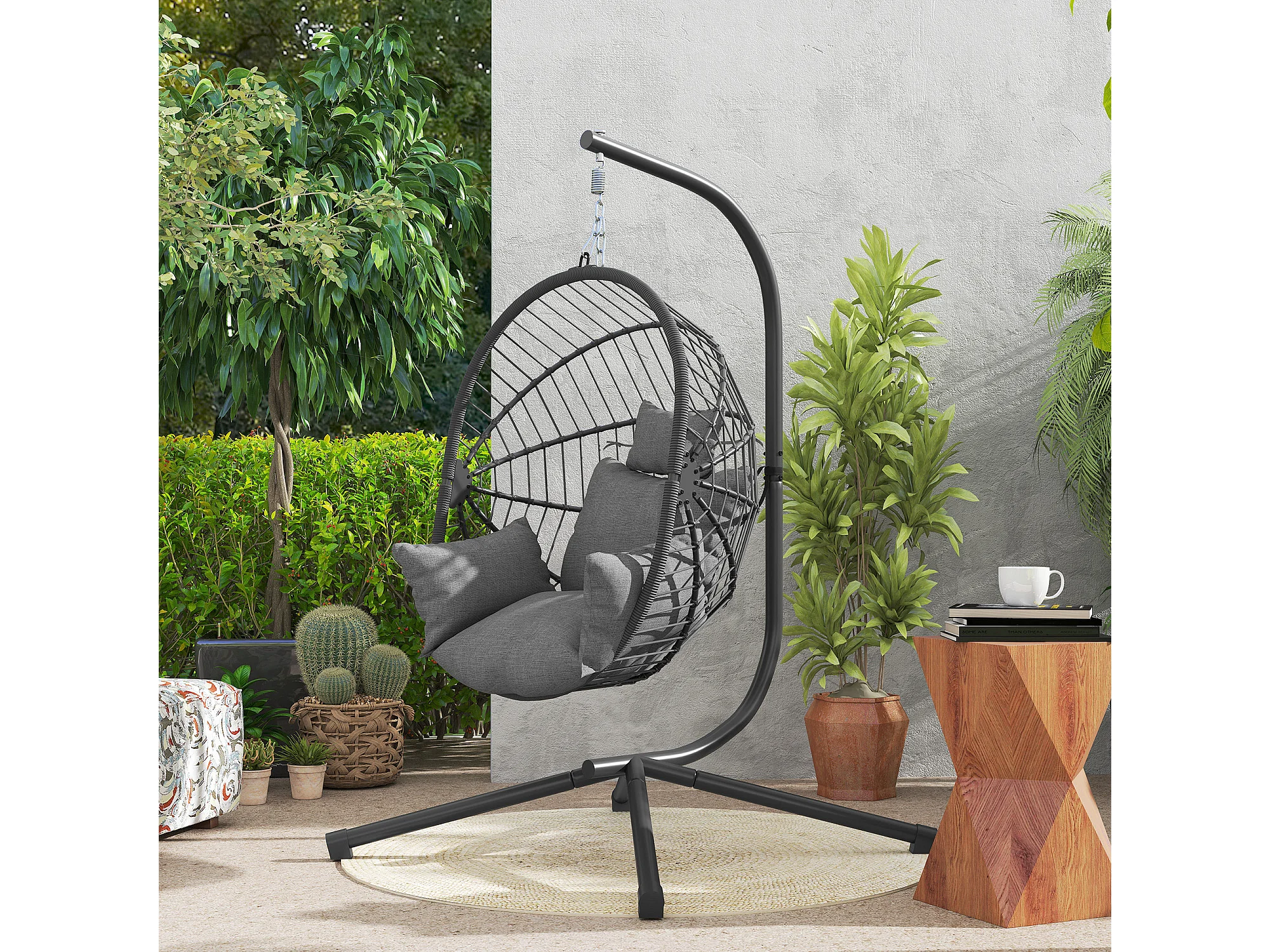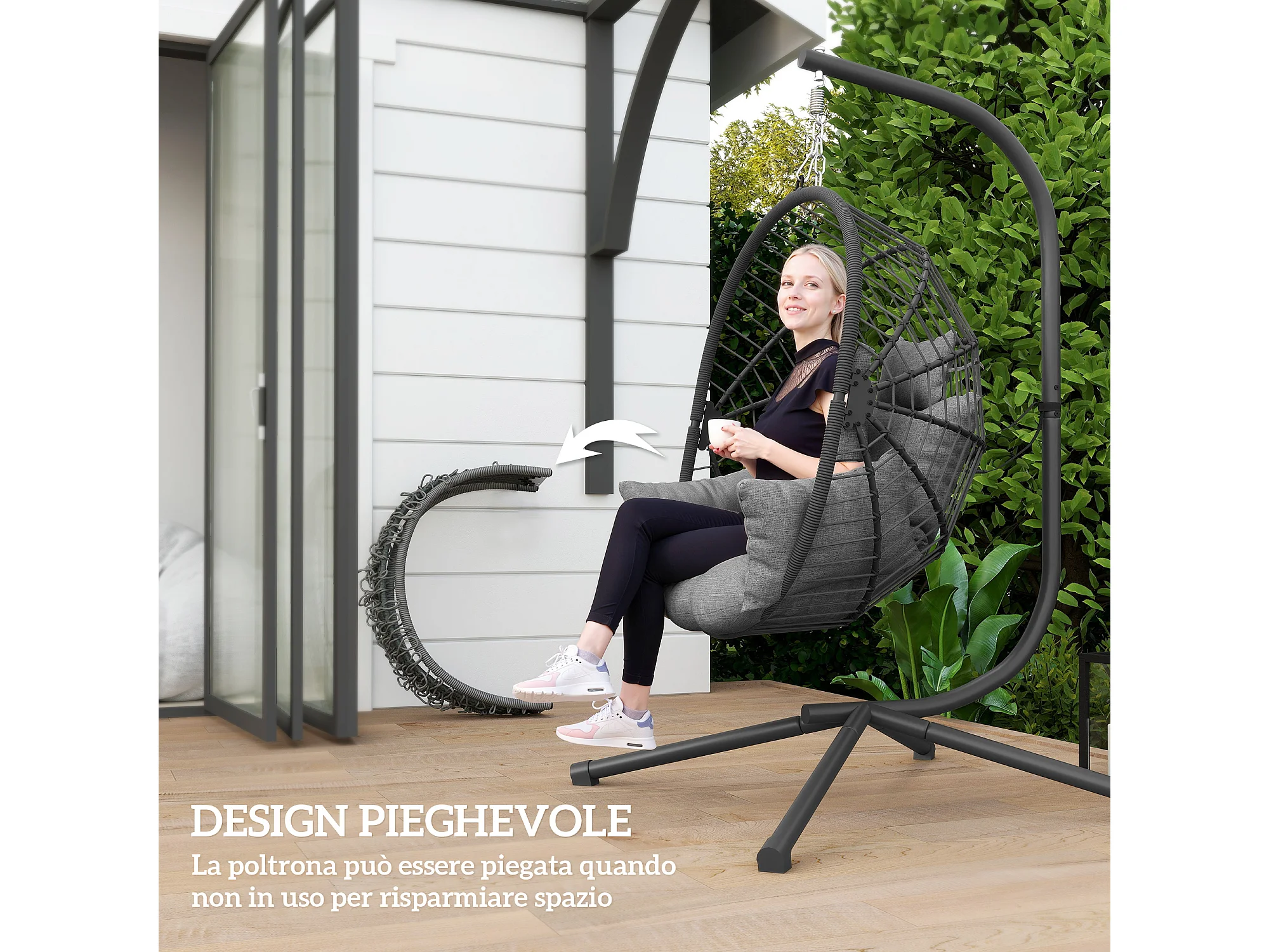 Poltrona sospesa a uovo con cuscino imbottito grigio