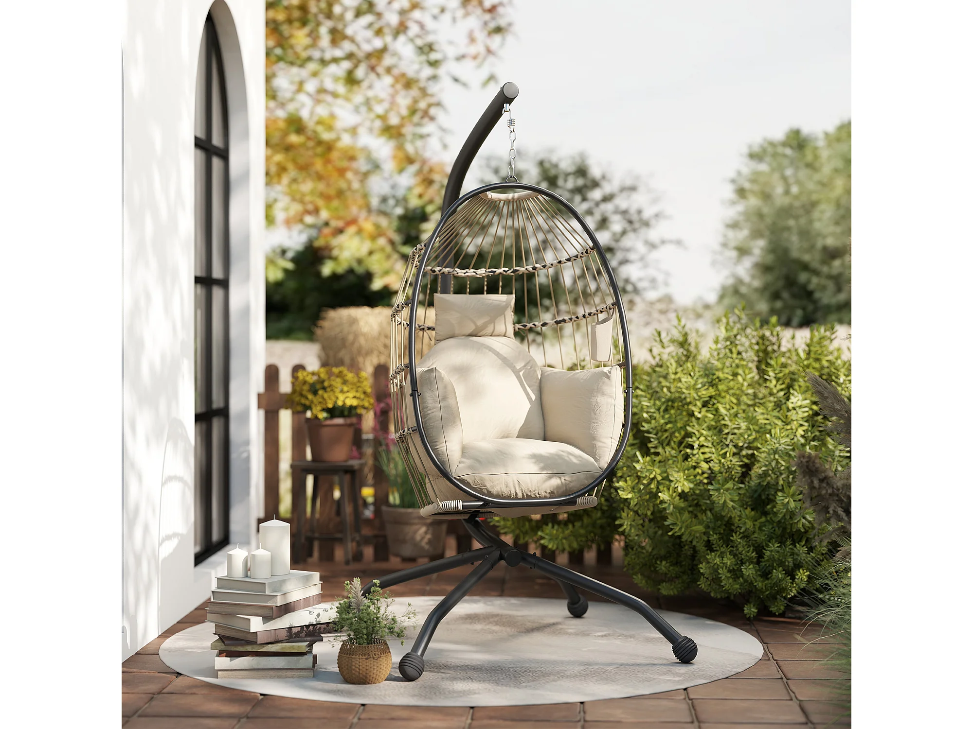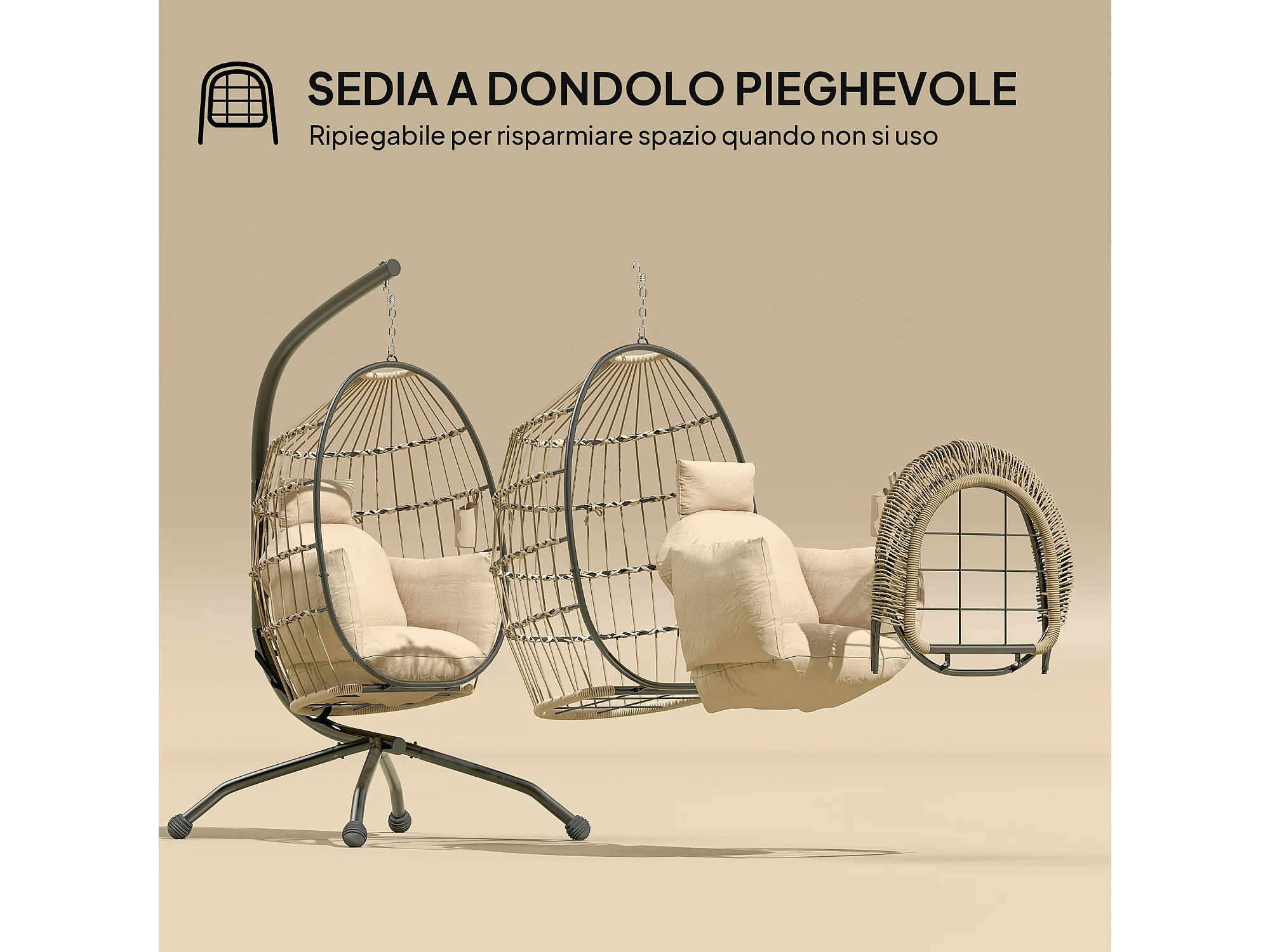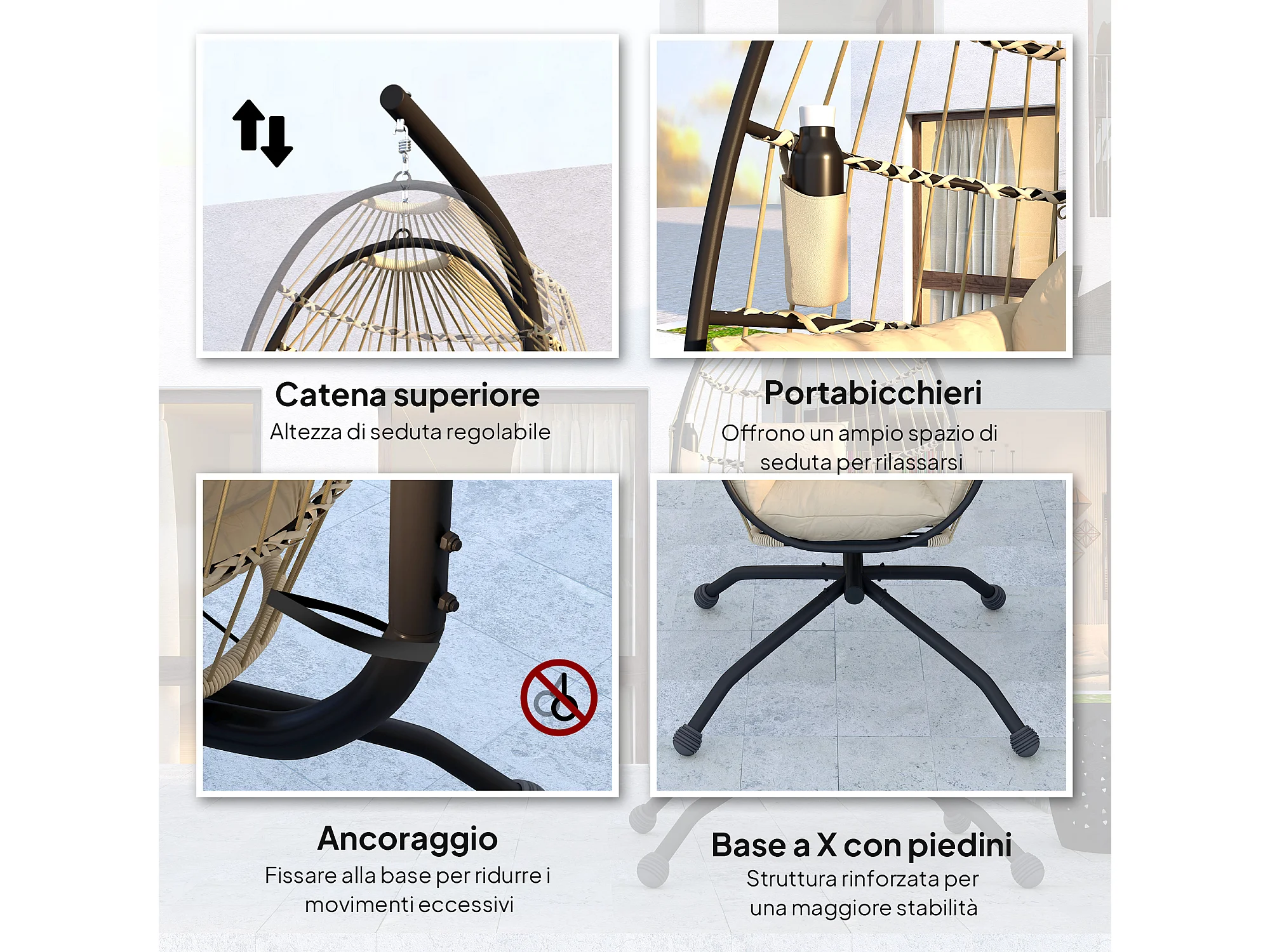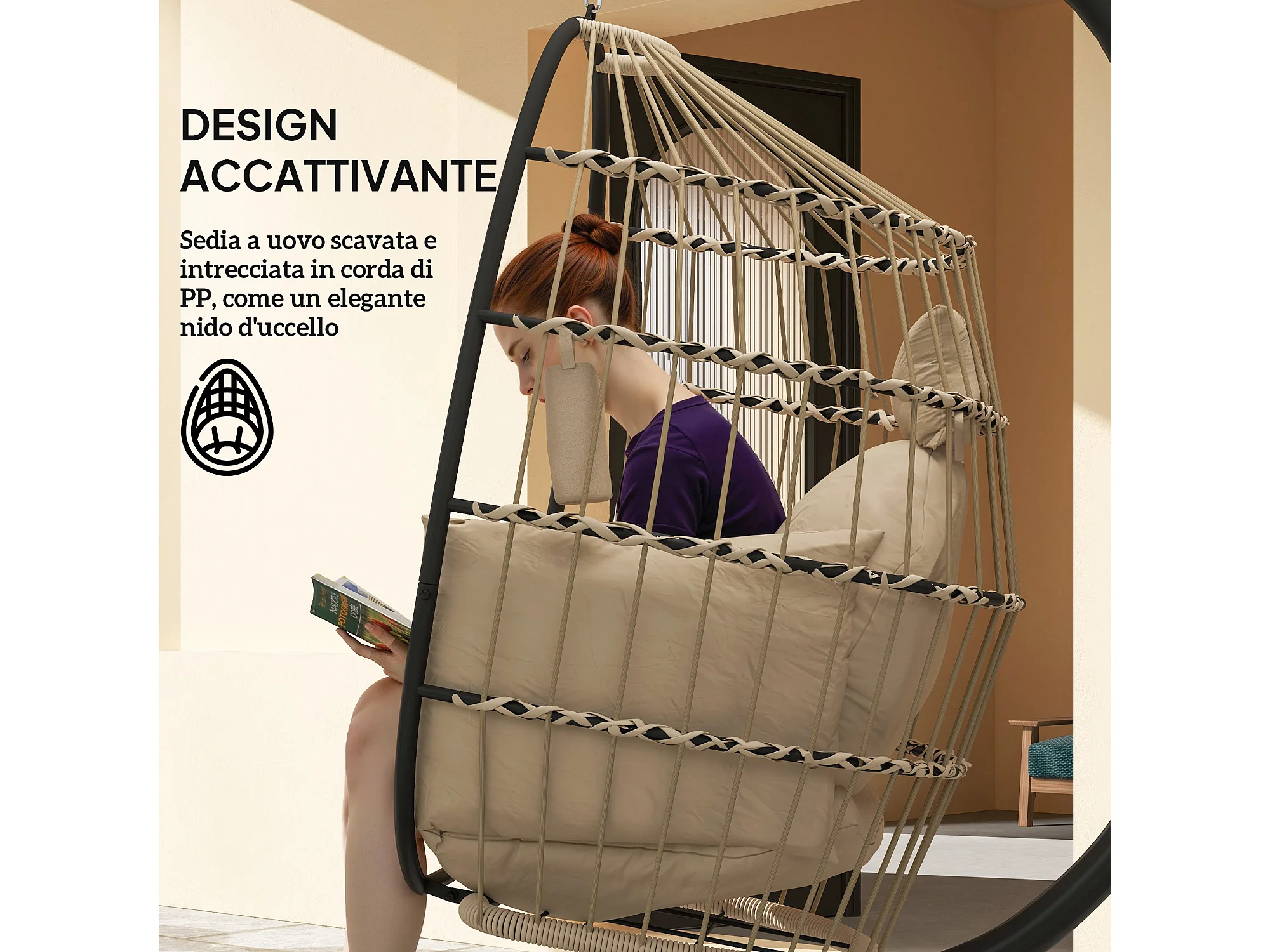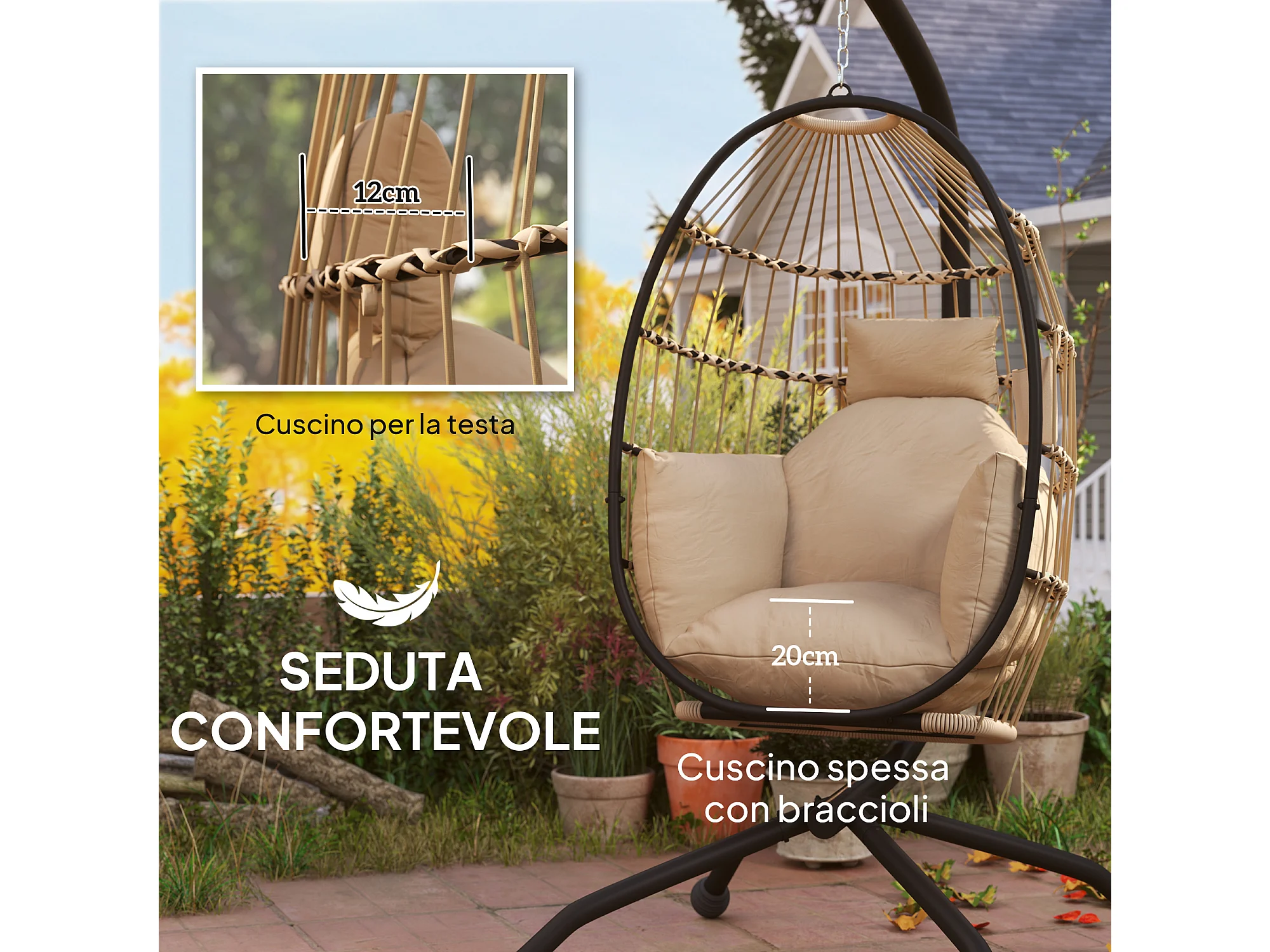 Poltrona sospesa a uovo con gancio regolabile e 2 cuscini cachi