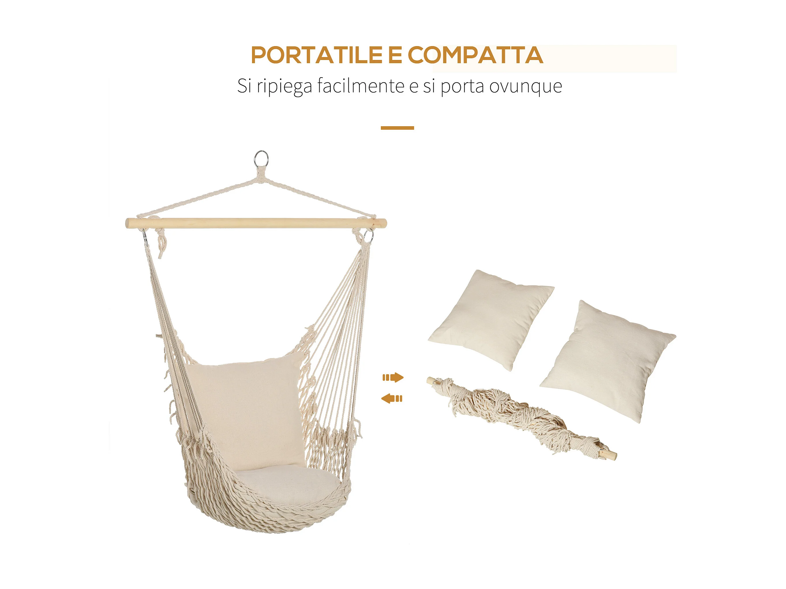 Poltrona Sospesa Da Giardino In Coeda Sedia A Dondolo Sospesa In Stile Shabby Chic Amaca Per Interni Ed Esterni Bianca 120L X 90Pcm