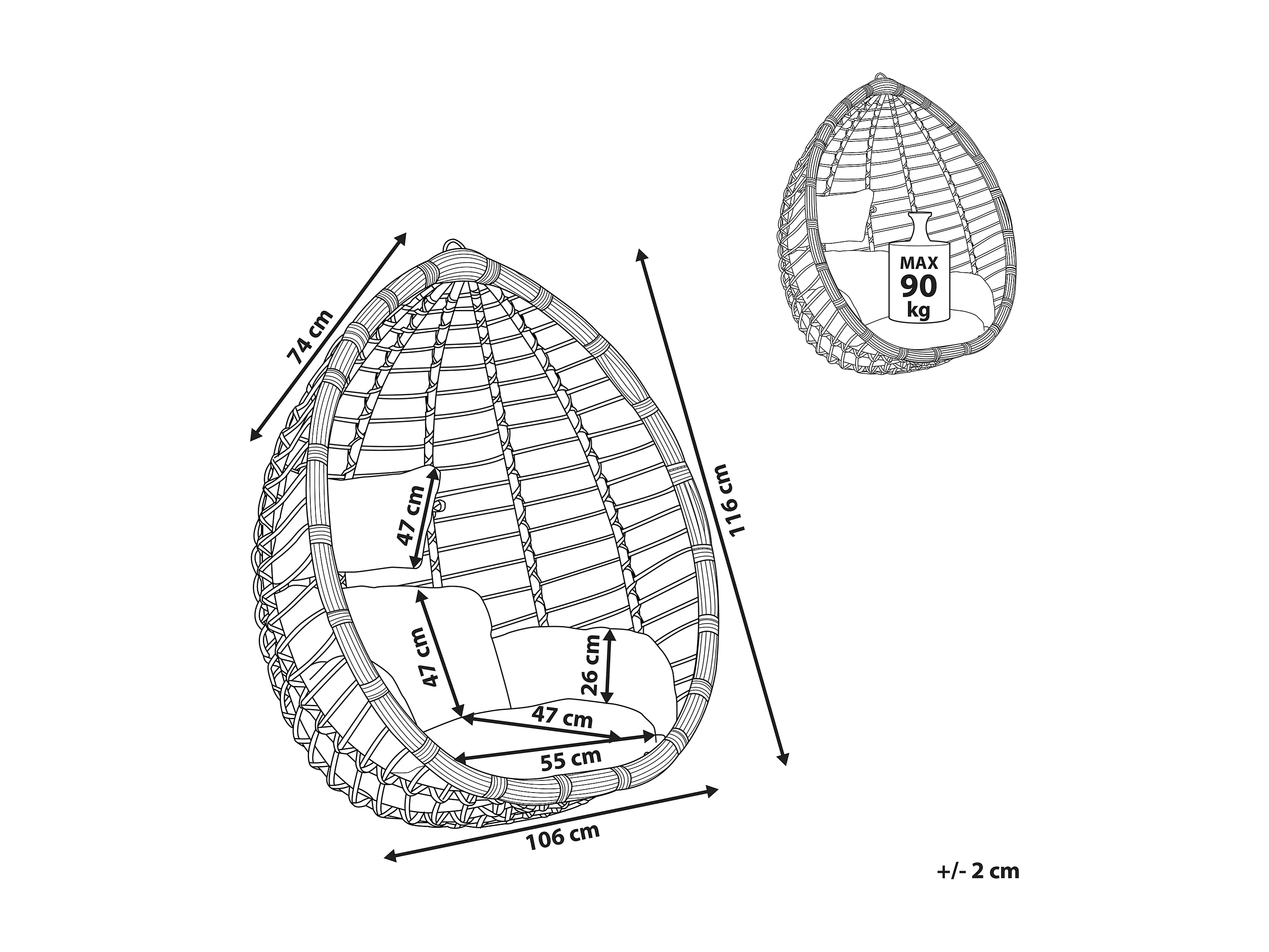 Sedia sospesa da fissare al soffitto TOLLO Grigio
