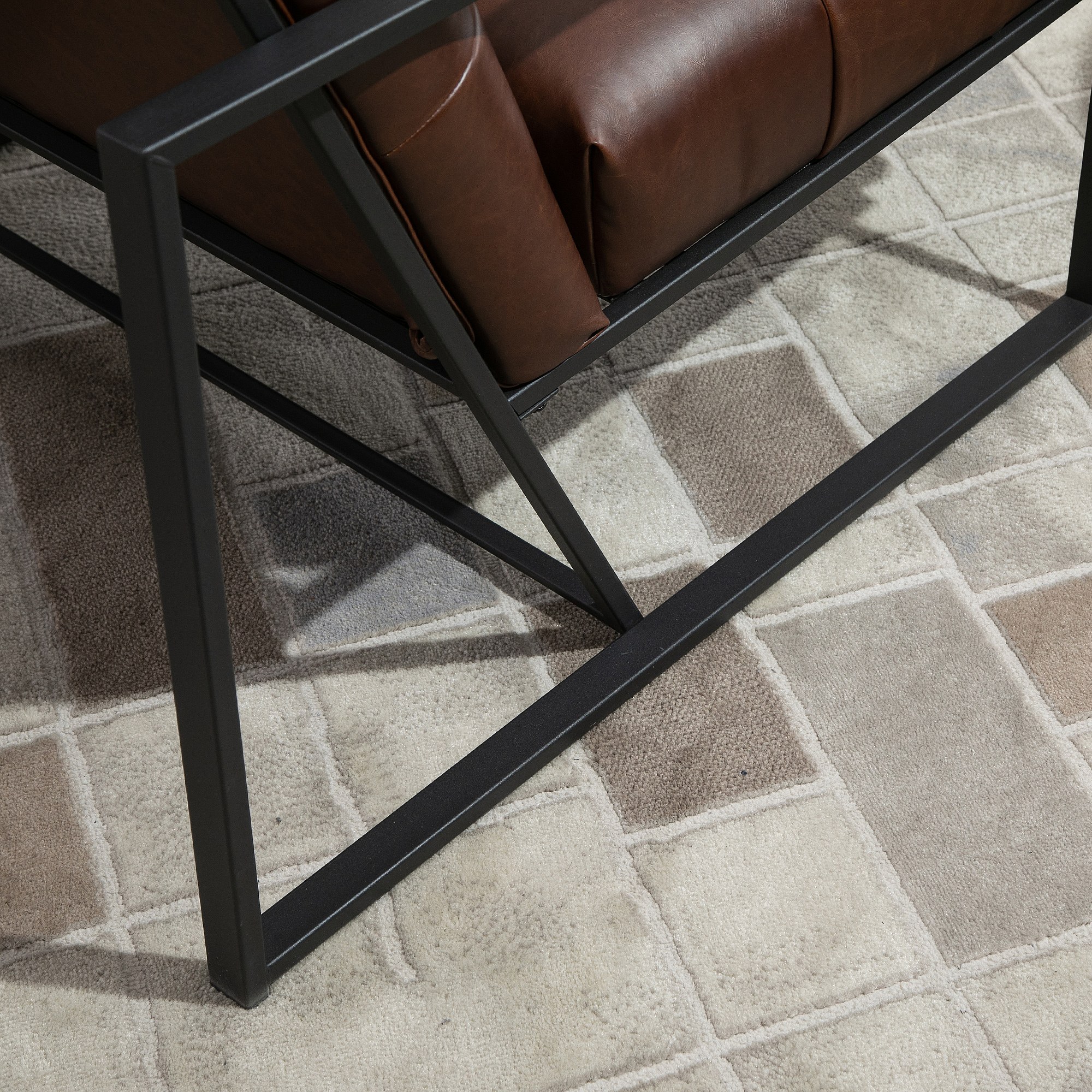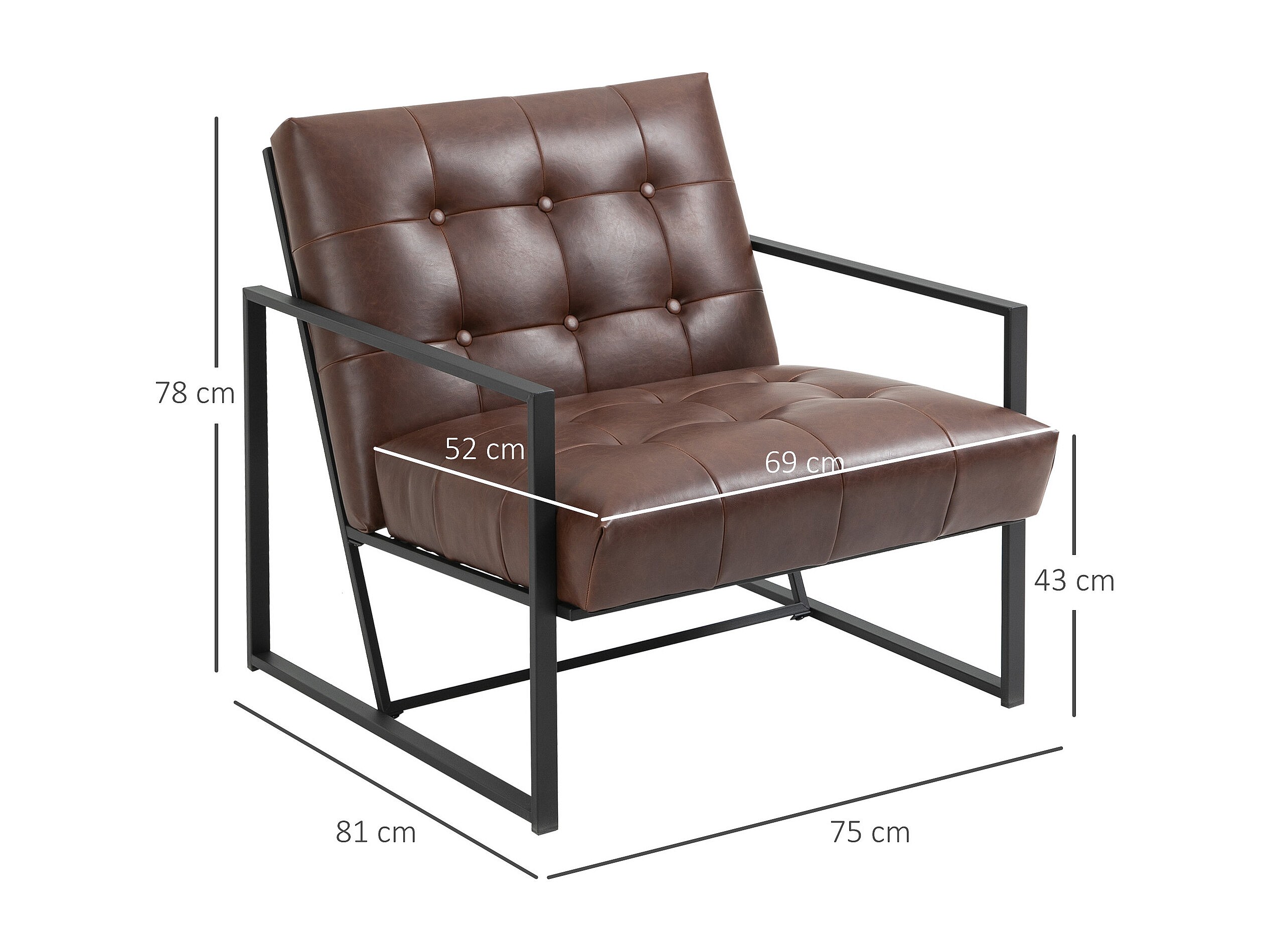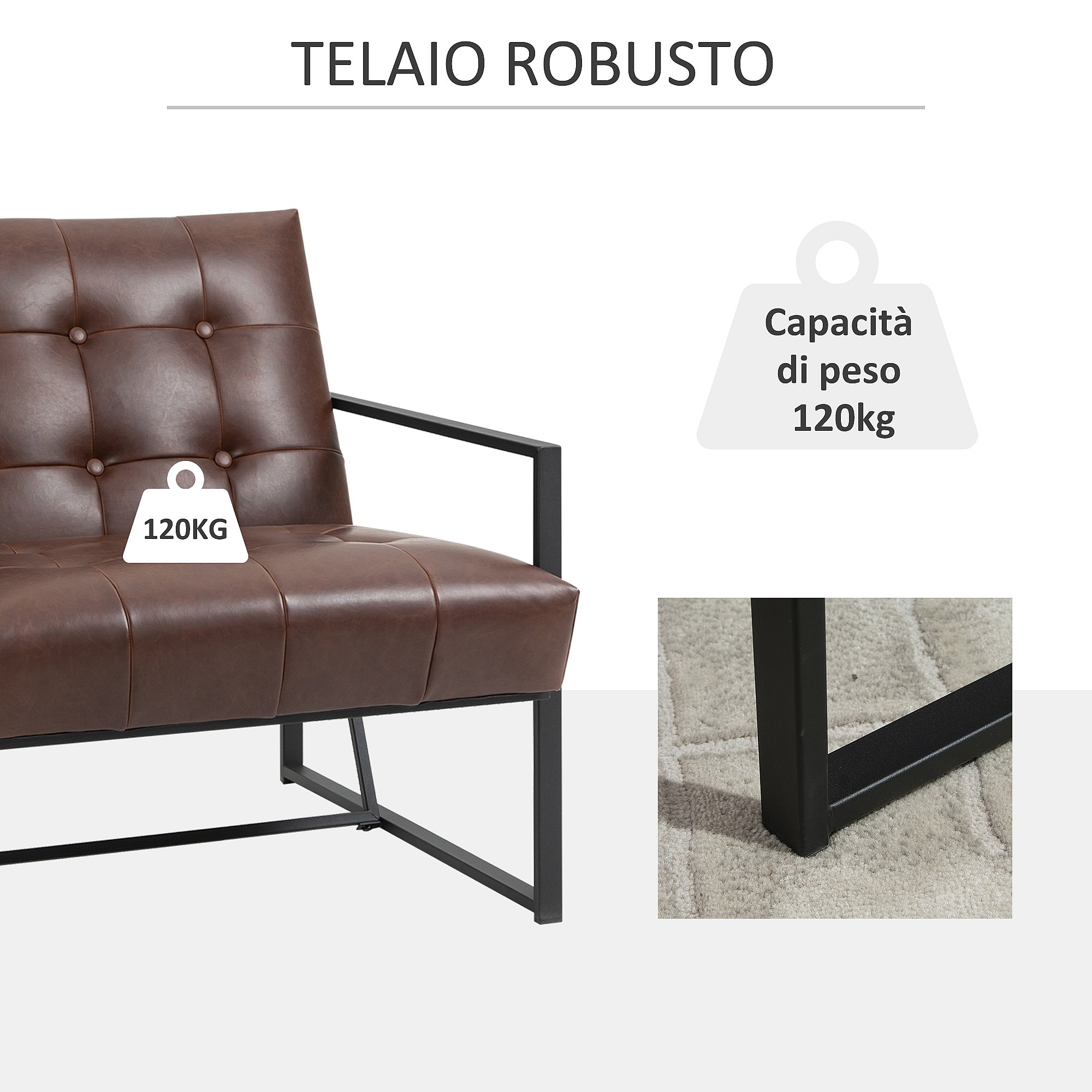 Poltrona stile industriale imbottita in pu e metallo marrone
