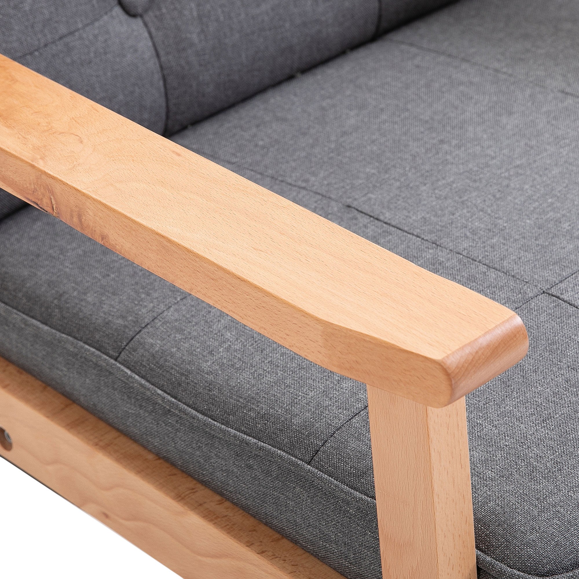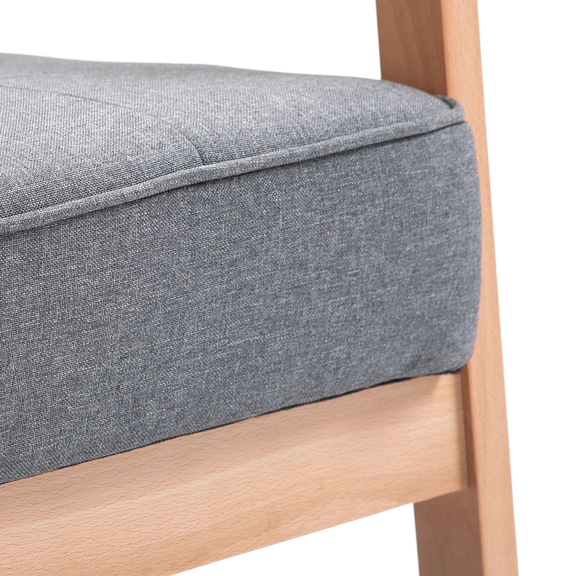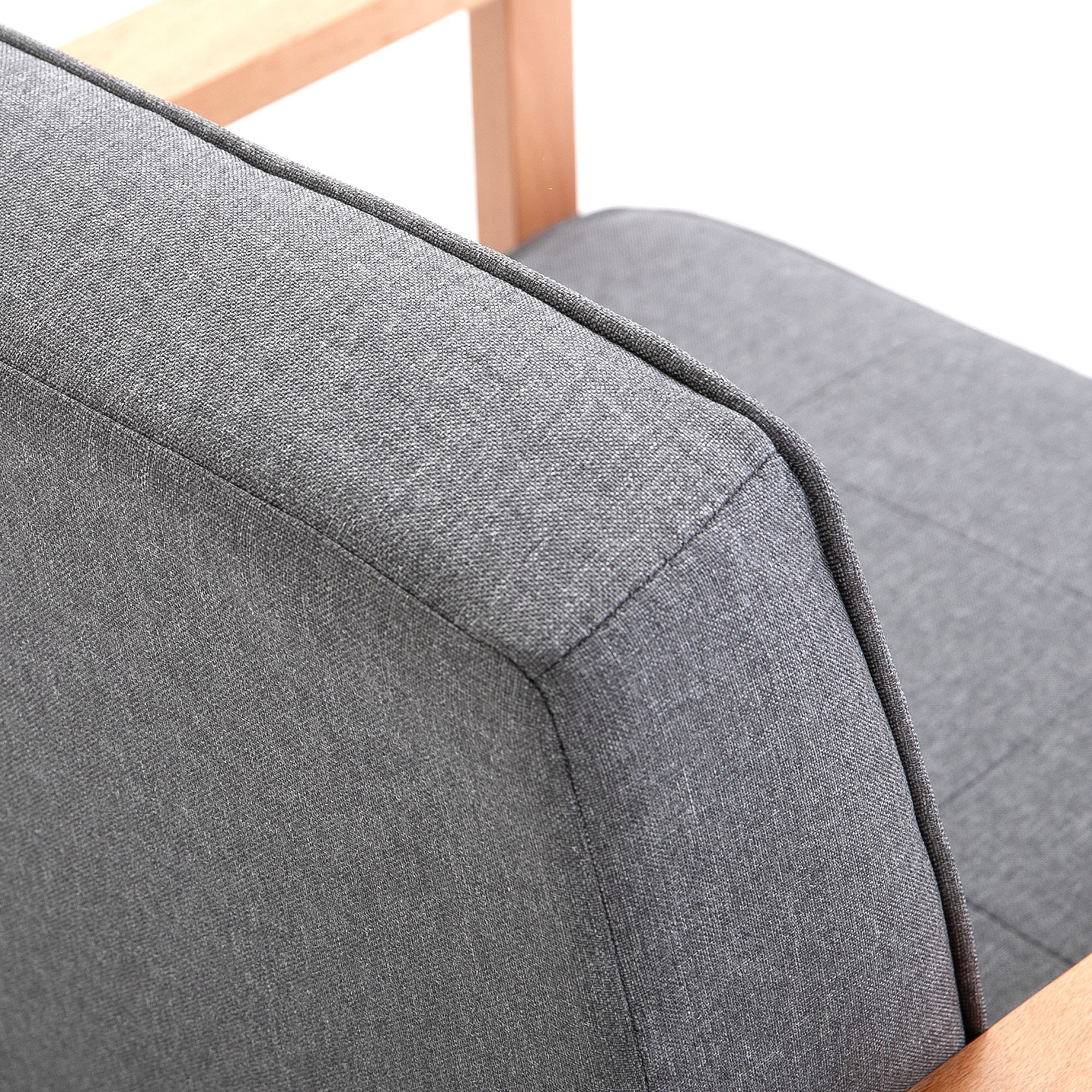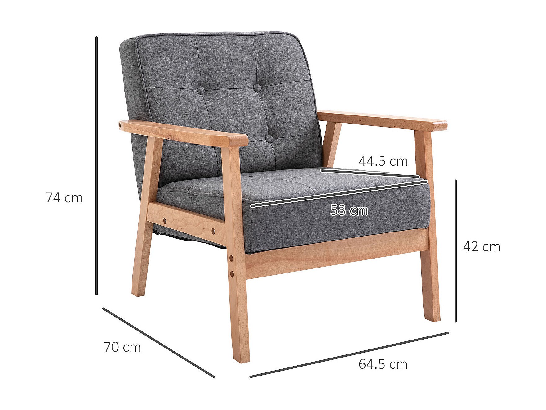 Poltrona stile nordico imbottita con braccioli legno e tessuto grigio