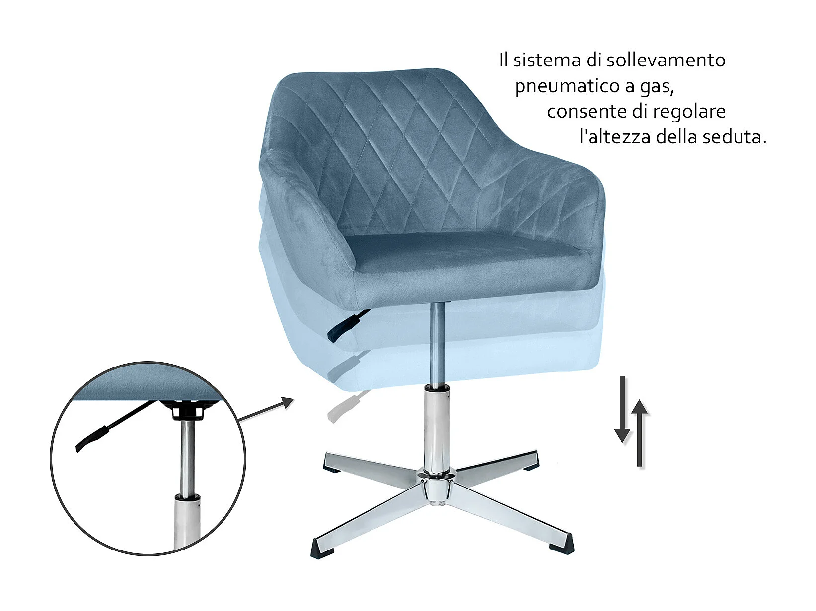 Poltrona ufficio regolabile in altezza in velluto carta da zucchero, poltrona girevole mod. Louise