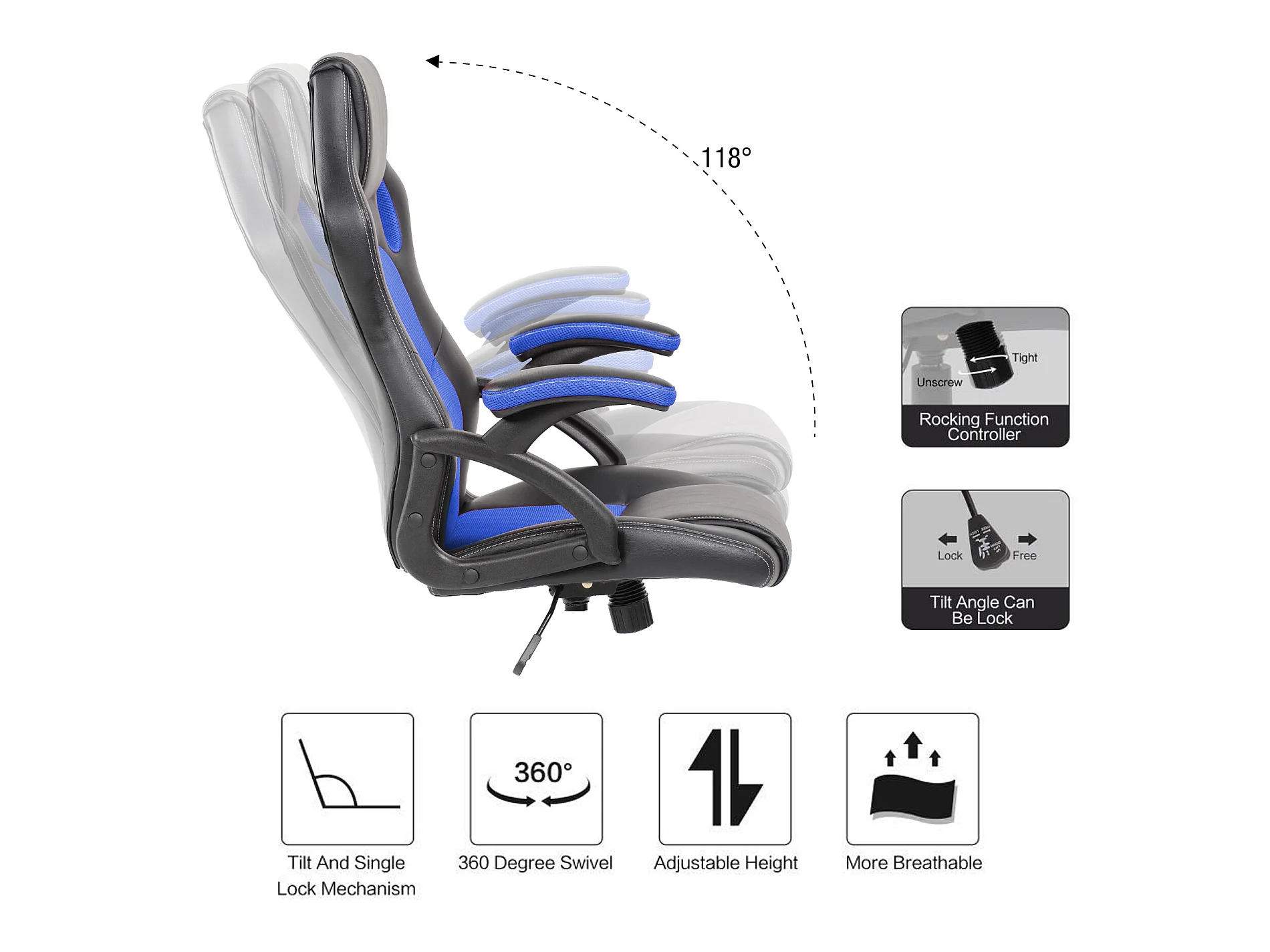 Sedia da gaming regolabile in altezza - similpelle - nero e blu - LINE