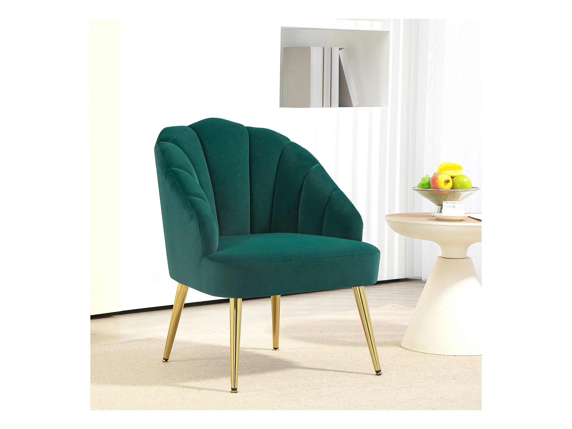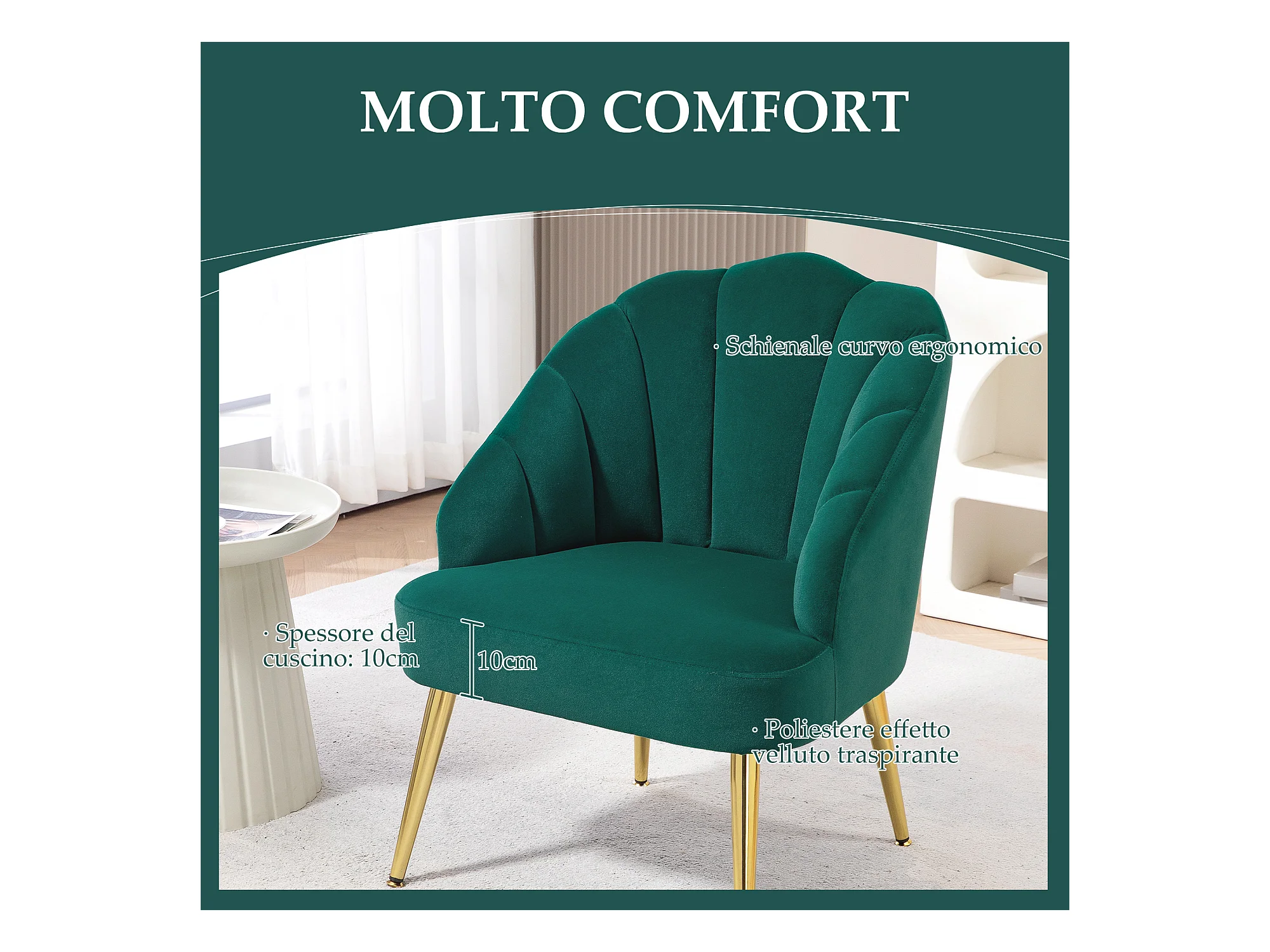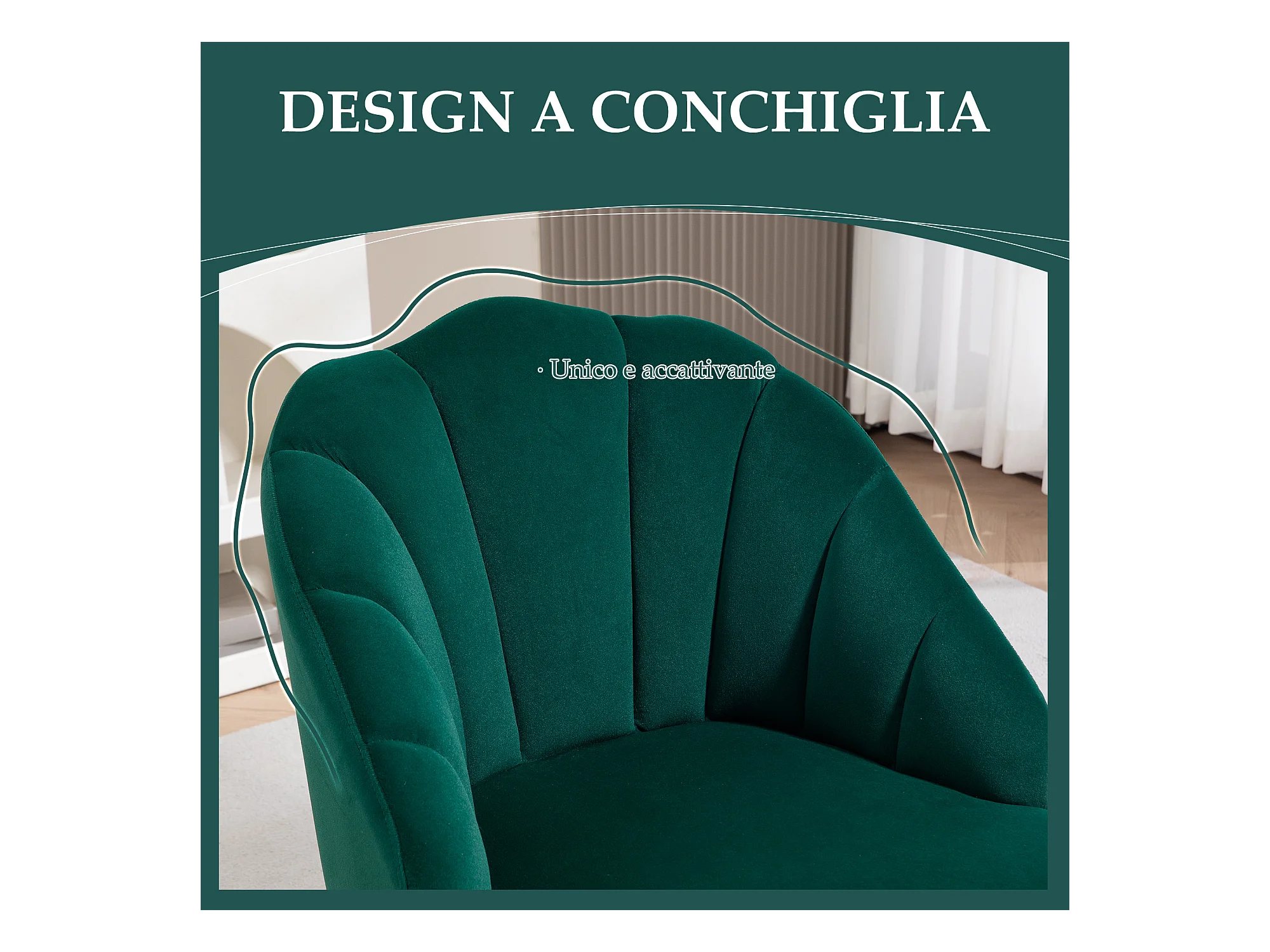 Poltroncina da camera effetto velluto con schienale a conchiglia verde