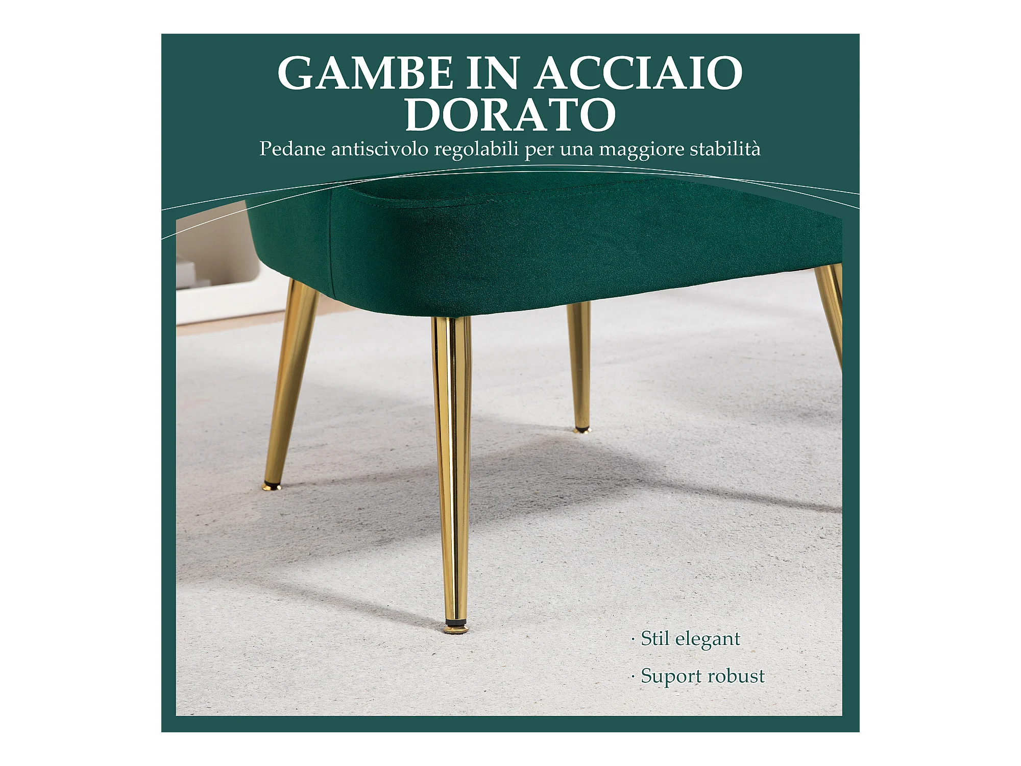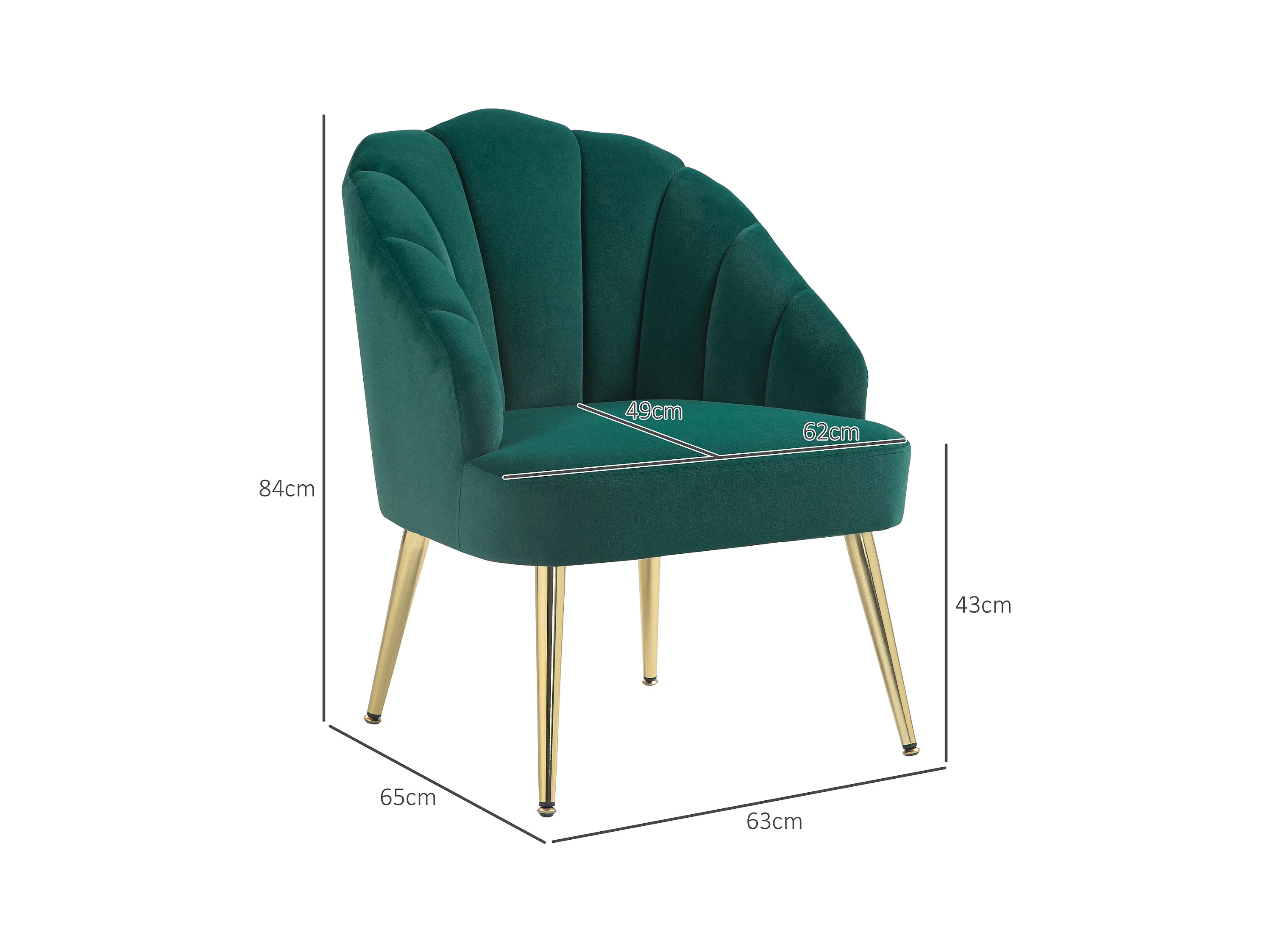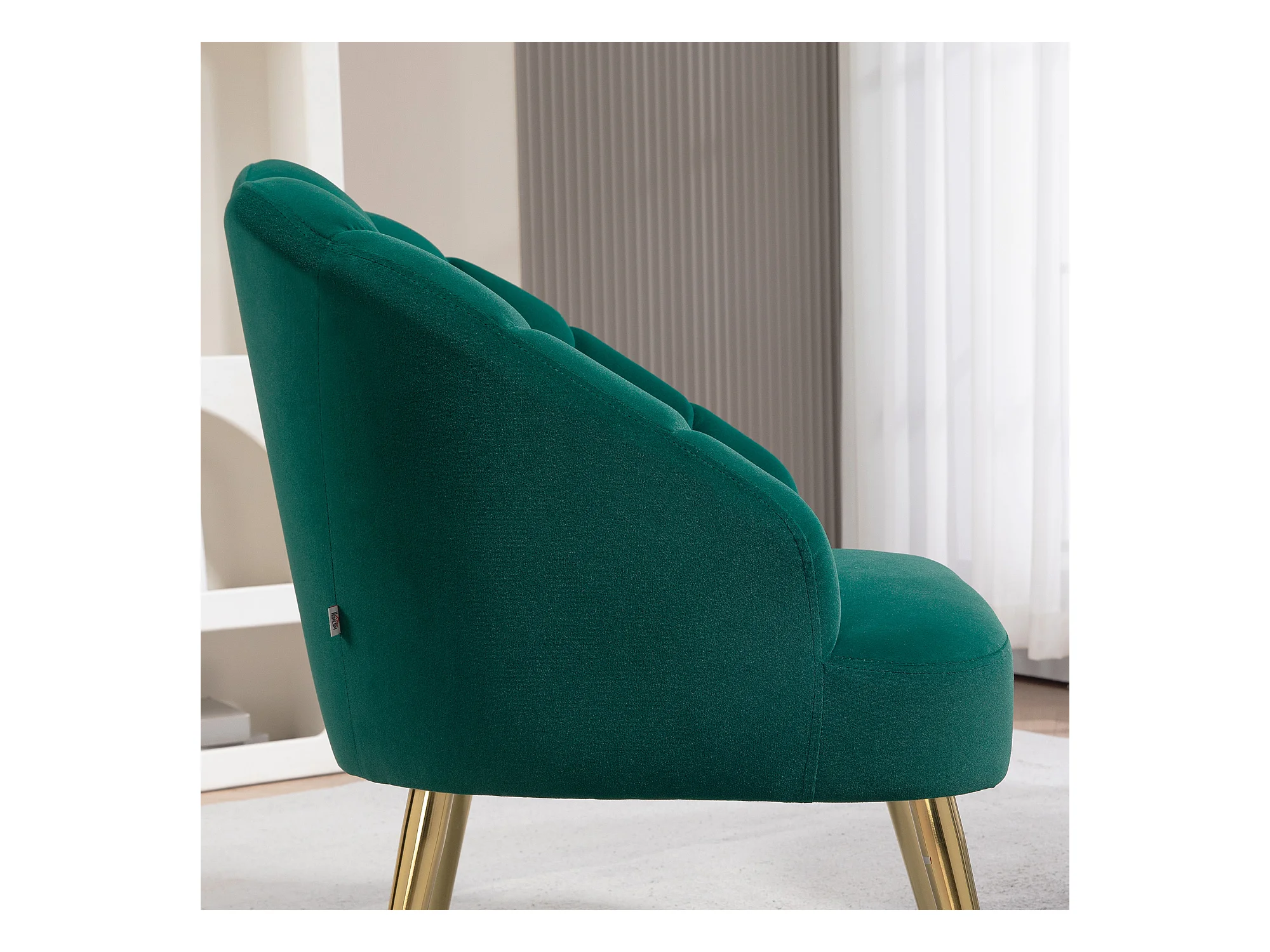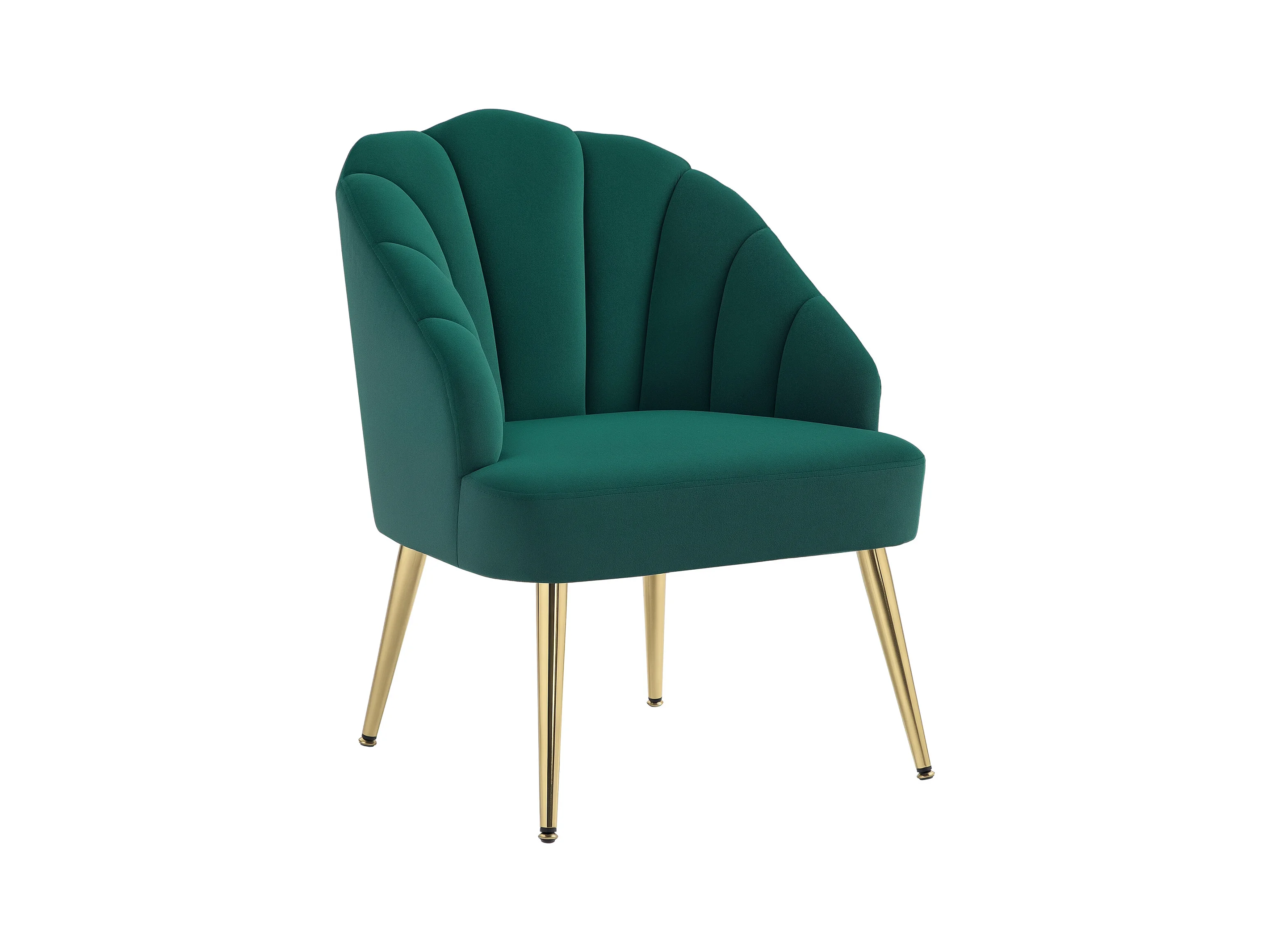 Poltroncina da camera effetto velluto con schienale a conchiglia verde