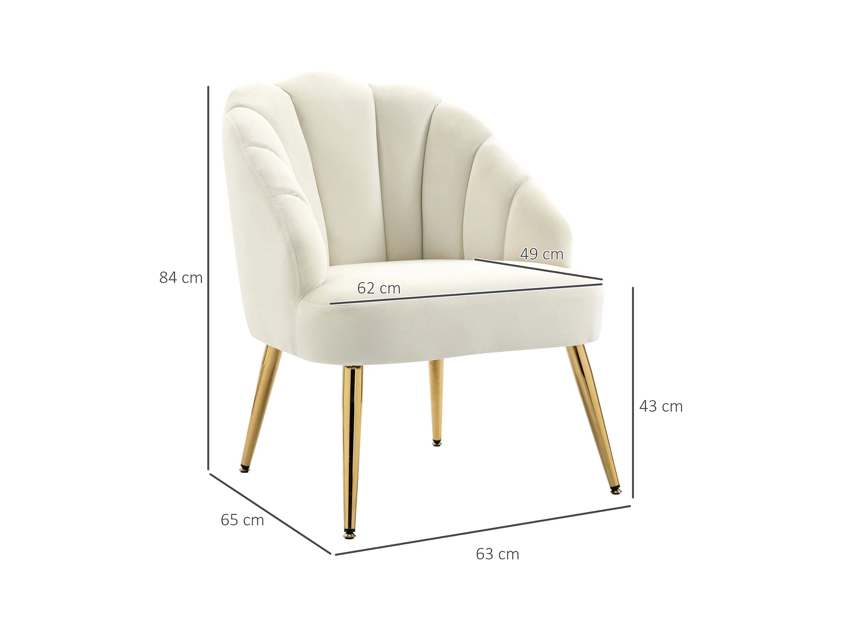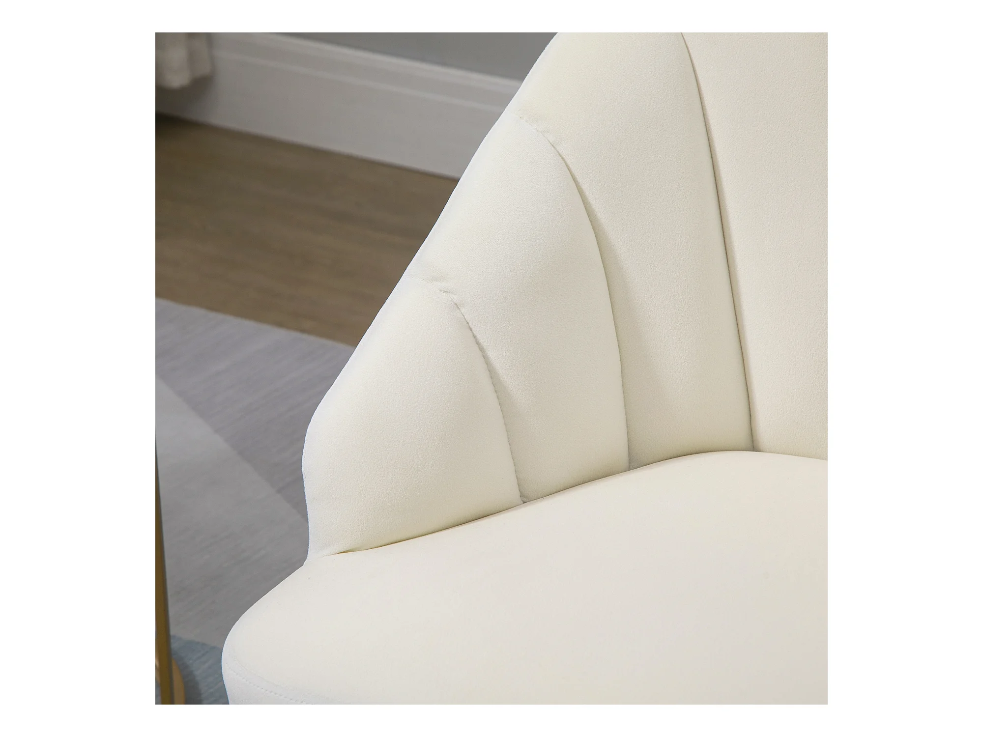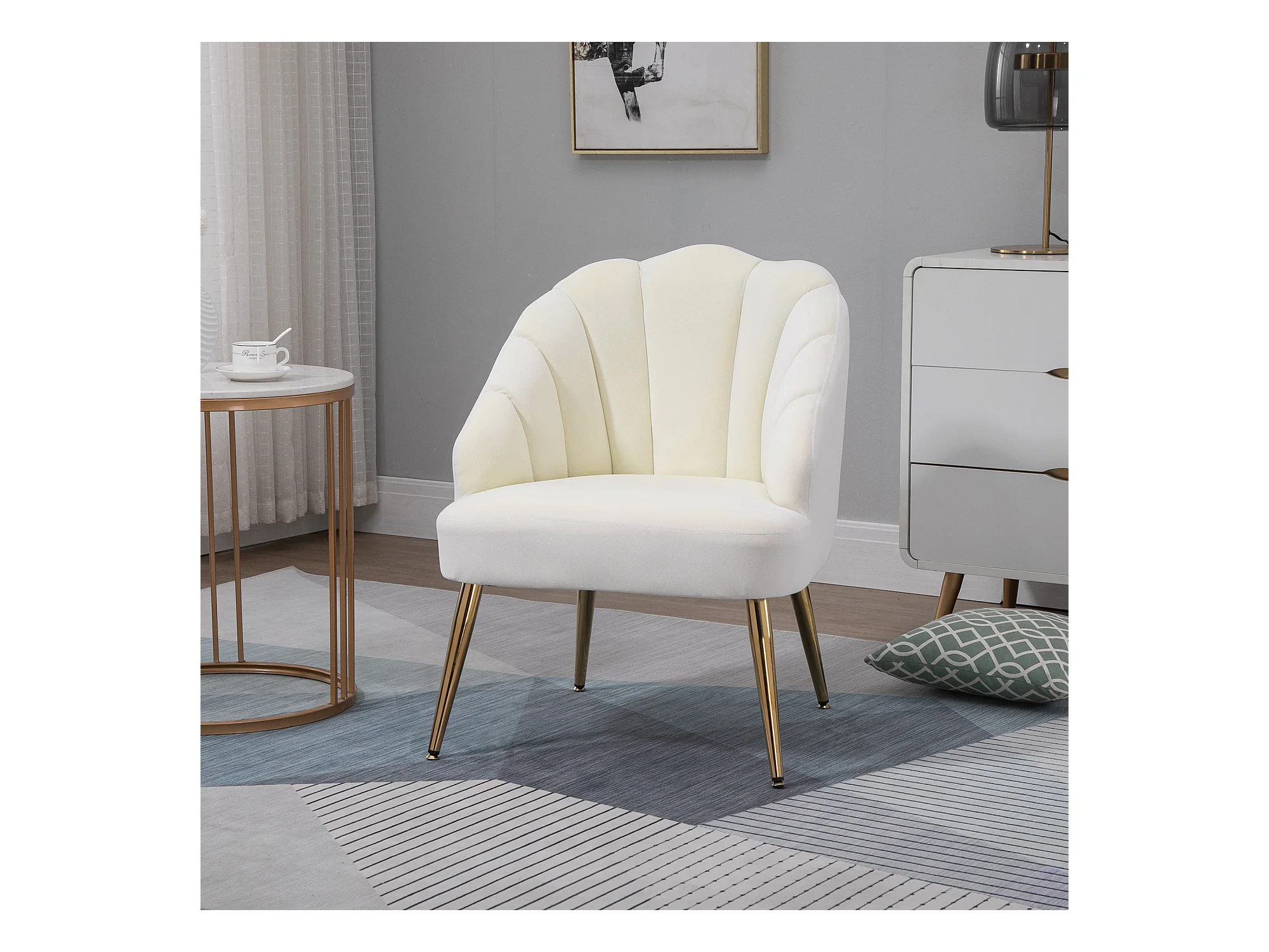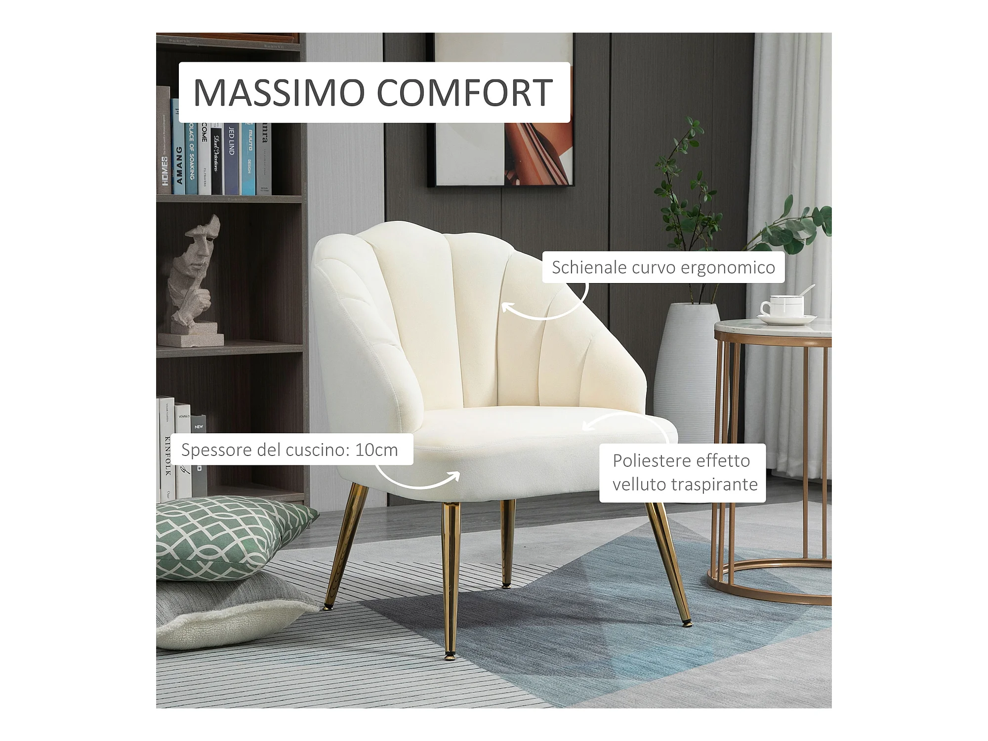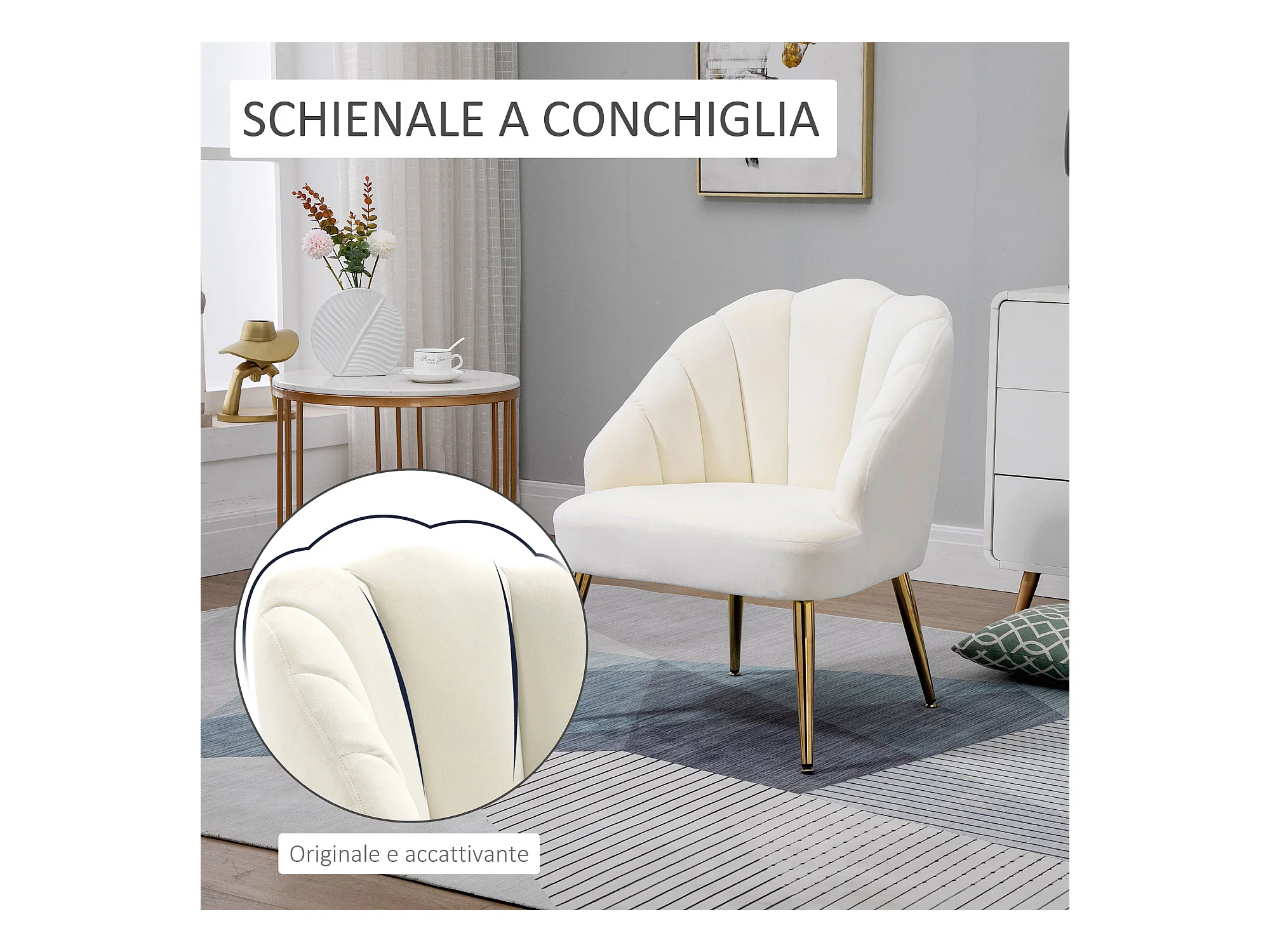 Poltroncina da camera in velluto con schienale a conchiglia