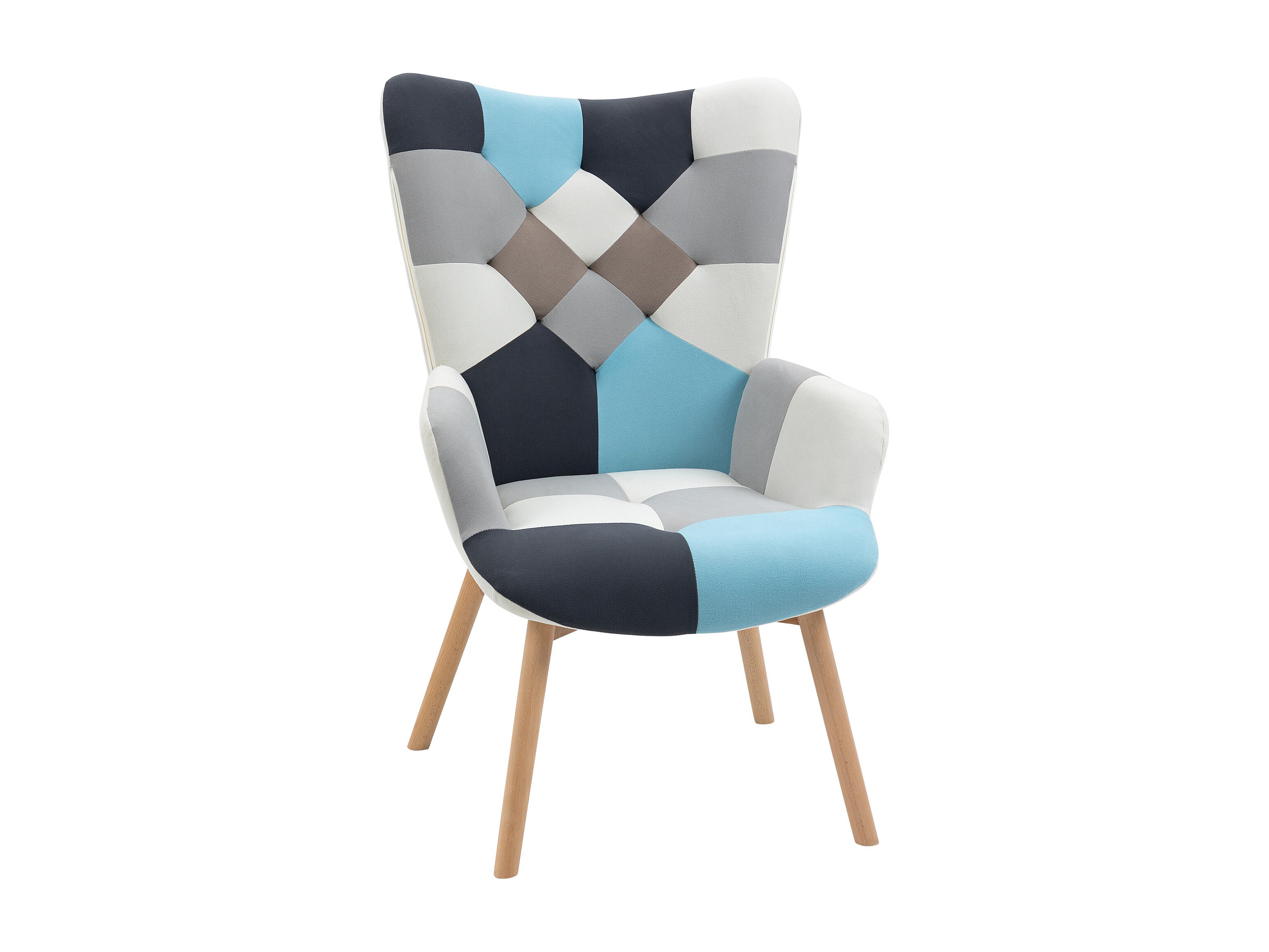 Poltroncina da camera in velluto trapuntato e gambe in legno