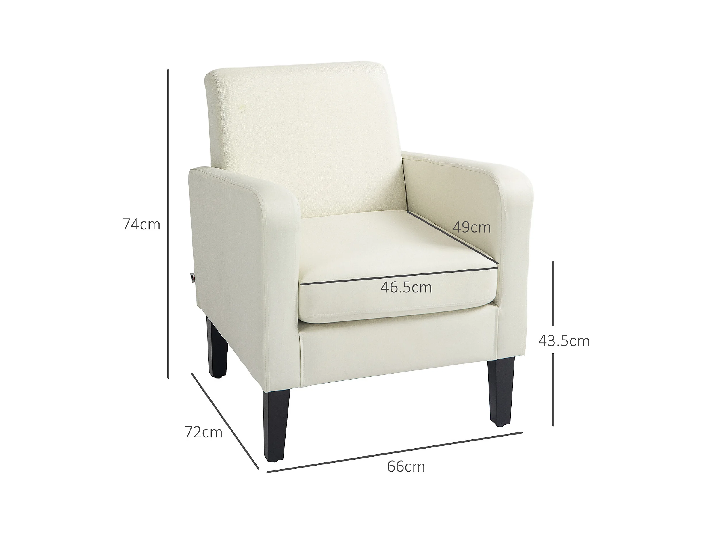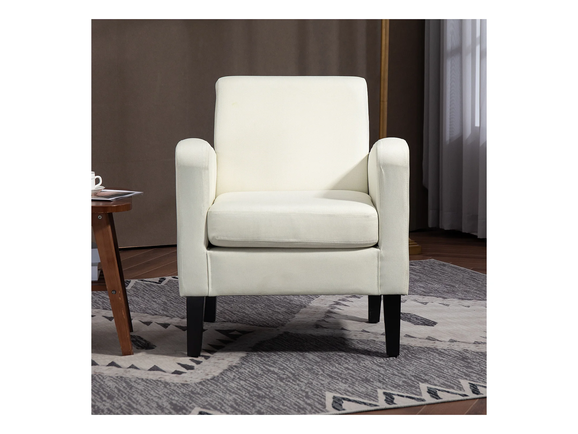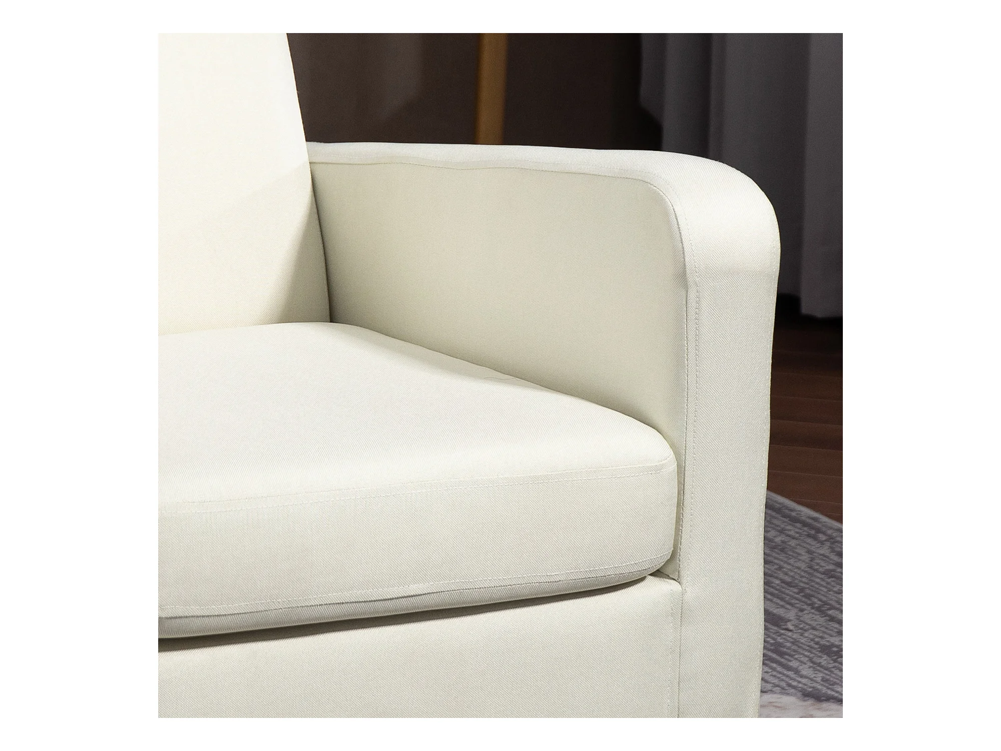 Poltrona da salotto imbottita con braccioli in tessuto bianco crema