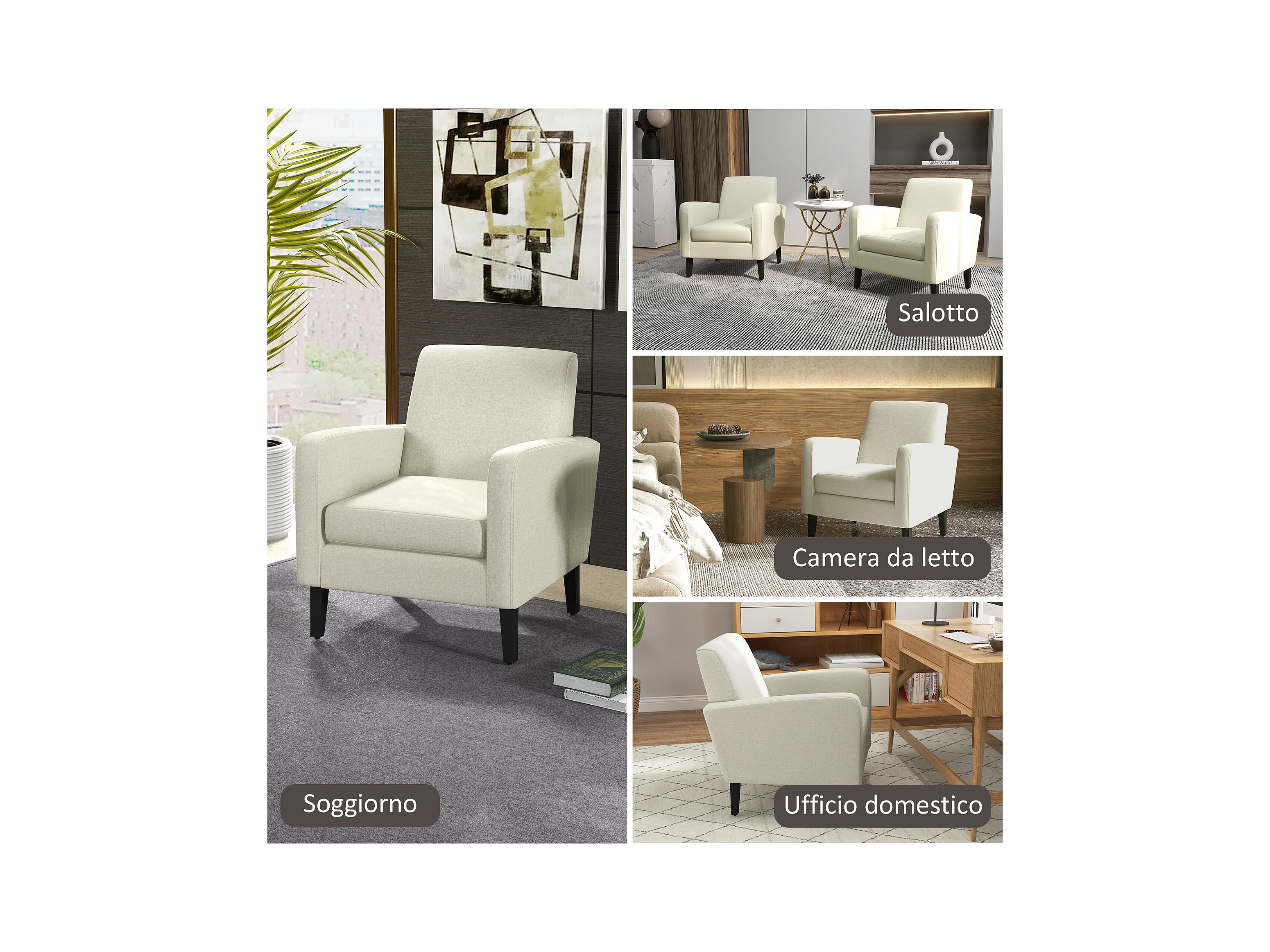 Poltrona 1 posto in lino beige con schienale imbottito - Stile moderno - Per camera da letto o soggiorno