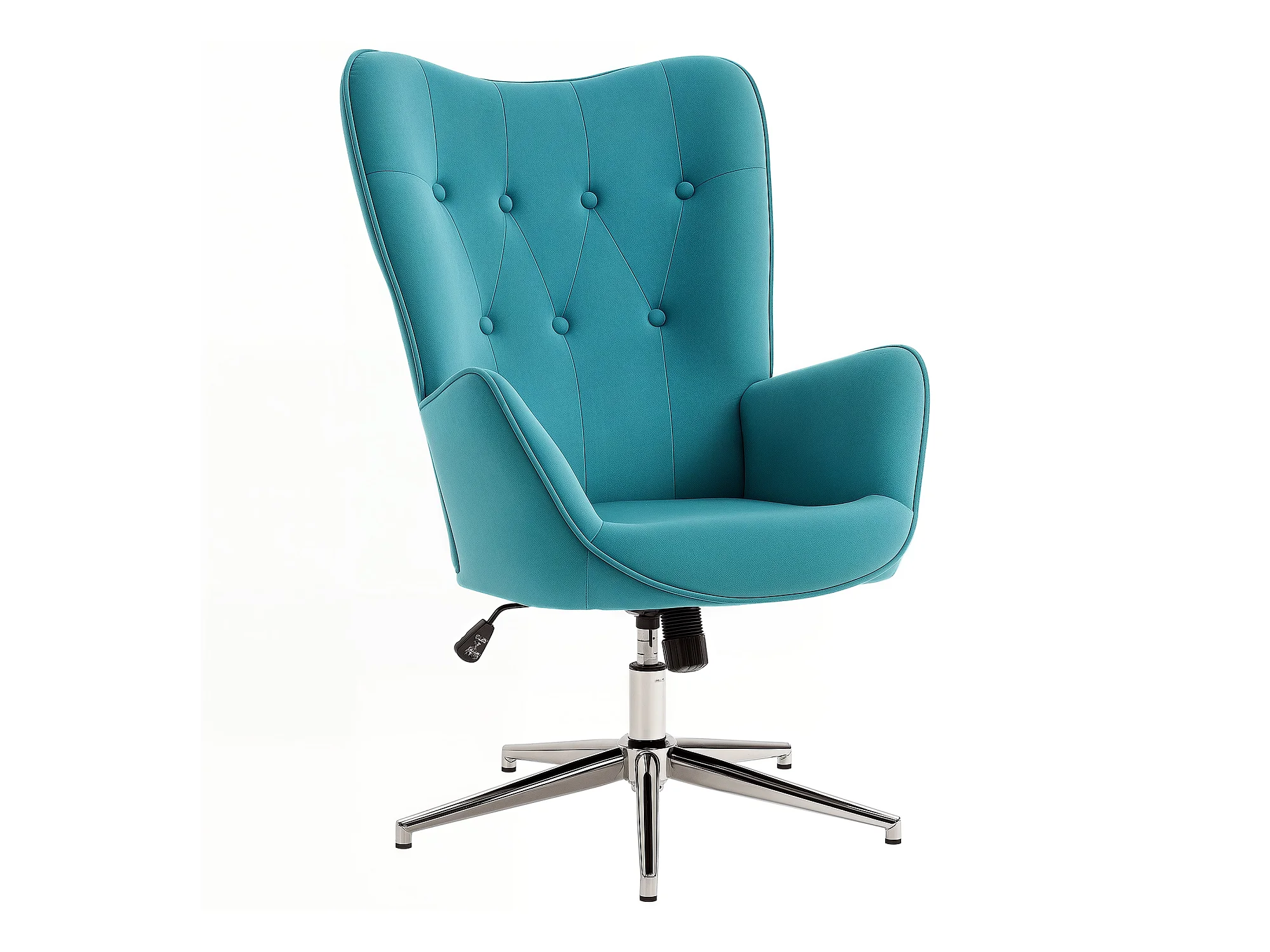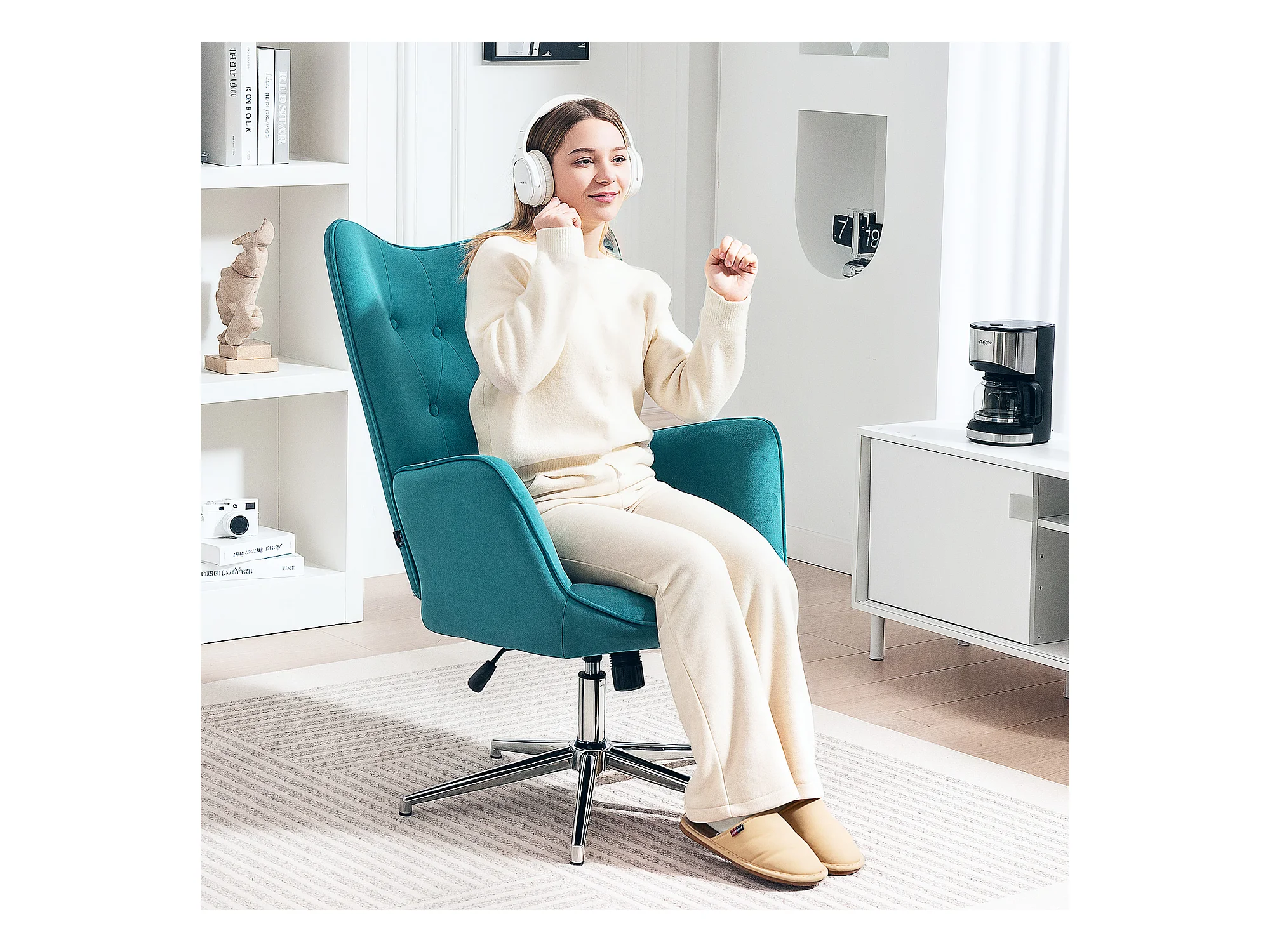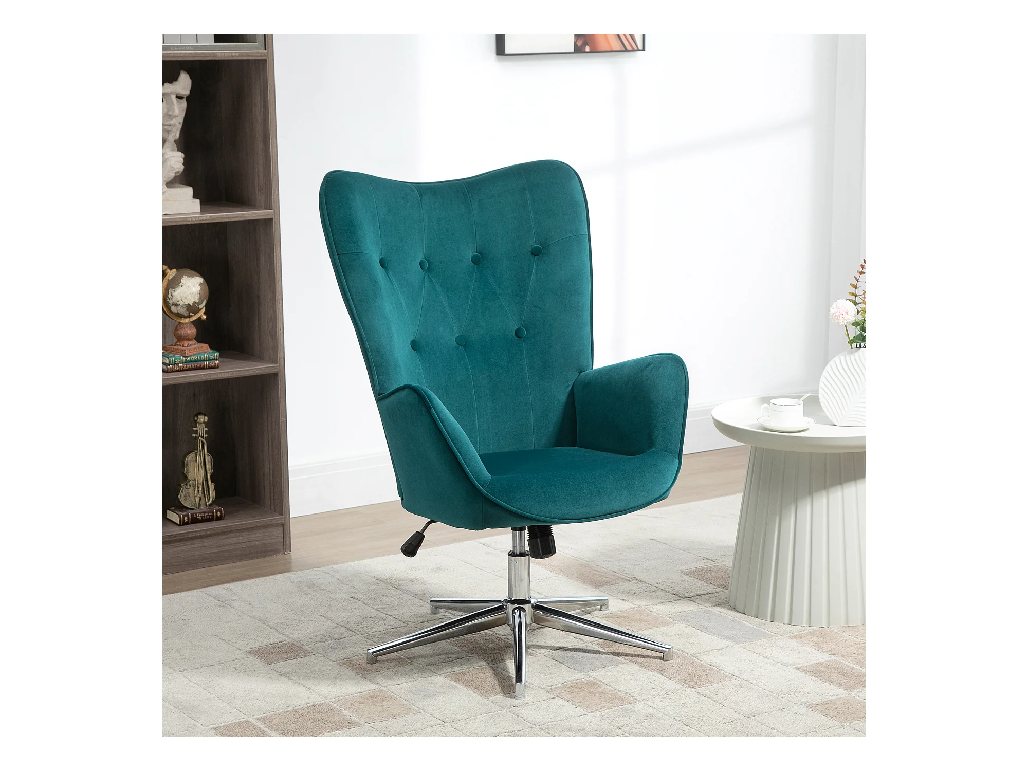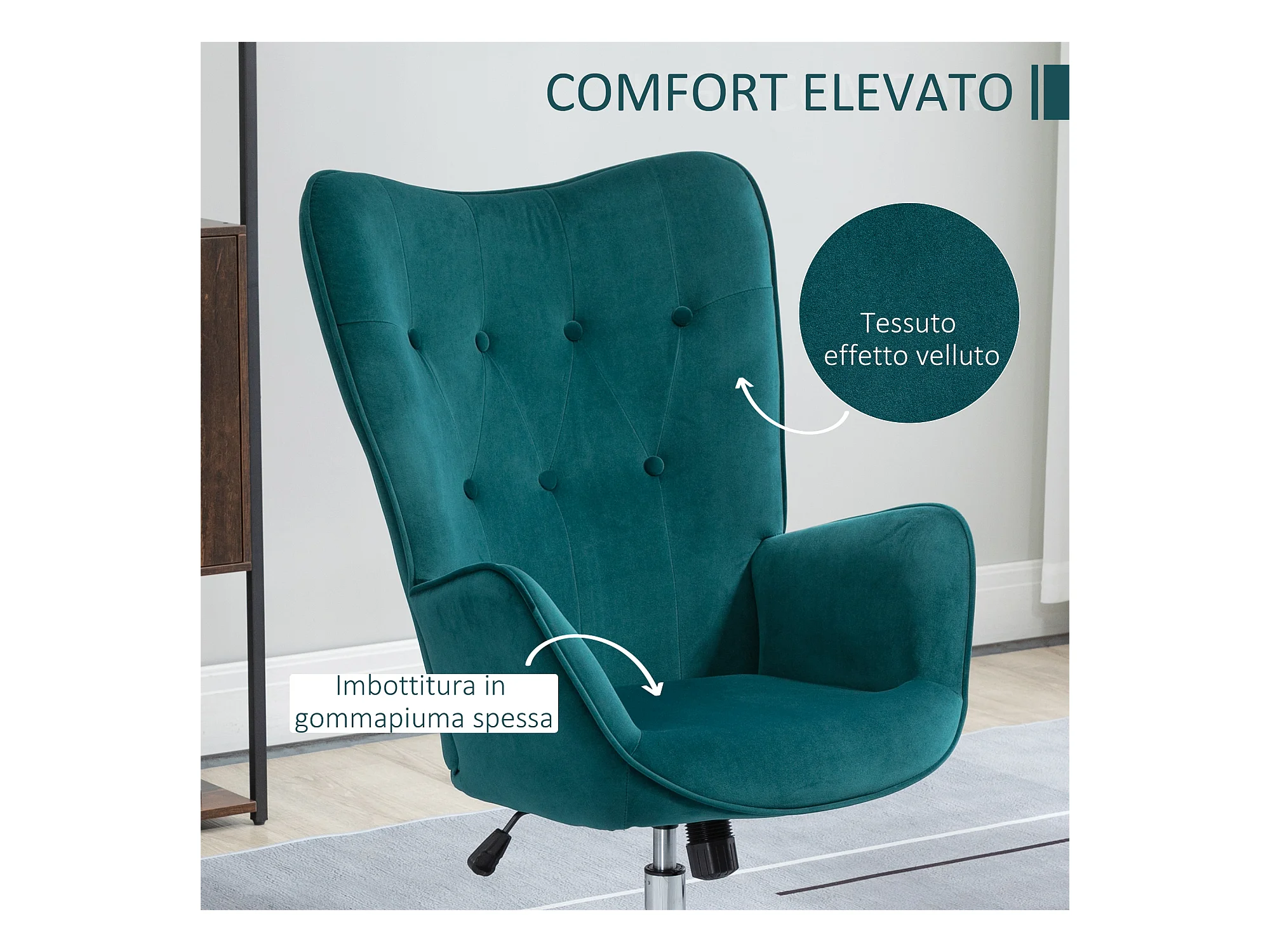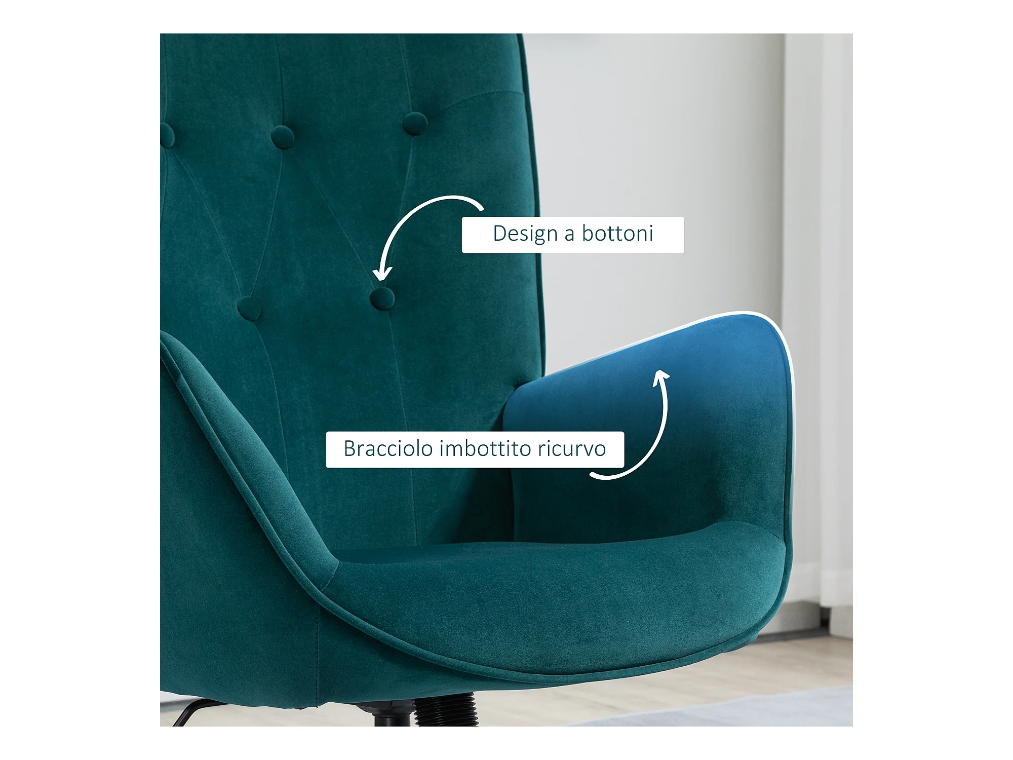 Poltroncina dal design scandinavo in legno e velluto color blu