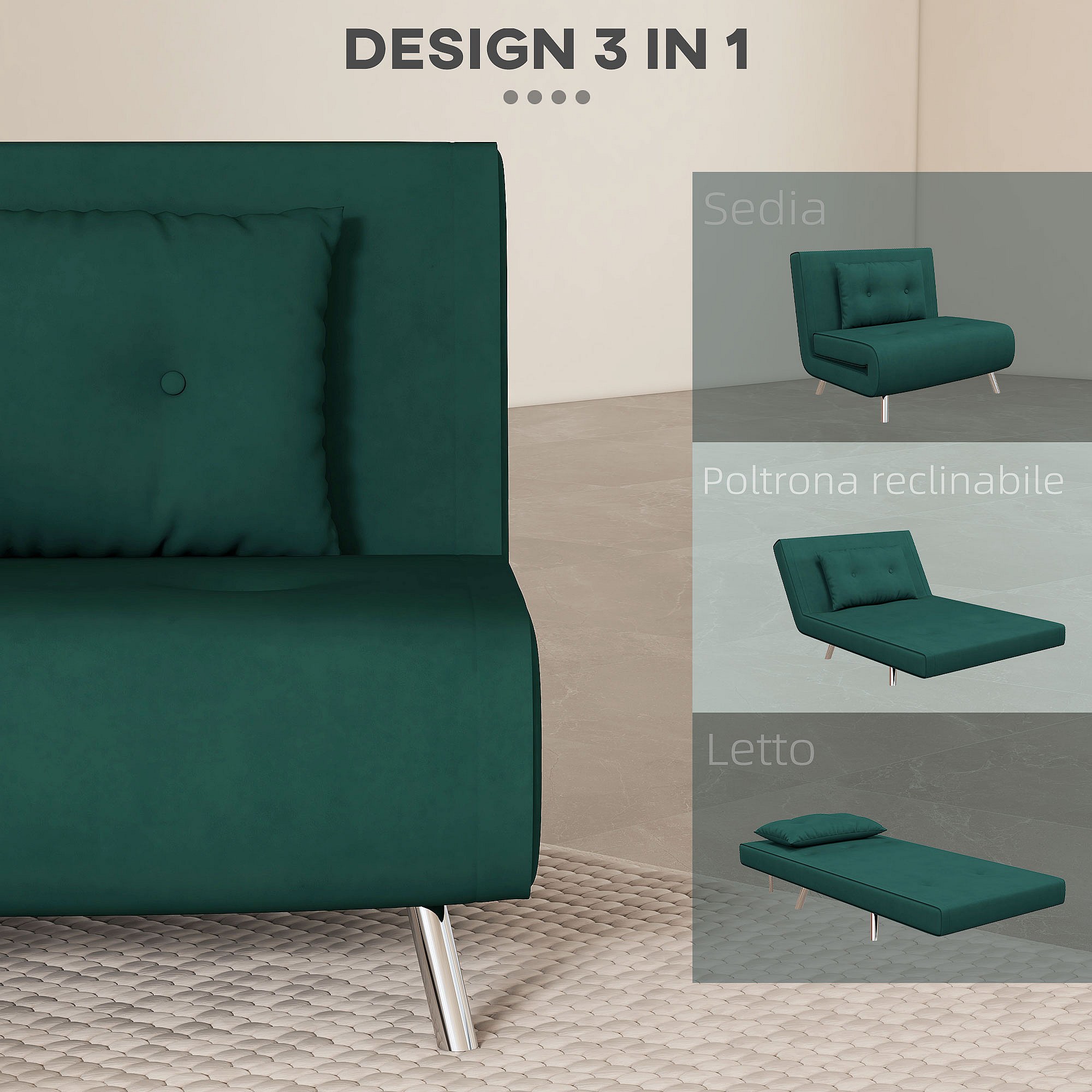 Poltroncina letto singolo 3 in 1 reclinabile a 3 livelli in velluto
