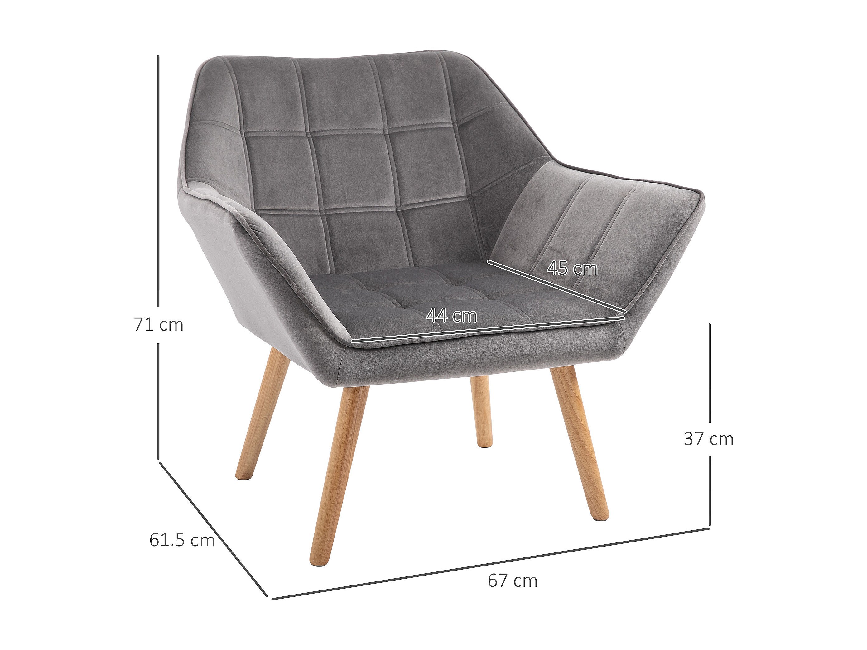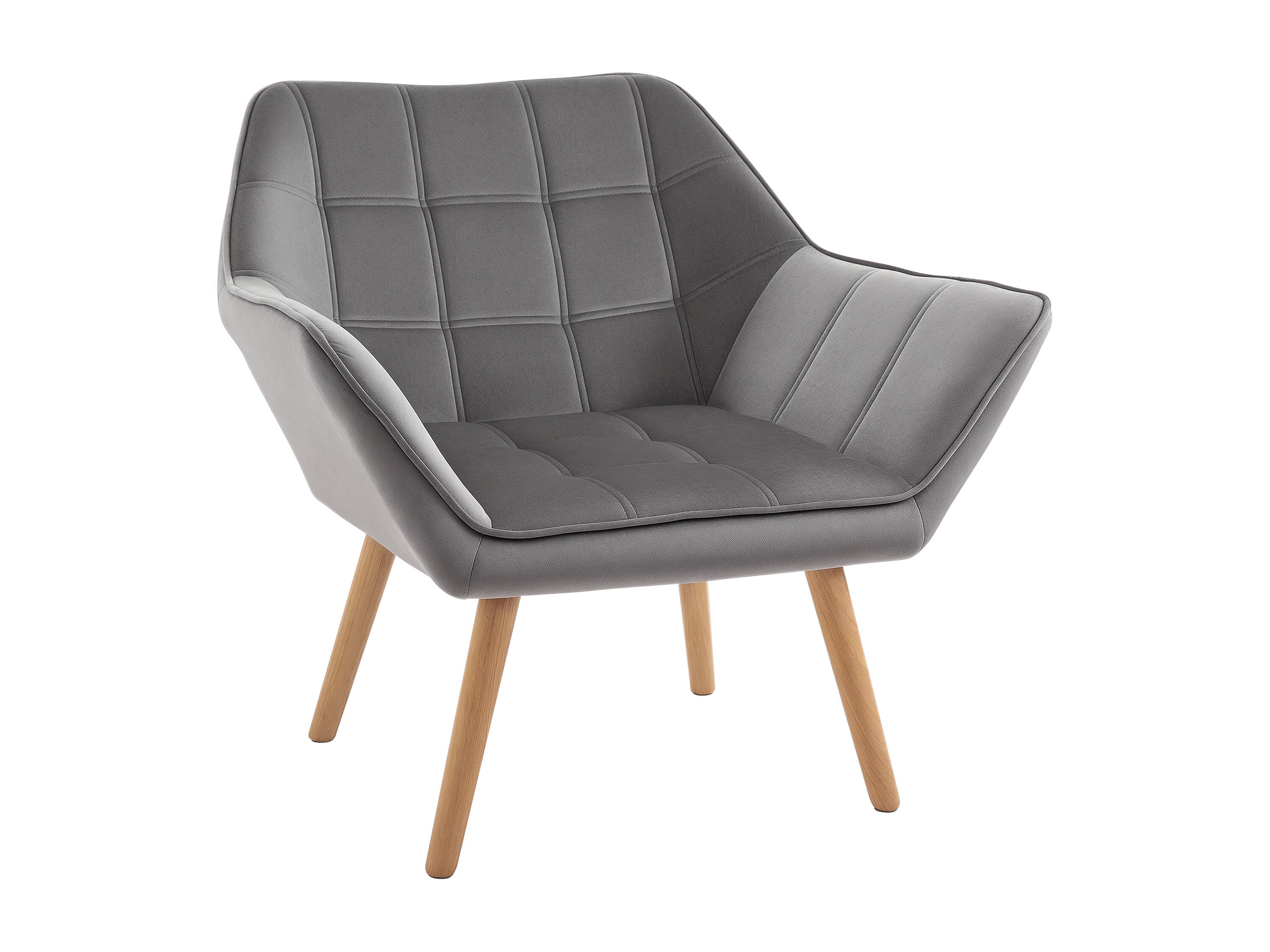 Poltroncina stile nordico in legno ed effetto velluto grigio