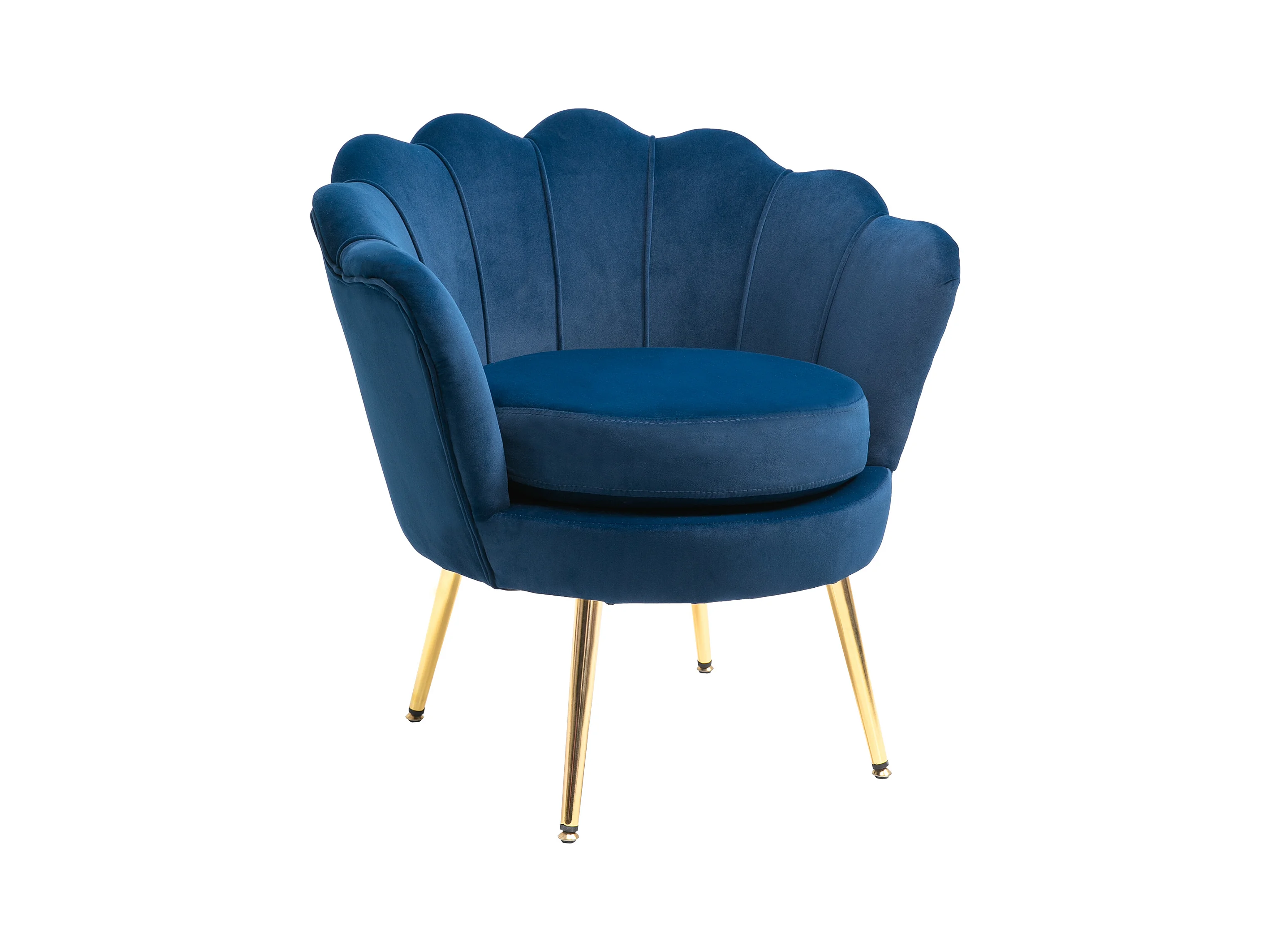 Poltroncina dal design scandinavo in legno e velluto color blu