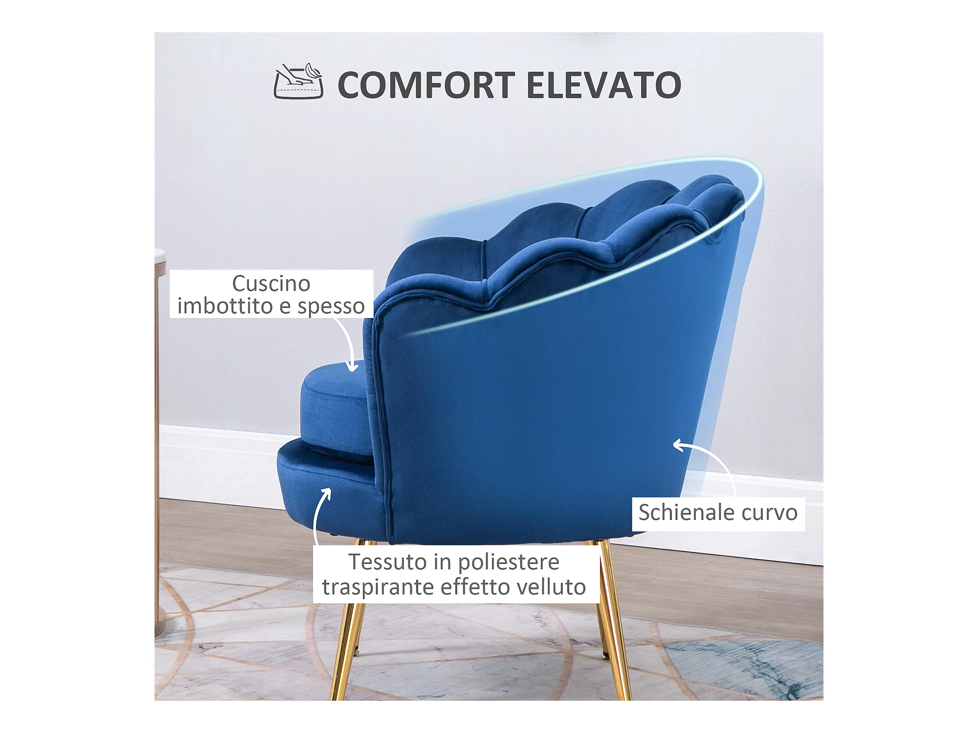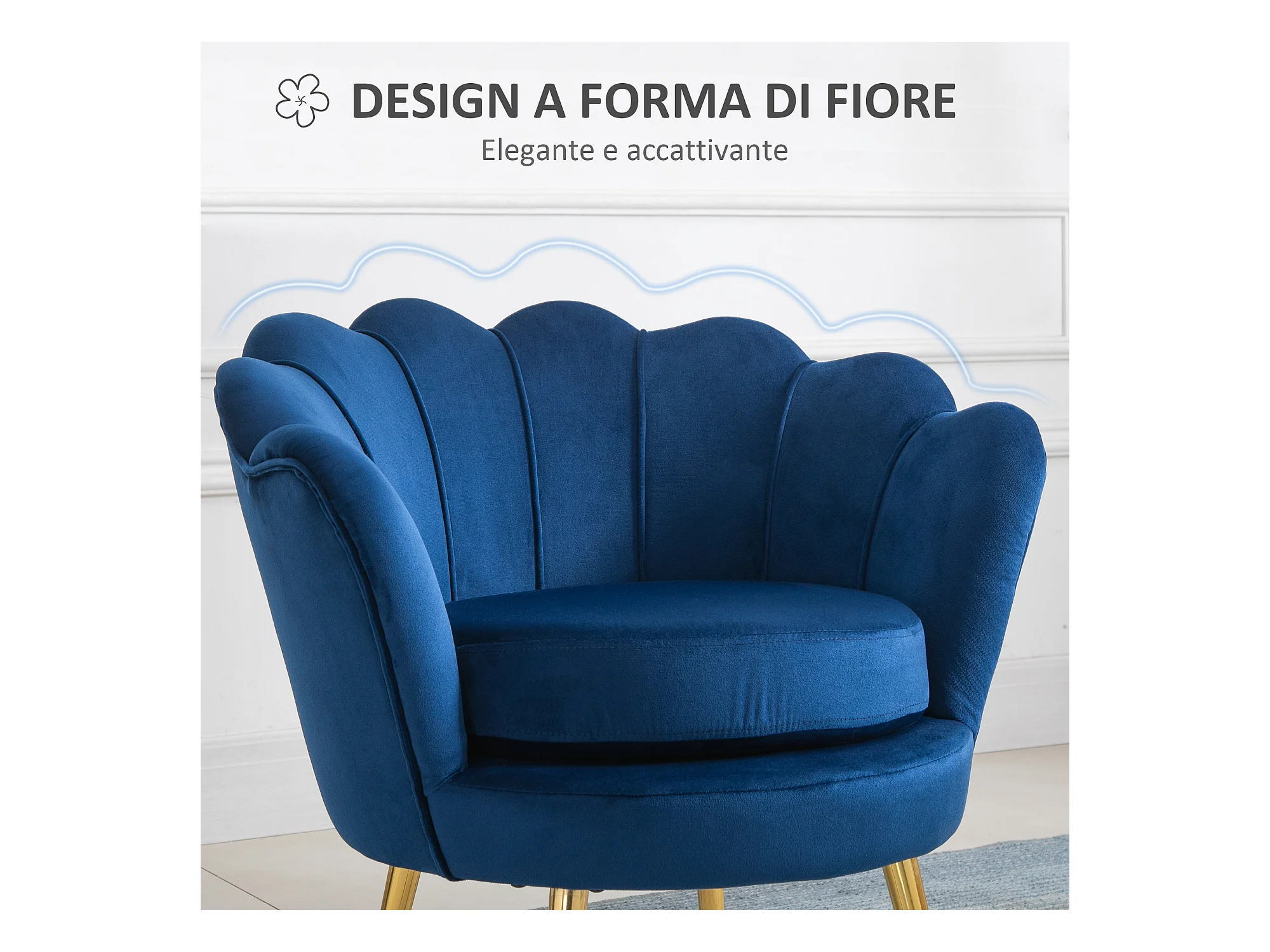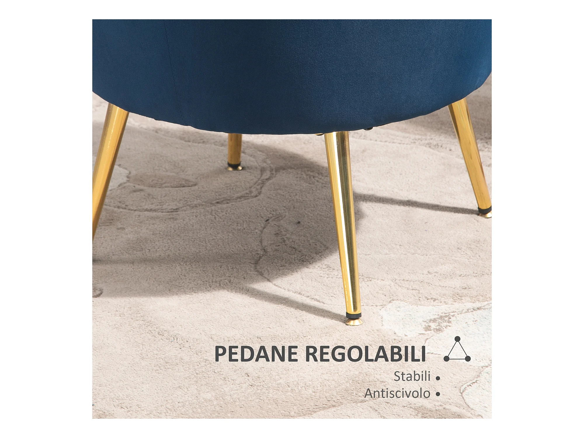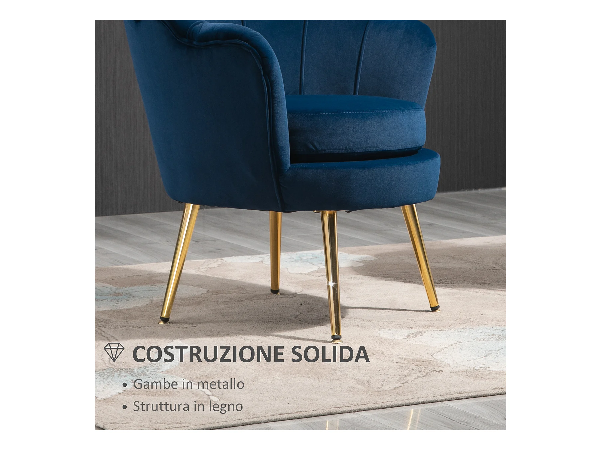 Poltrona per salotto imbottita con cuscino 52.5x69x77 cm blu