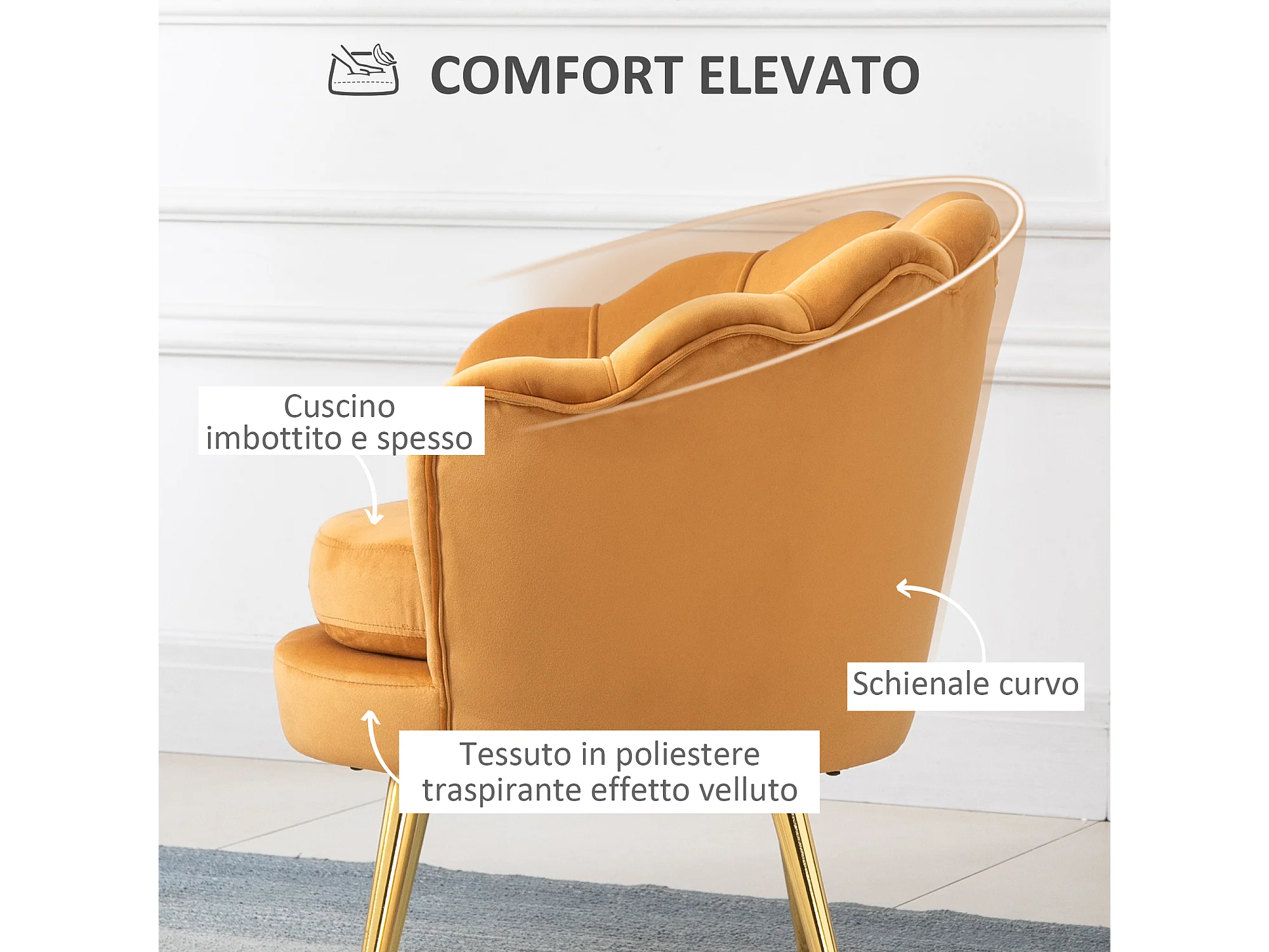 Sedia reclinabile ESLOV Velluto Senape