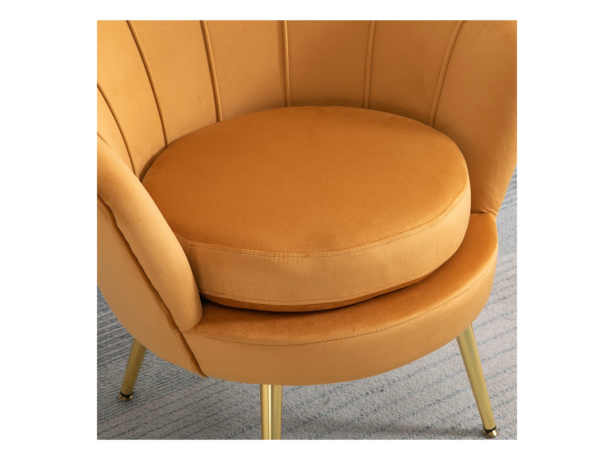 Poltrona girevole a 360° con braccioli rotondi, design moderno, tessuto bouclé, giallo senape, (67x55x74 cm)
