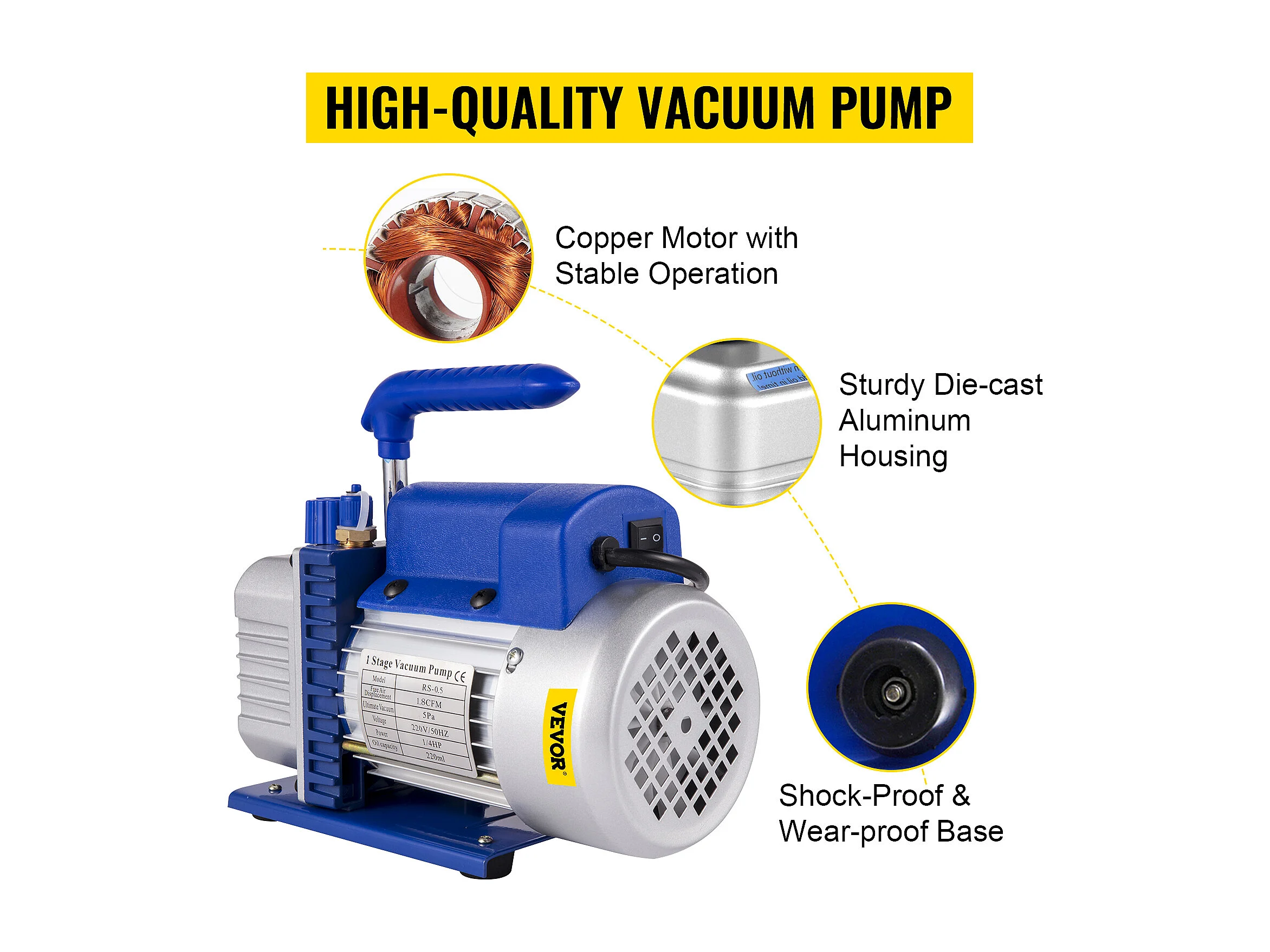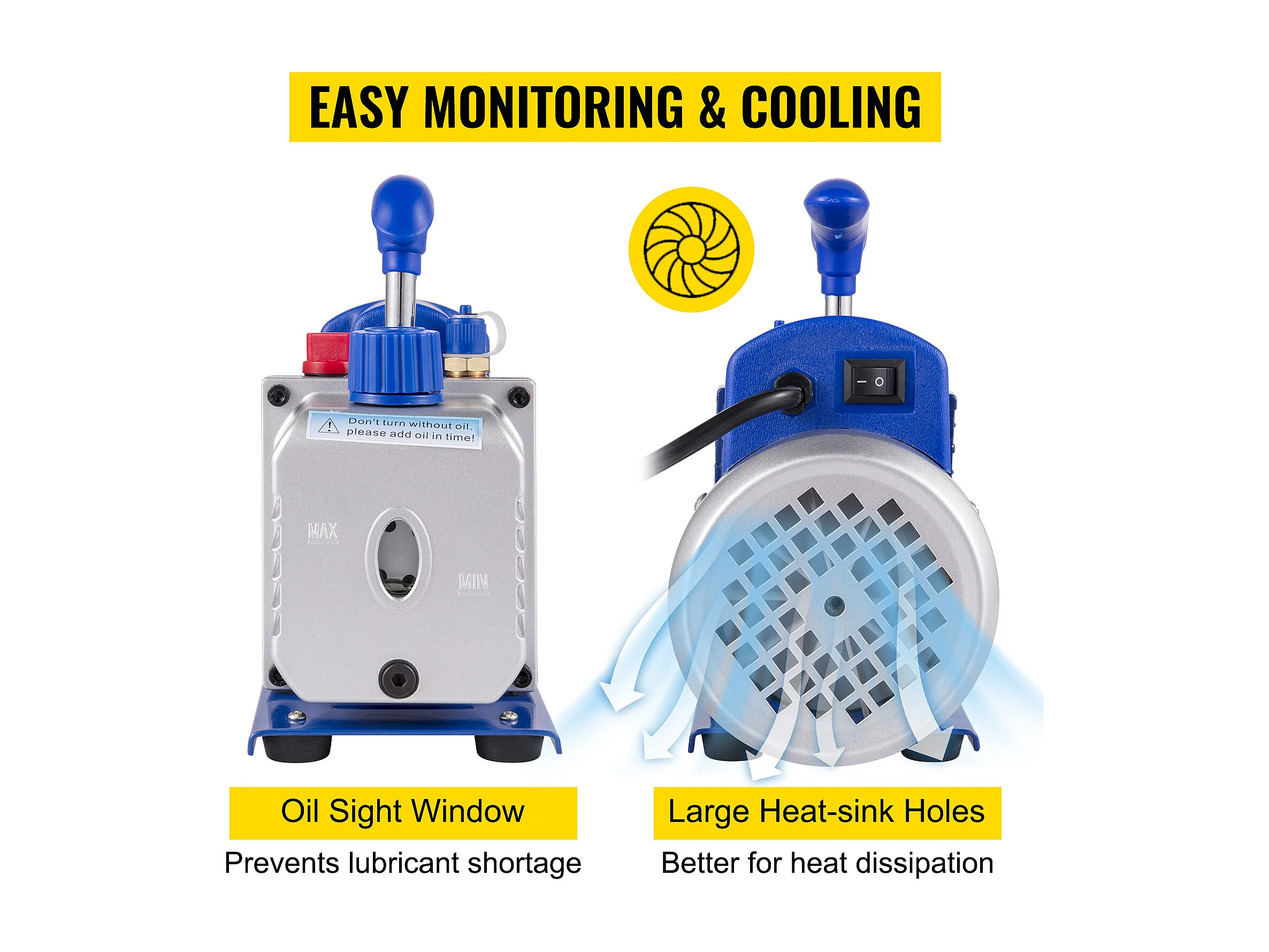 Pompa per Vuoto per Aria Condizionata SucceBuy da 1,8 CFM 1/4HP, Pompa per Vuoto per Refrigerazione HVAC Monostadio, 1440 Giri/Min, Antiriflusso Dell'olio
