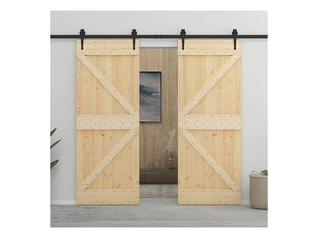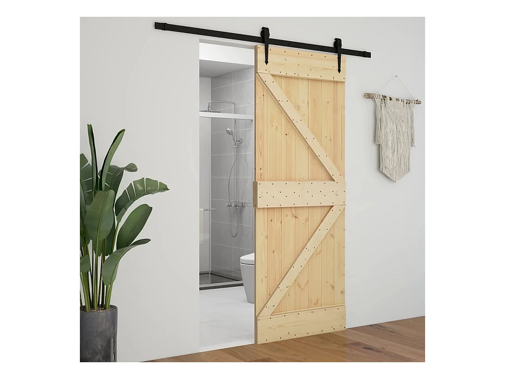 Kit porta scorrevole e ferramenta 90x210 cm in pino massello