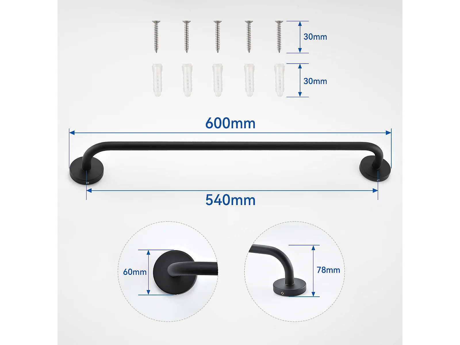 Porta asciugamani bagno Auralum MAX 60 cm,autoadesivo/perforato,2 pezzi,inossidabile 304, nero+porta asciugamani a due bracci, 42 cm,spazzolato