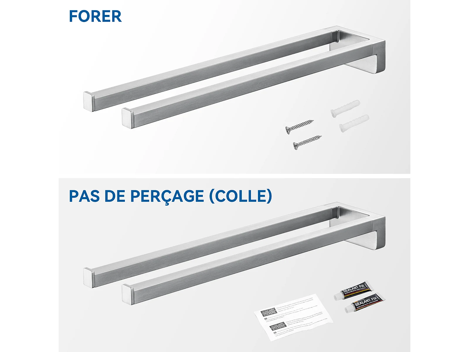 2PCS Auralum MAX Portasciugamani Bagno di 40cm, Spazzolato+60cm Portasciugamani Bagno Autoadesivo o Foratura in Acciaio Inox 304