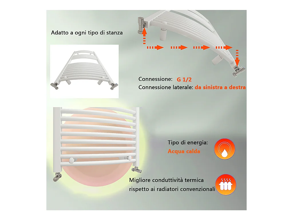 Termoarredo bagno scaldasalviette 1600x550mm interasse 50 bianco