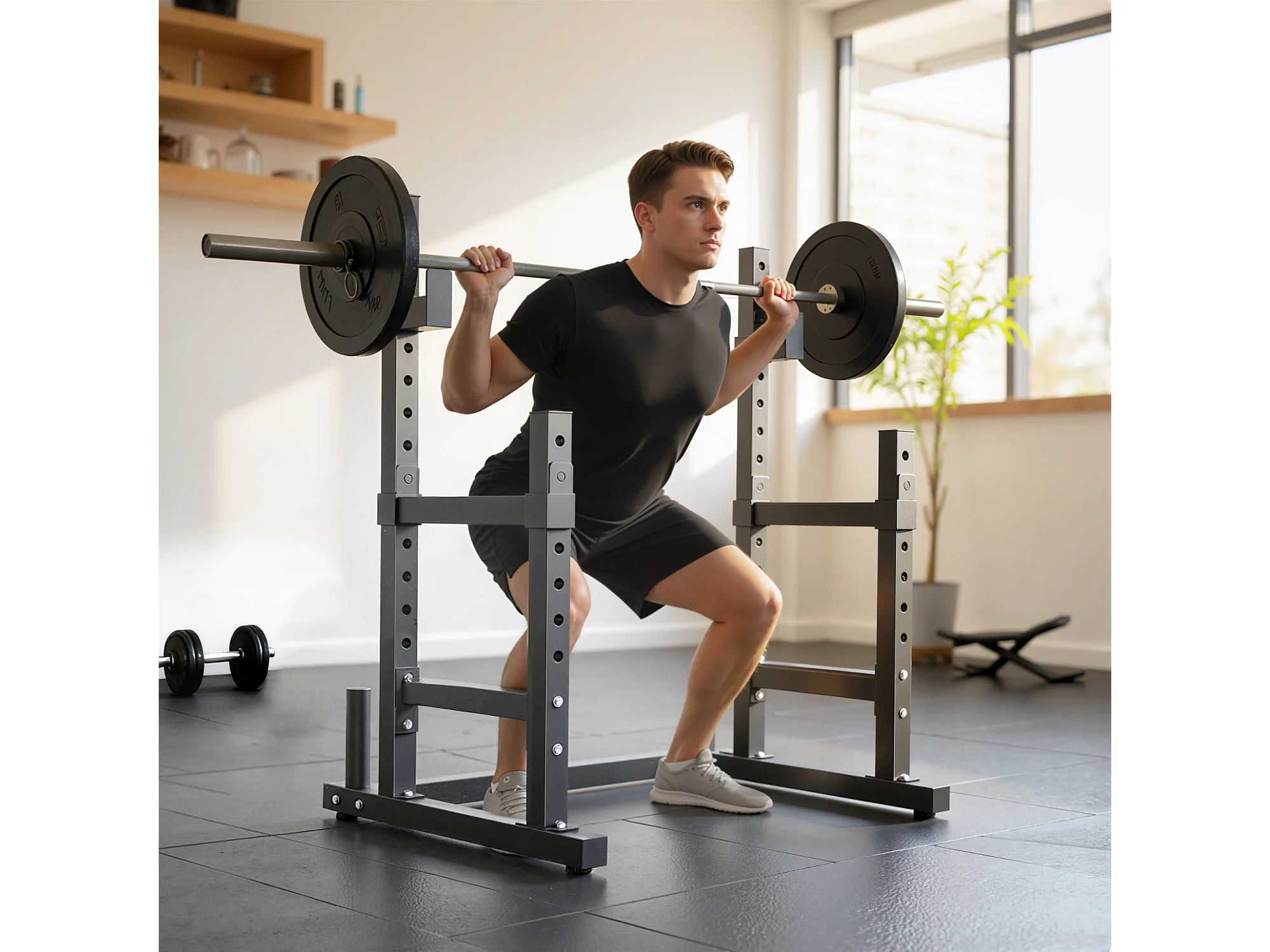 Porta bilanciere regolabile 2 livelli con porta dischi in acciaio nero